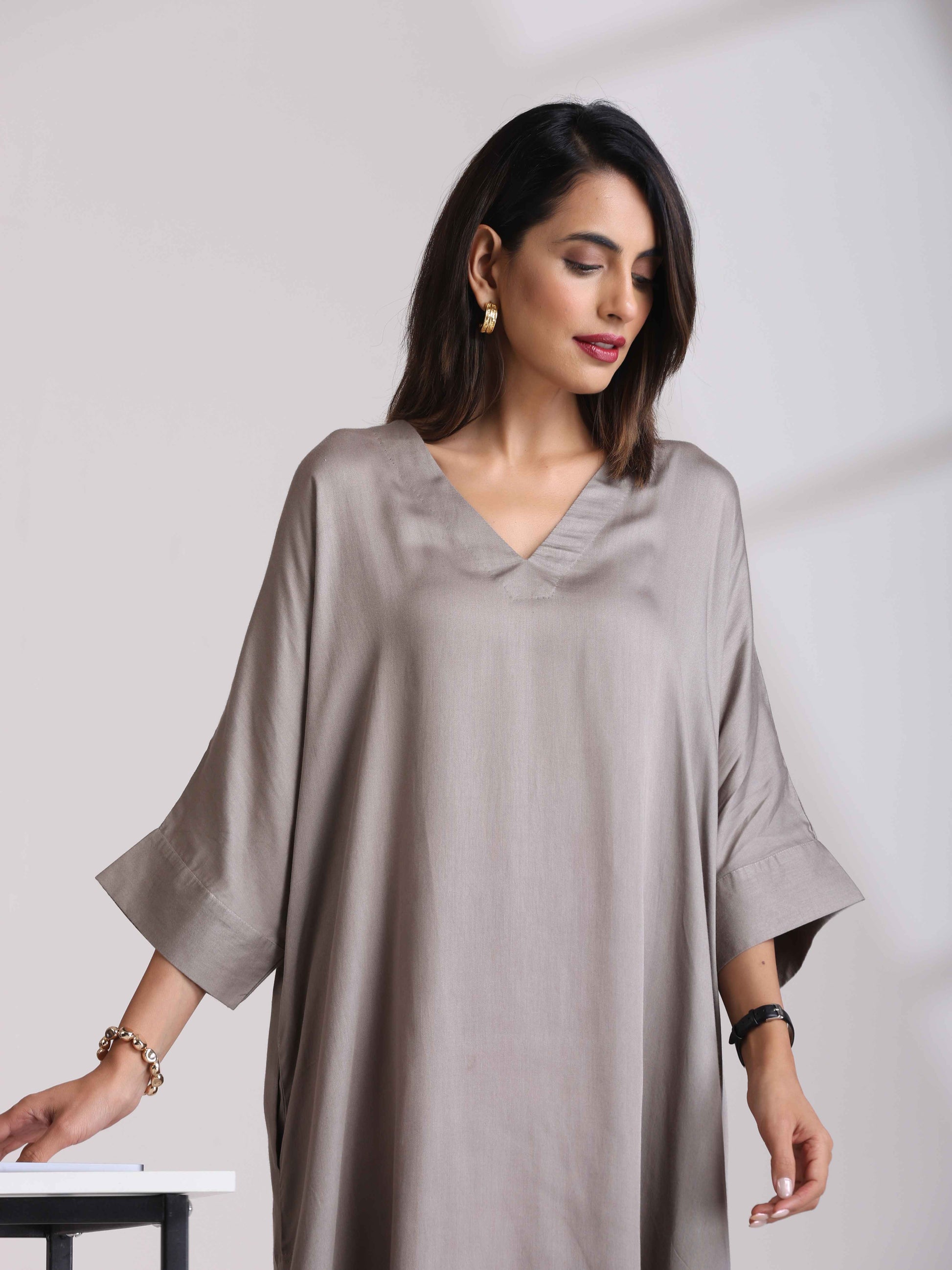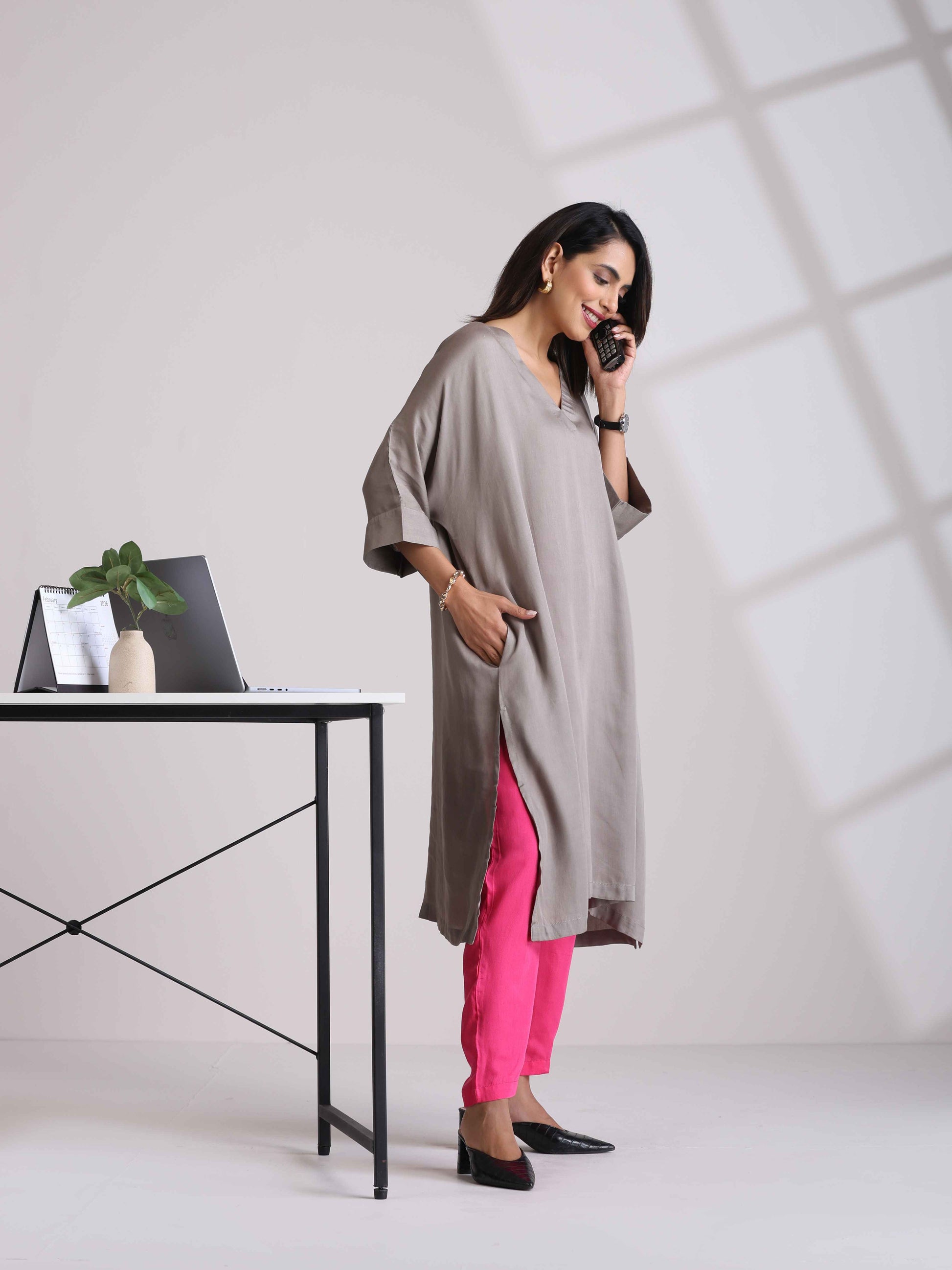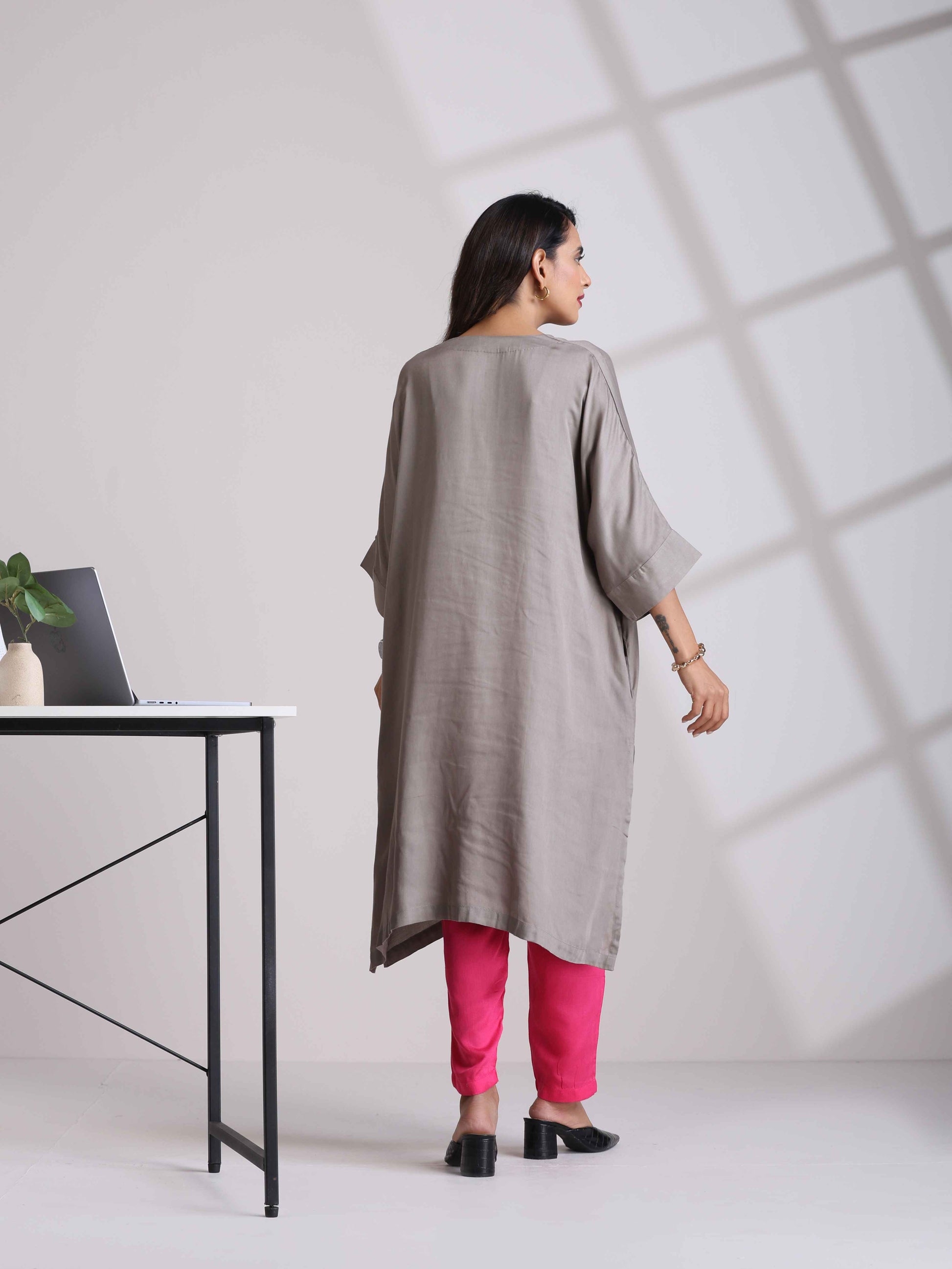 - Elevate your style with this grey modal kurta featuring kimono sleeves.