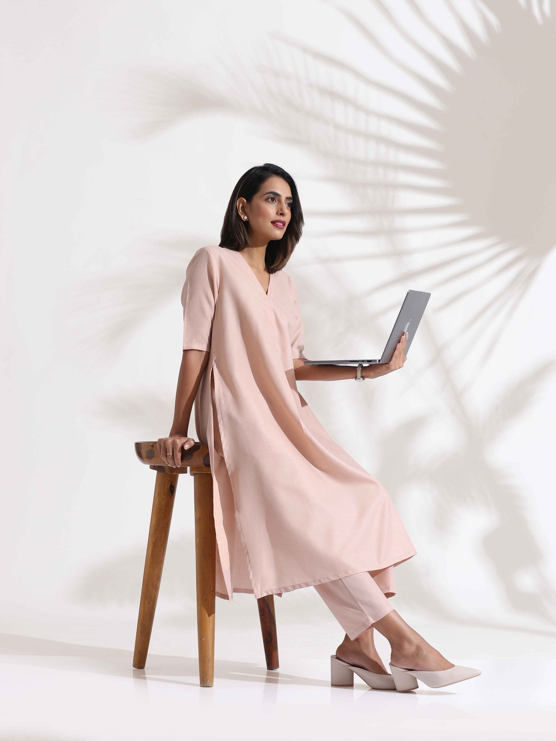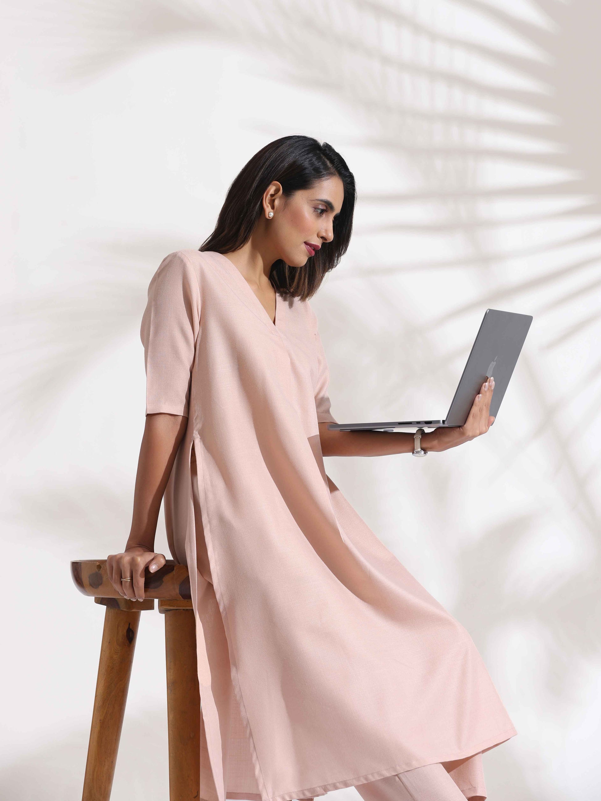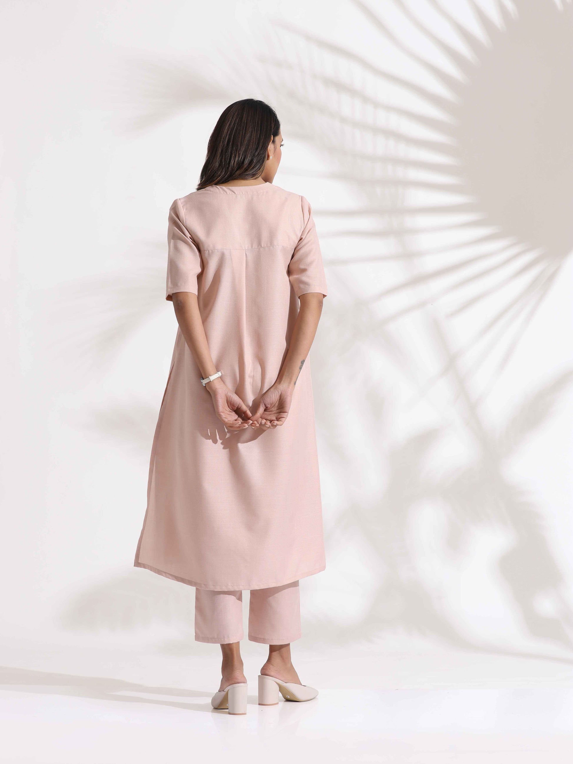 trueBrowns Light Pink Slub Kurta Set
