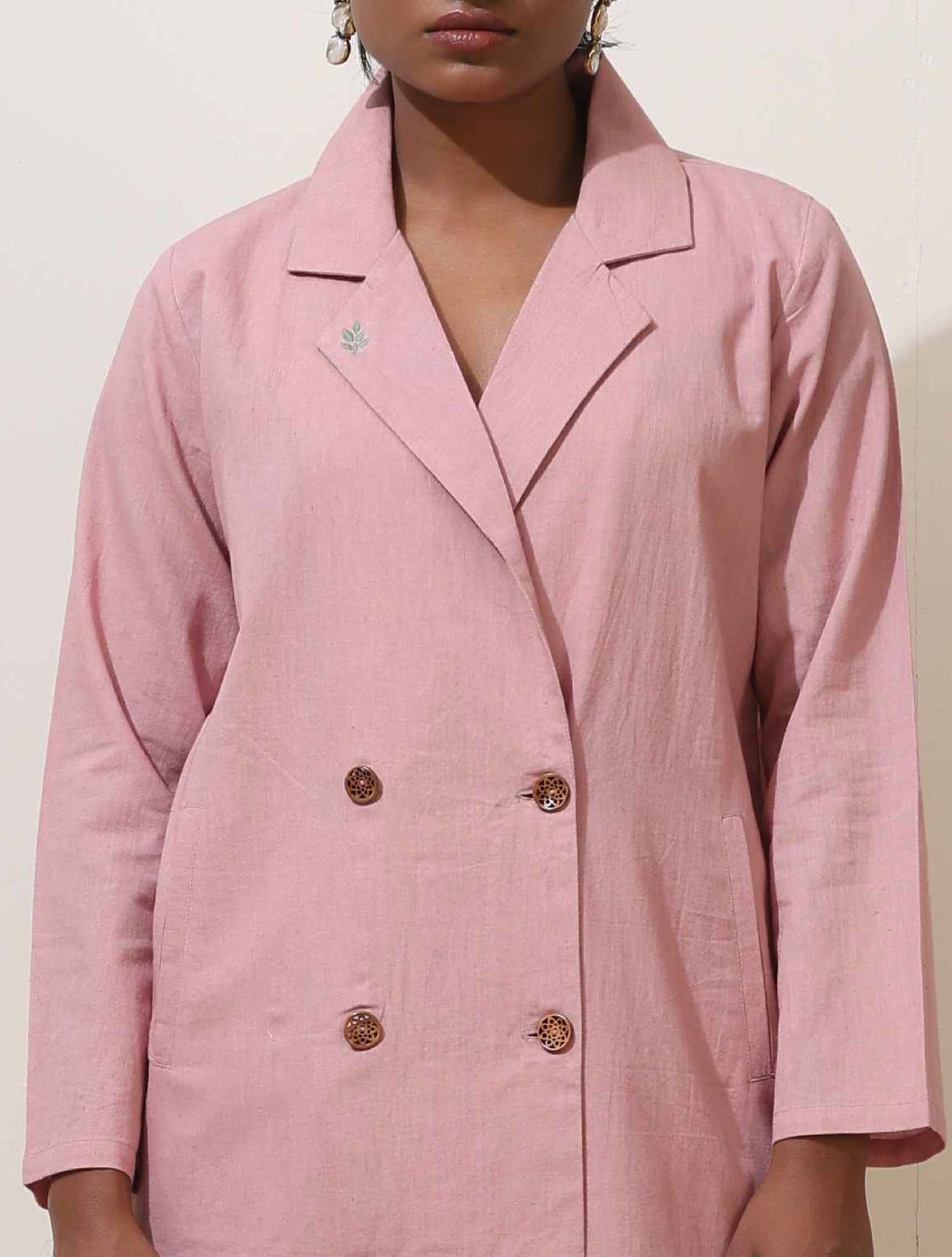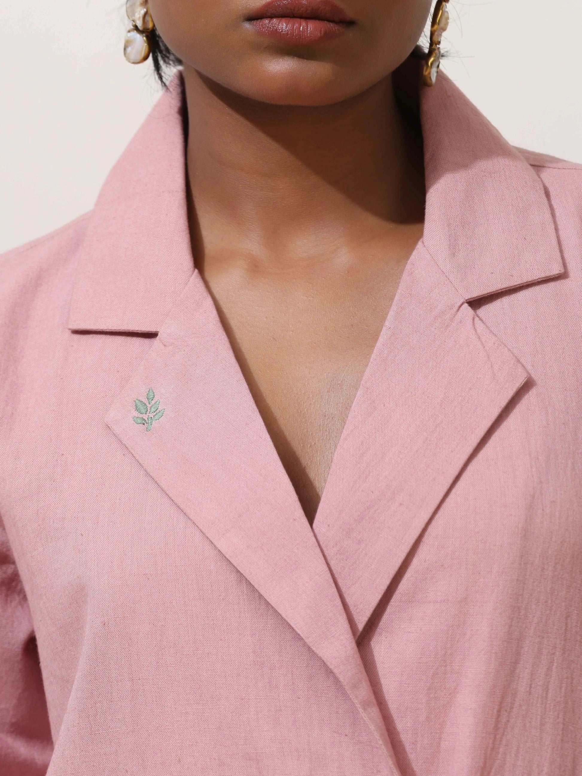 - Blazer is highlighted by a delicate leaf embroidery on the collar.