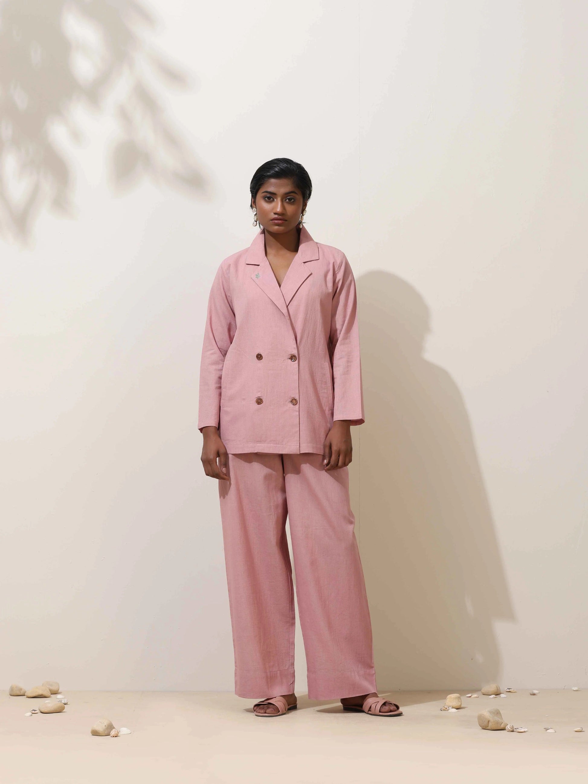 - Elevate your style with this lilac double breasted jacket complemented with lilac flared pants. It's an ideal blend of elegance and comfort, perfect for both casual and semi-formal occasions.