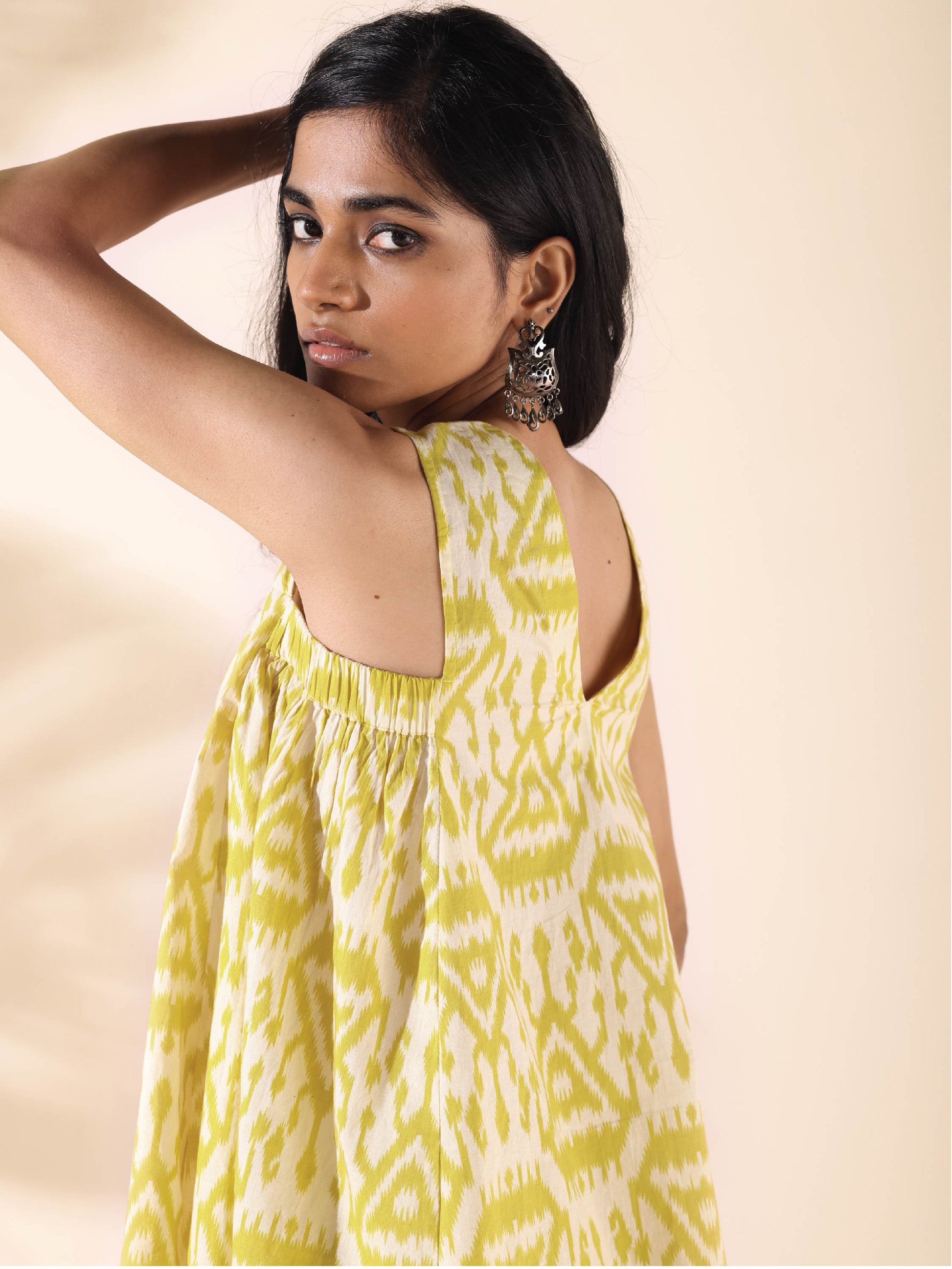 trueBrowns Lime Cotton Ikat Sleeveless Co-ord Set