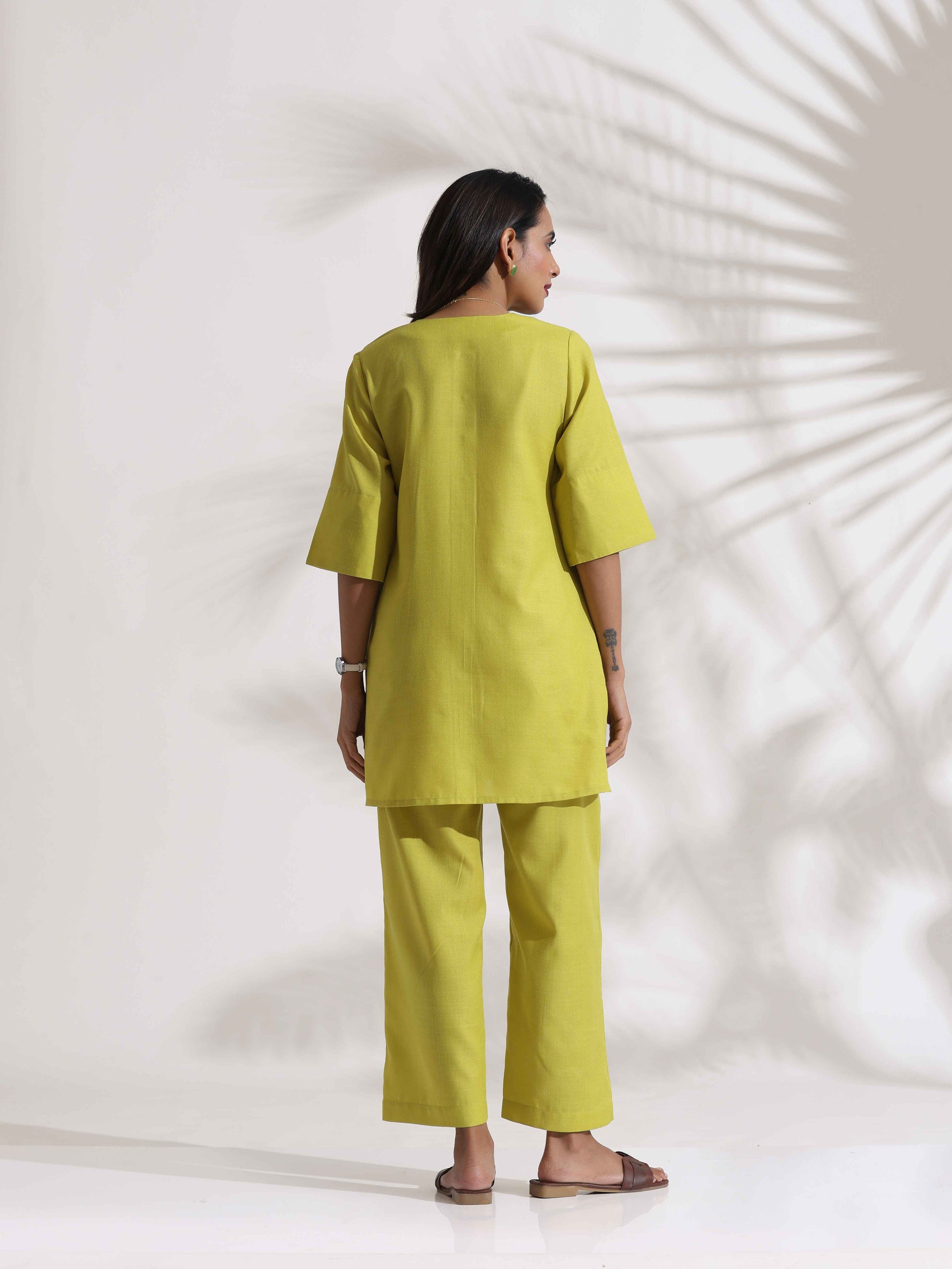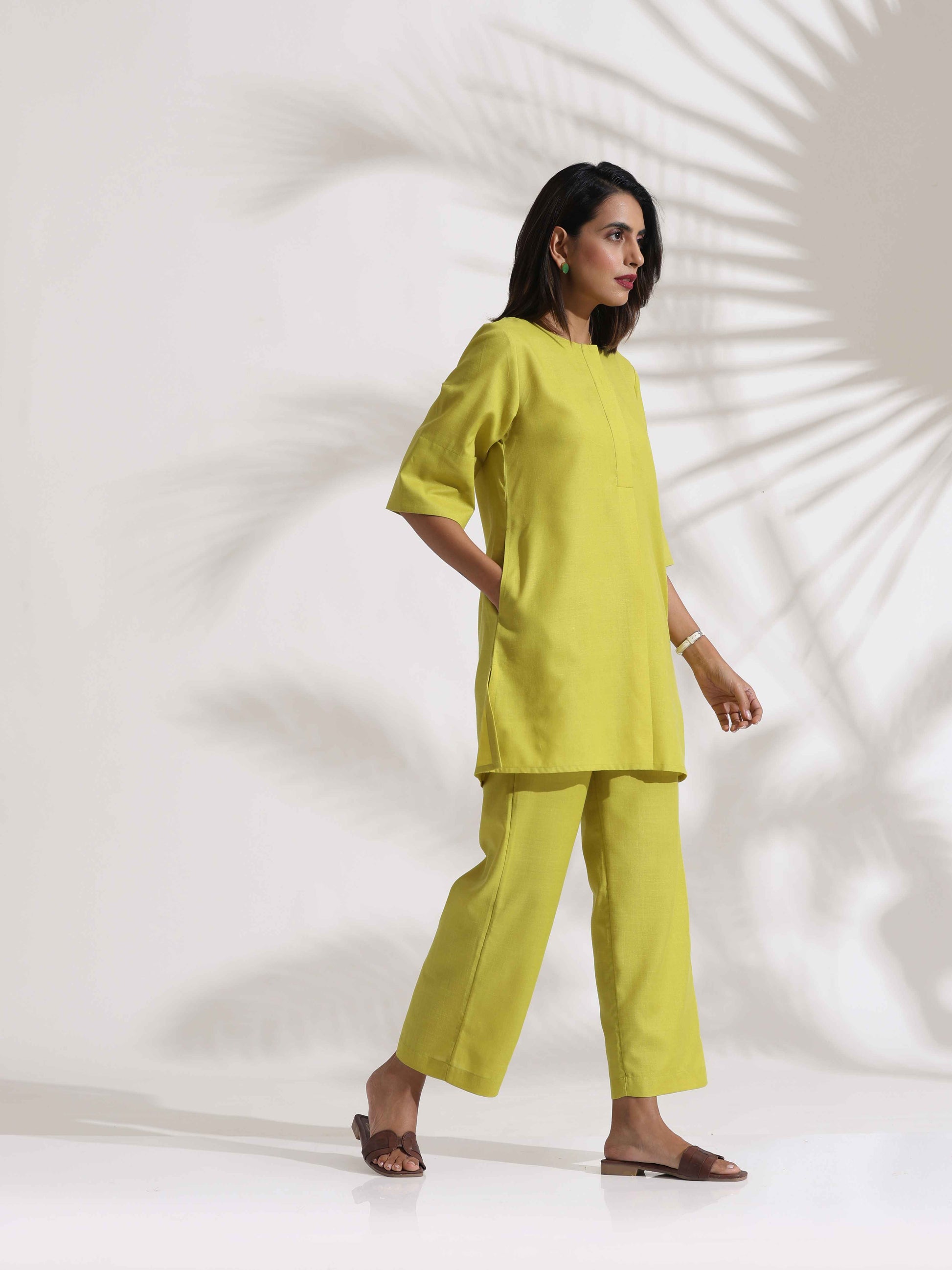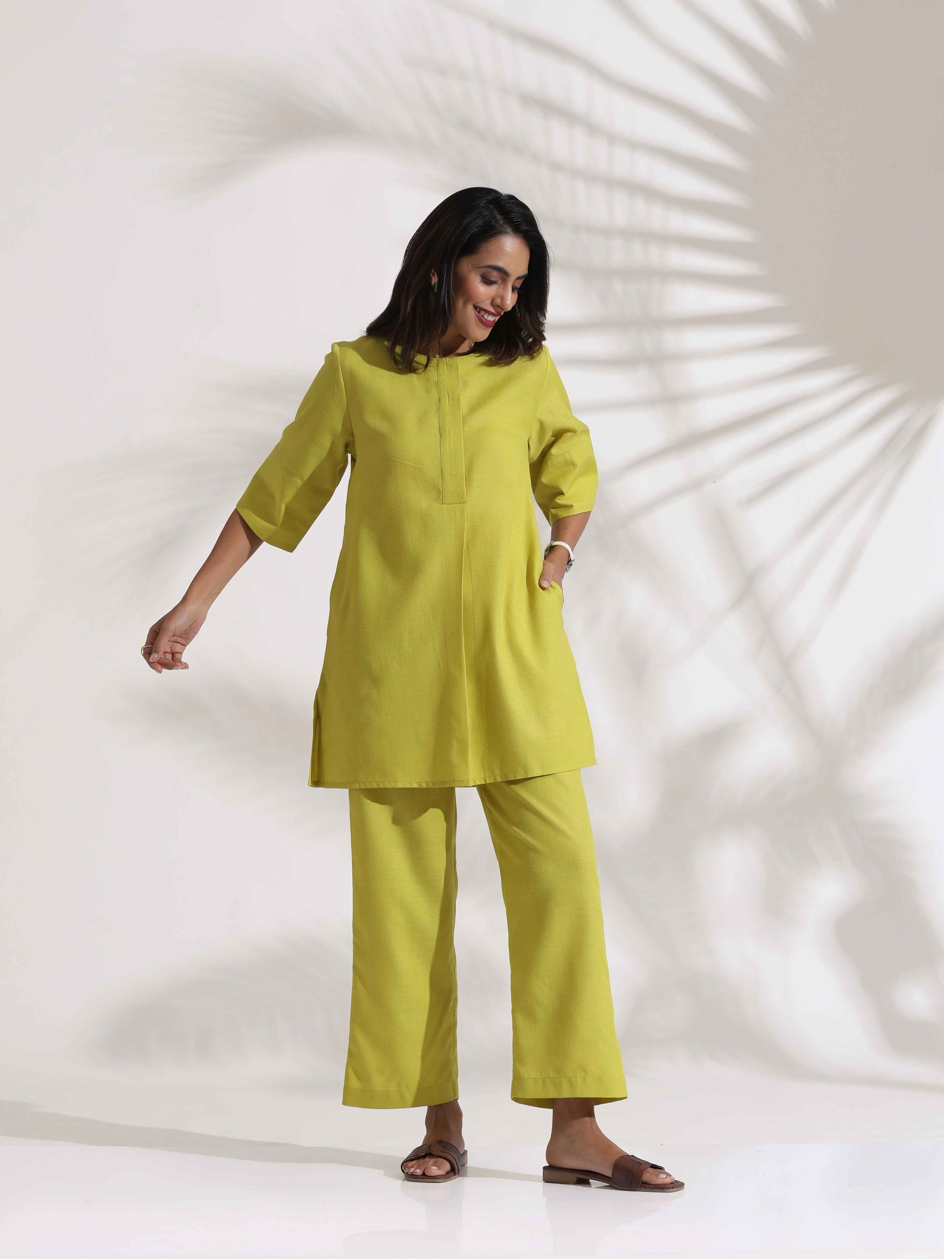 - Elevate your style with this lime regular fit top with lime pants, it's an ideal blend of elegance and comfort.