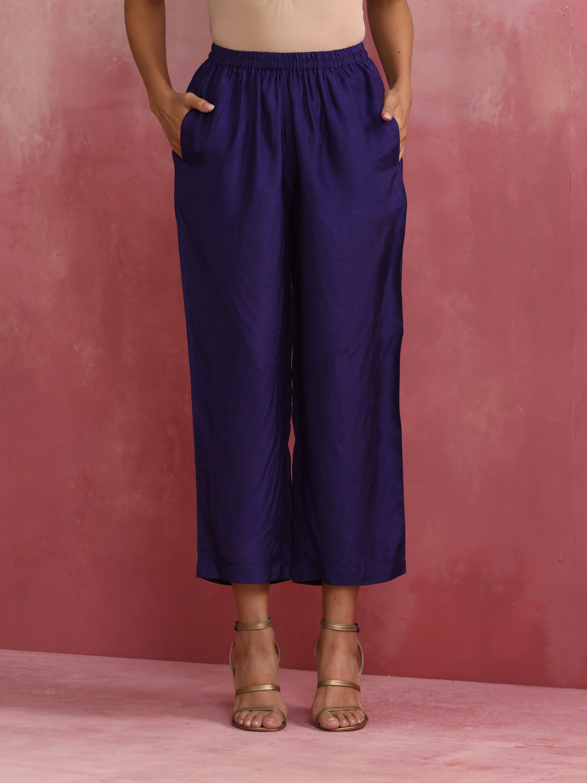 - Paired perfectly with purple viscose silk pants.