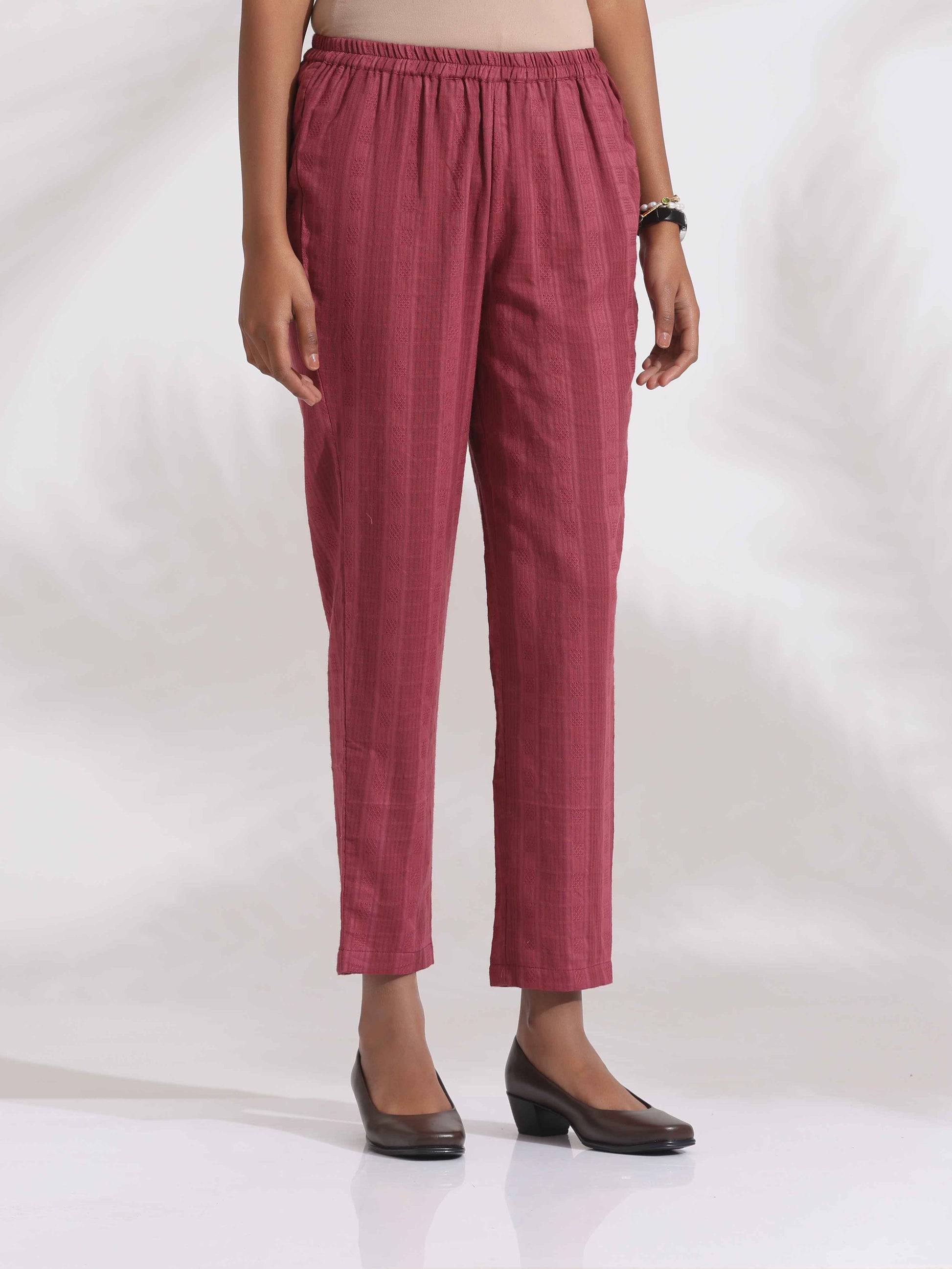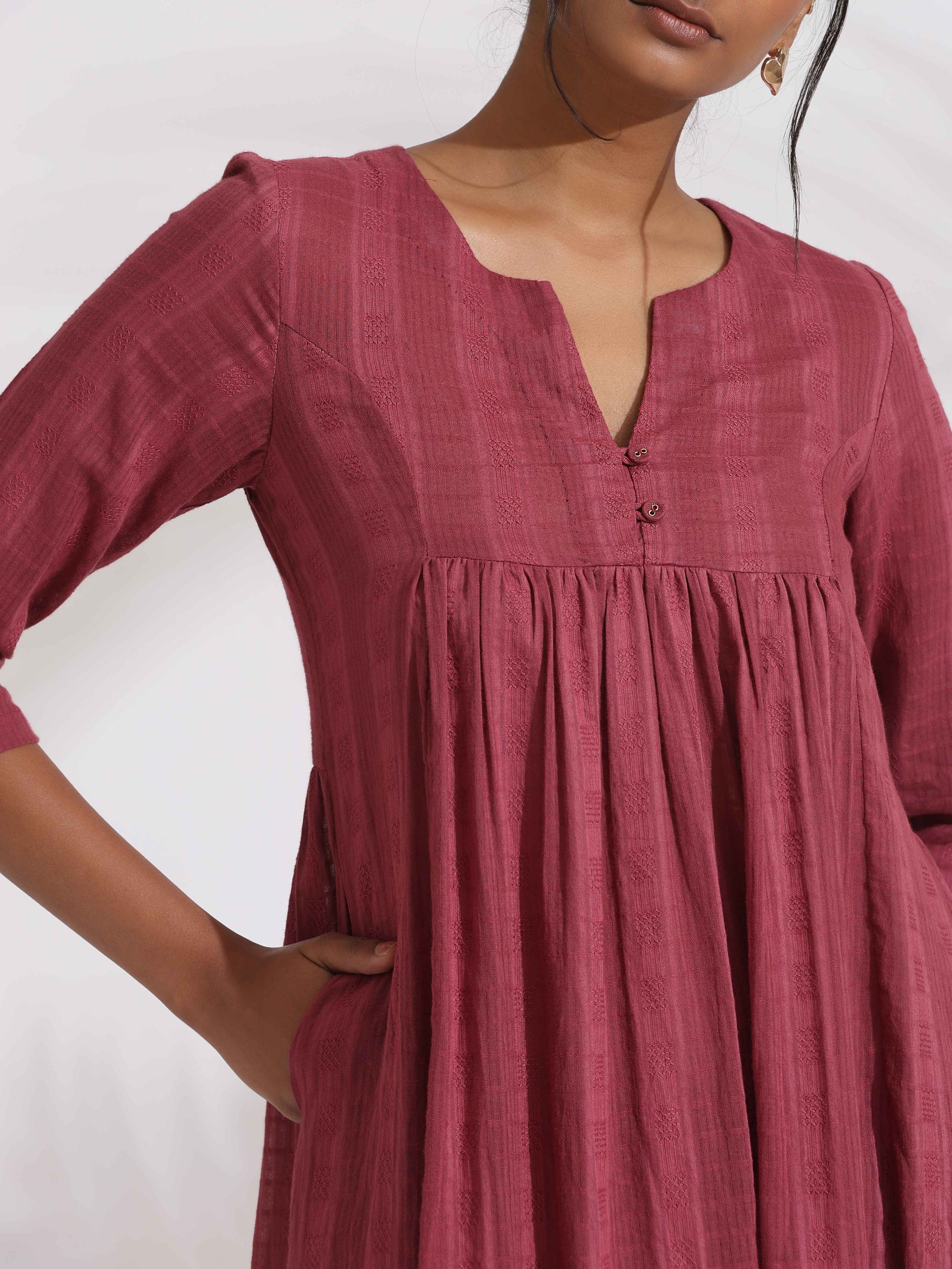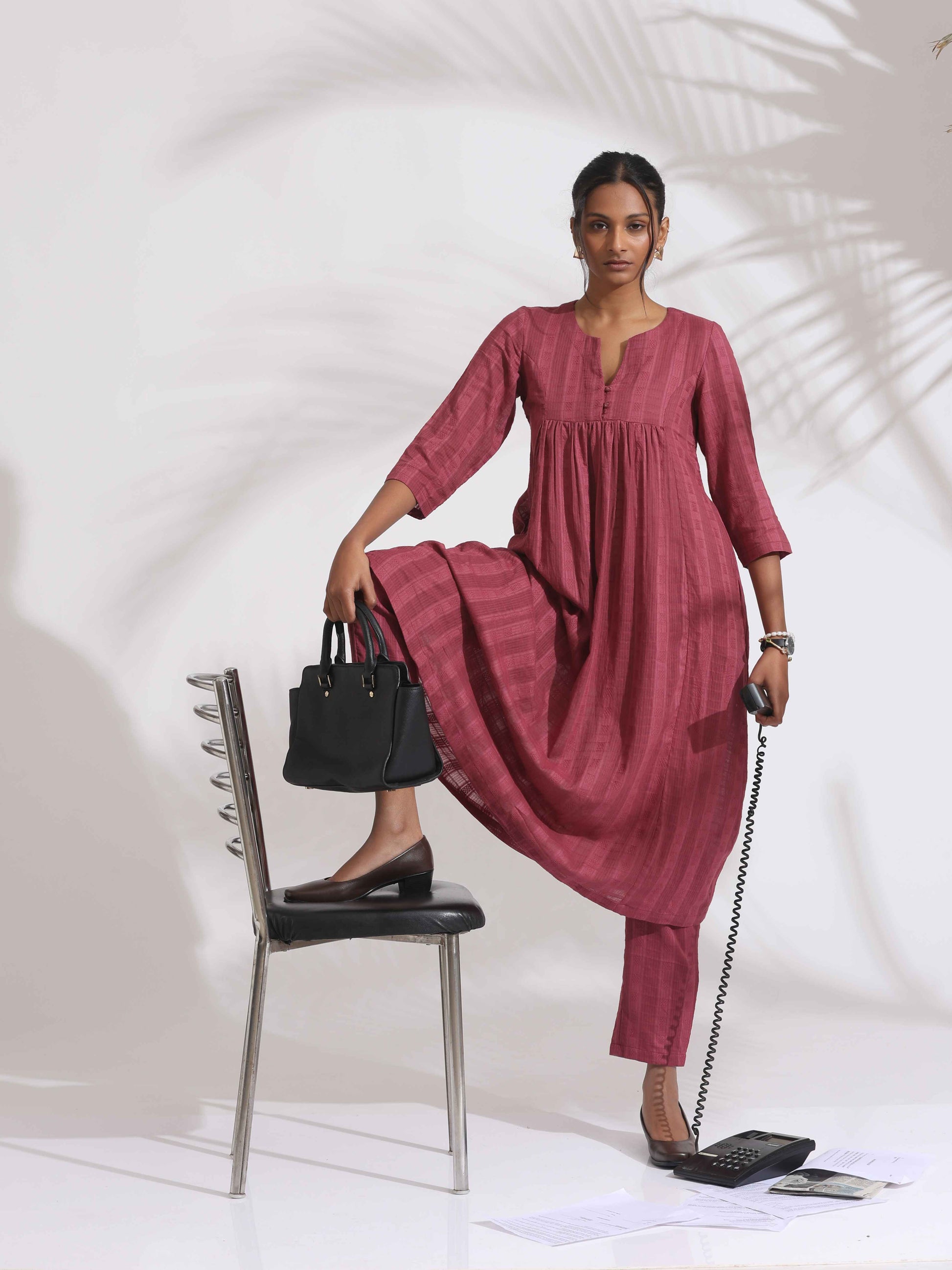 - Elevate your style with this maroon cotton flared kurta set, featuring light gathers along with paneling at the front and back for added flare.