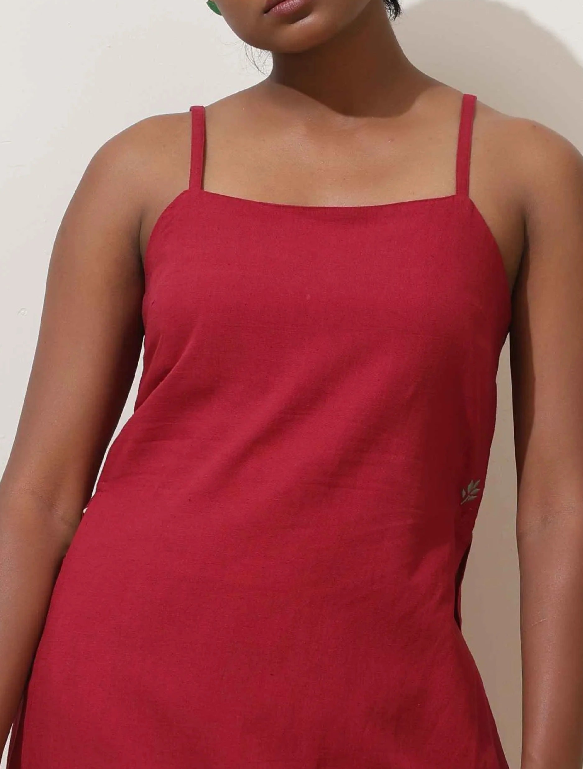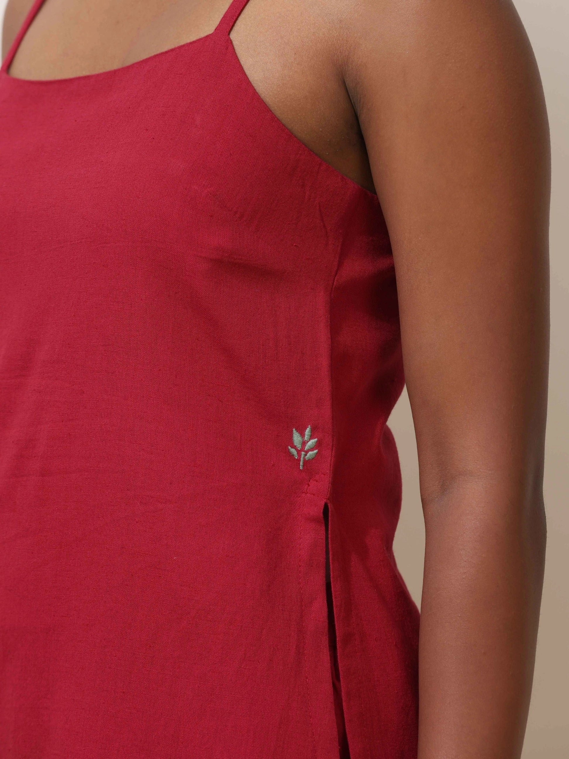 trueBrowns Maroon Cotton Linen Kurta Co-Ord Set