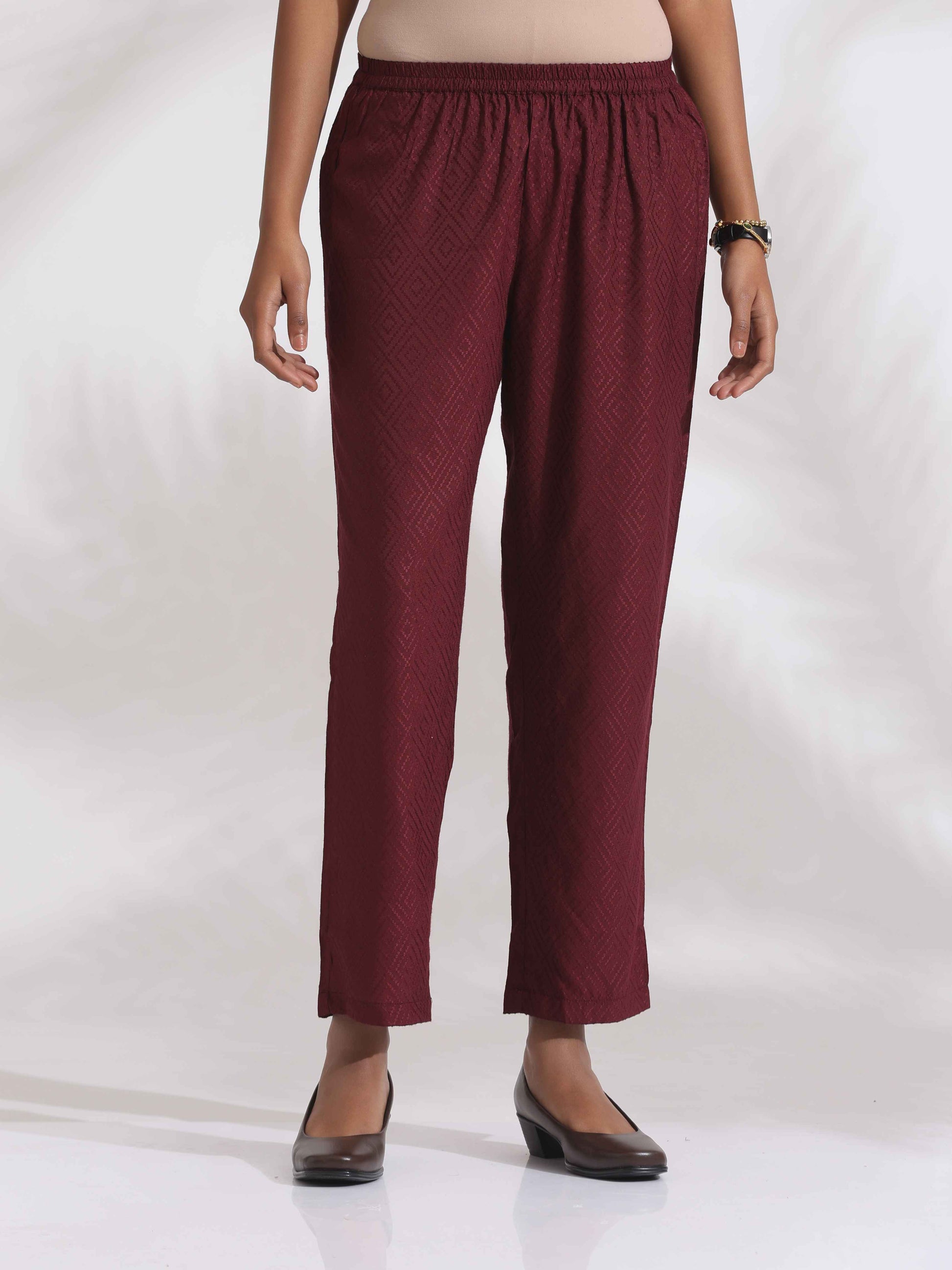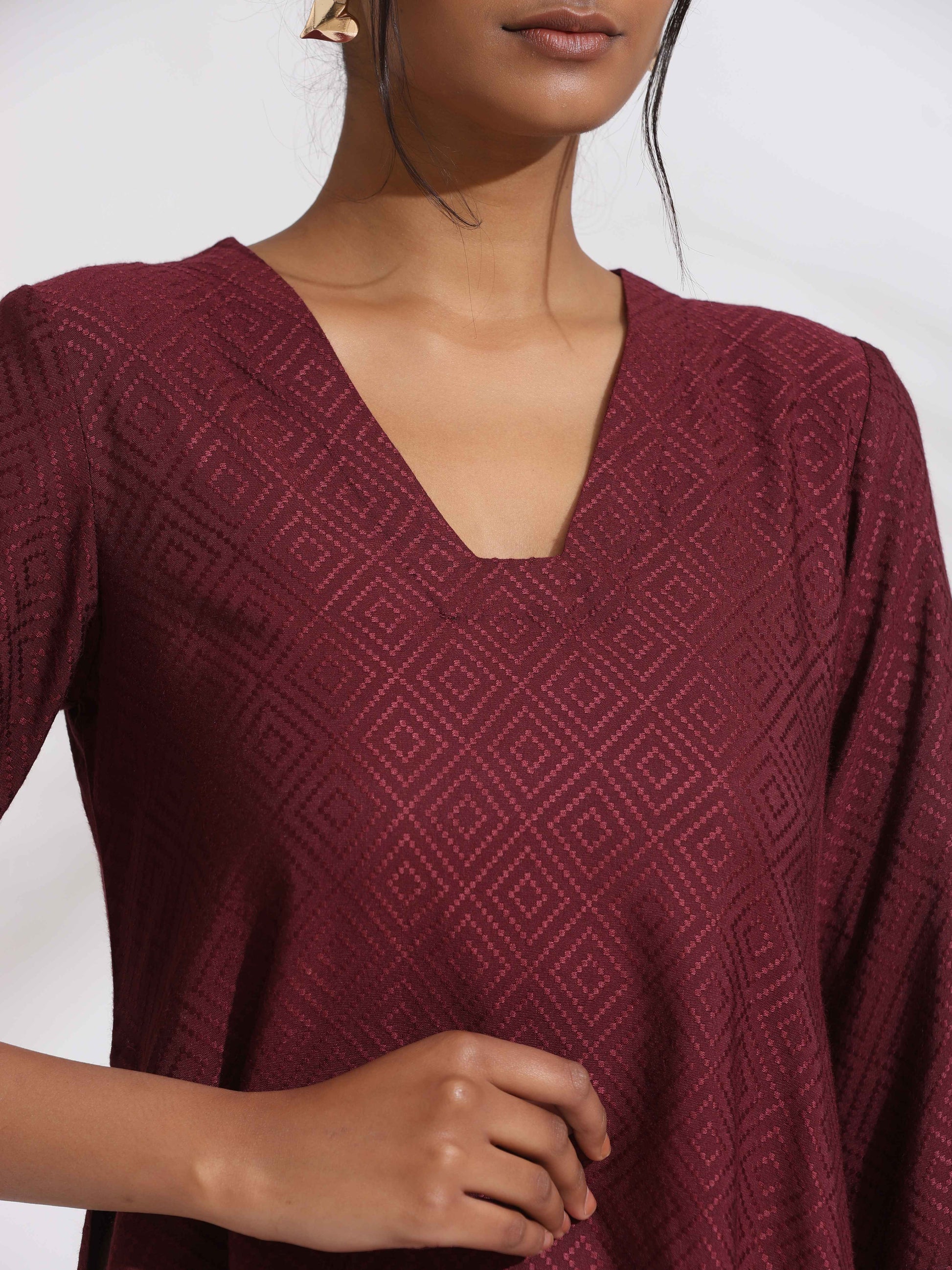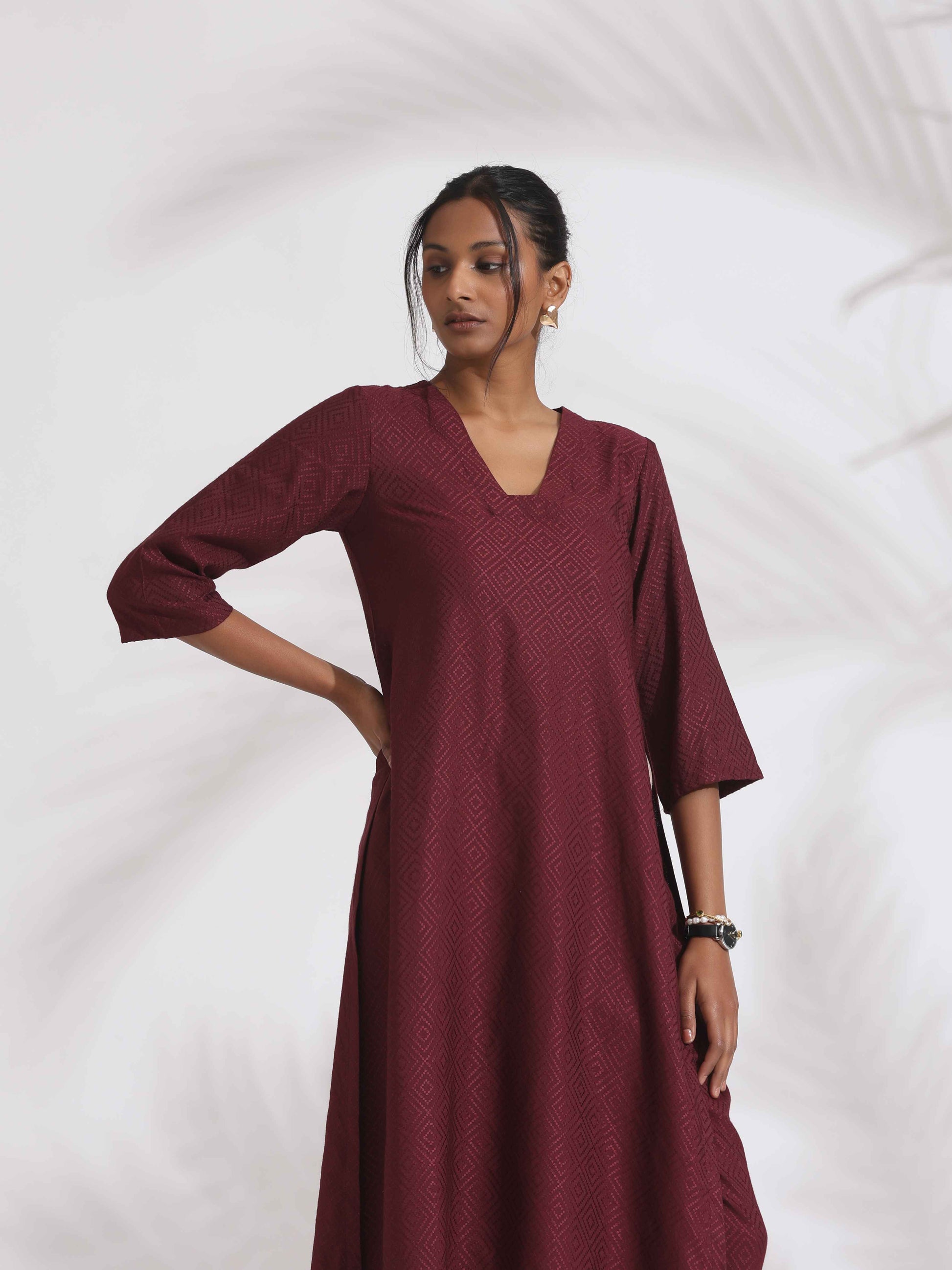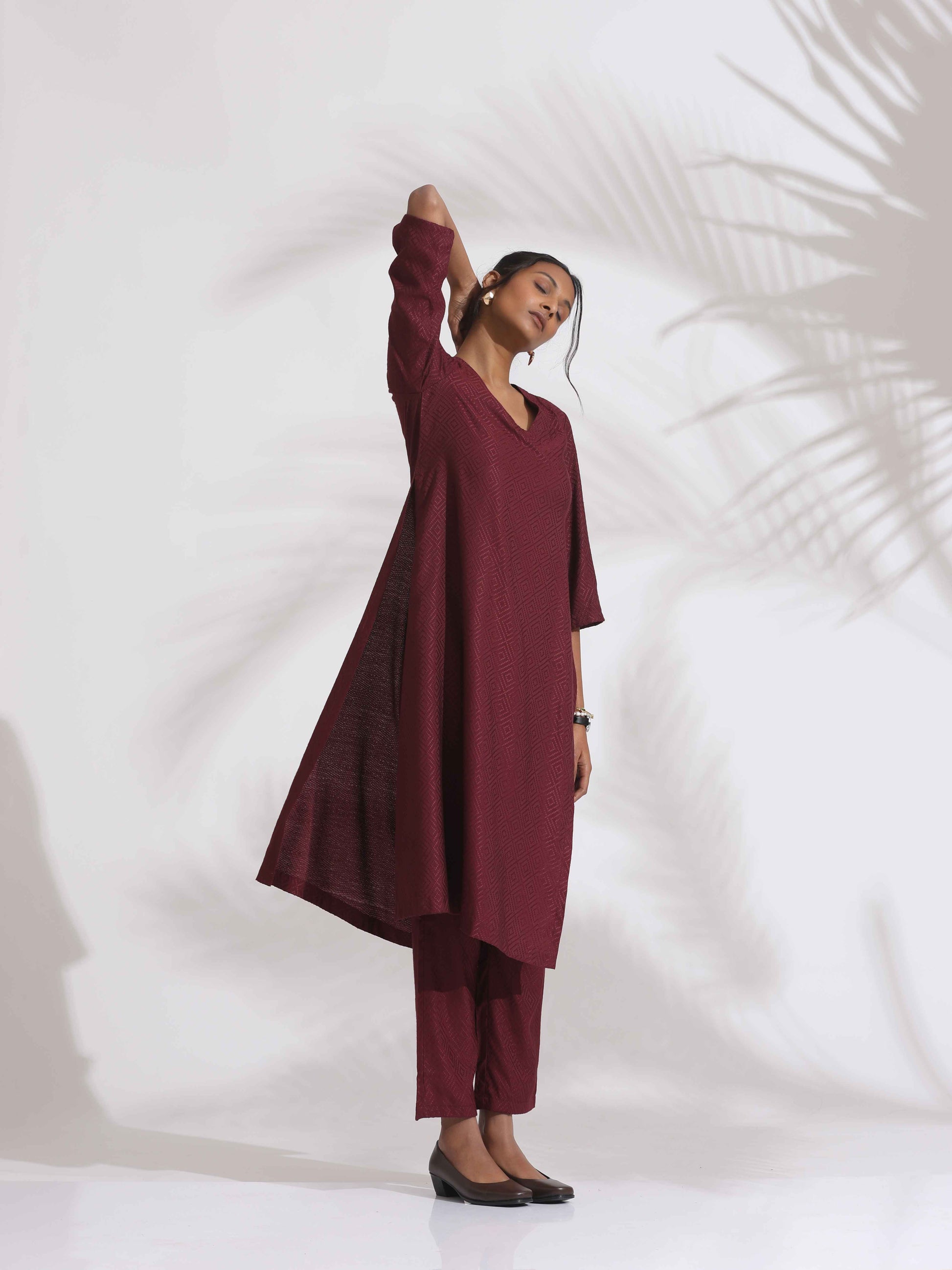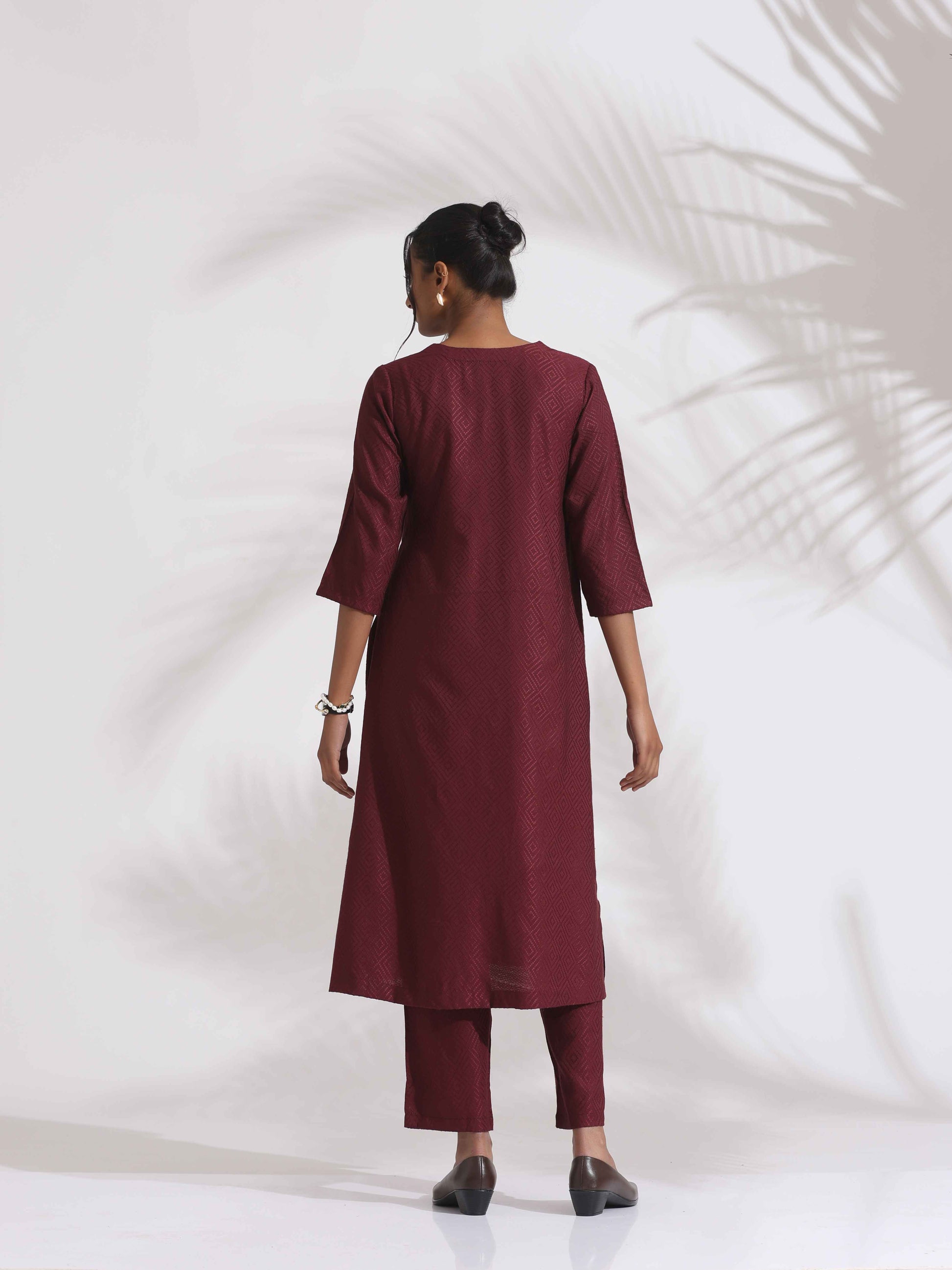 trueBrowns Maroon Dobby Kurta Set