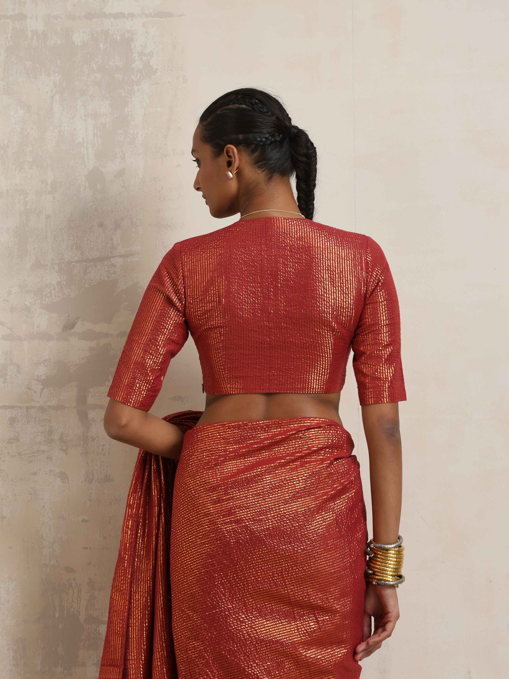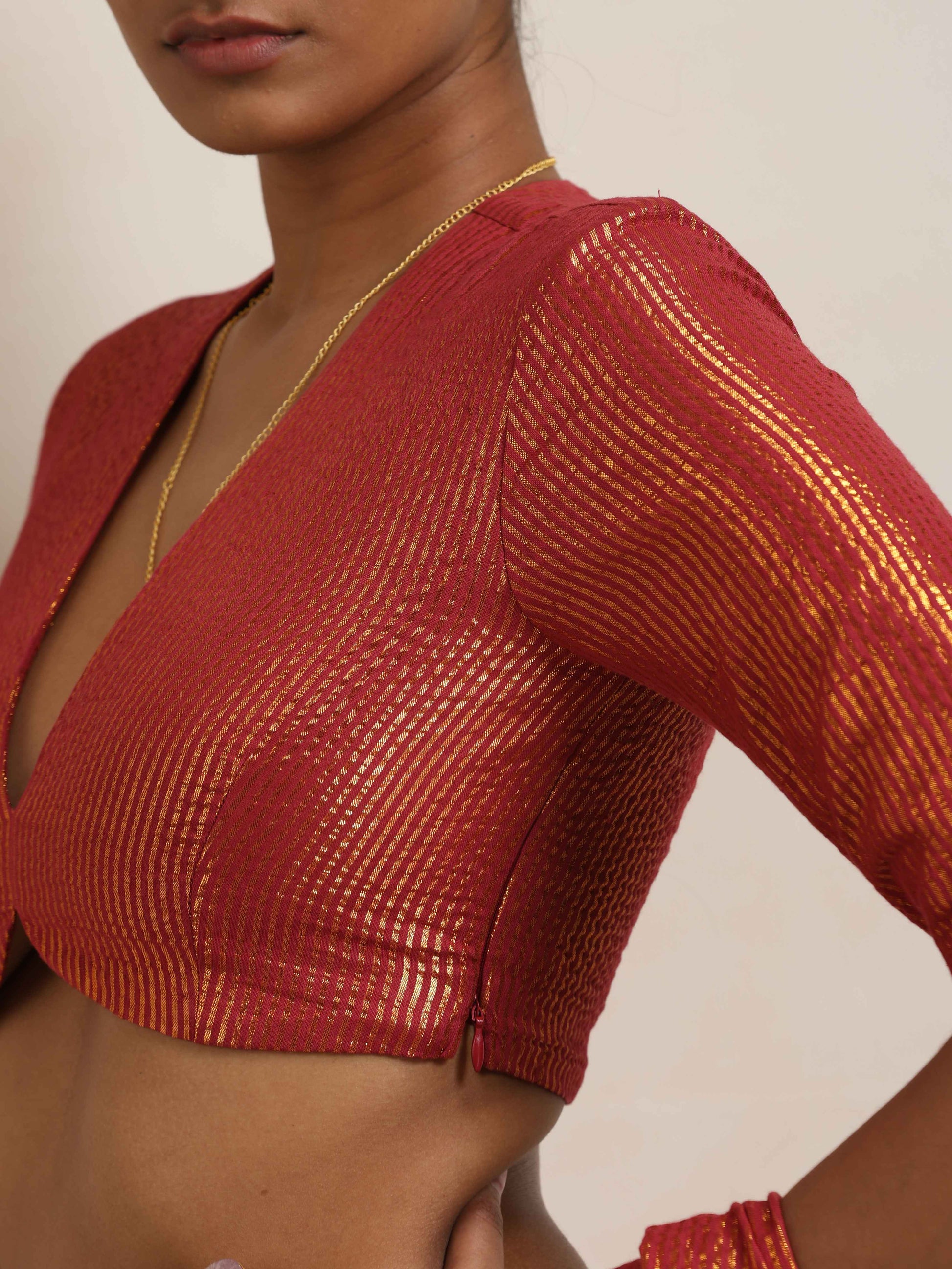 - Elevate your style with this maroon cotton gold lurex blouse