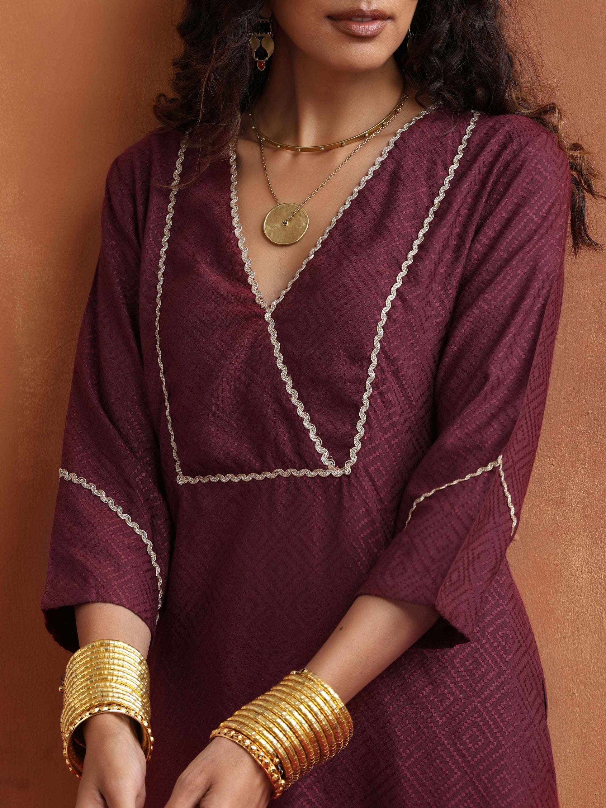 - Elevate your style with this maroon viscose straight kurta paired with maroon viscose pant