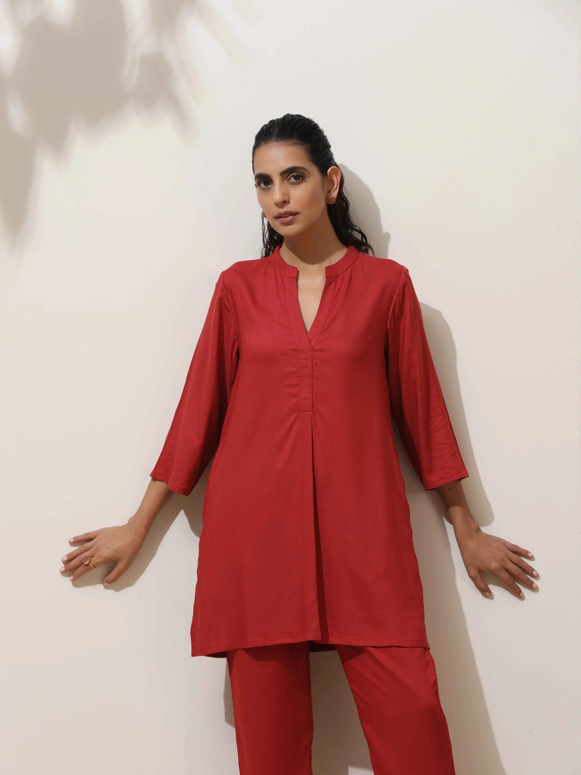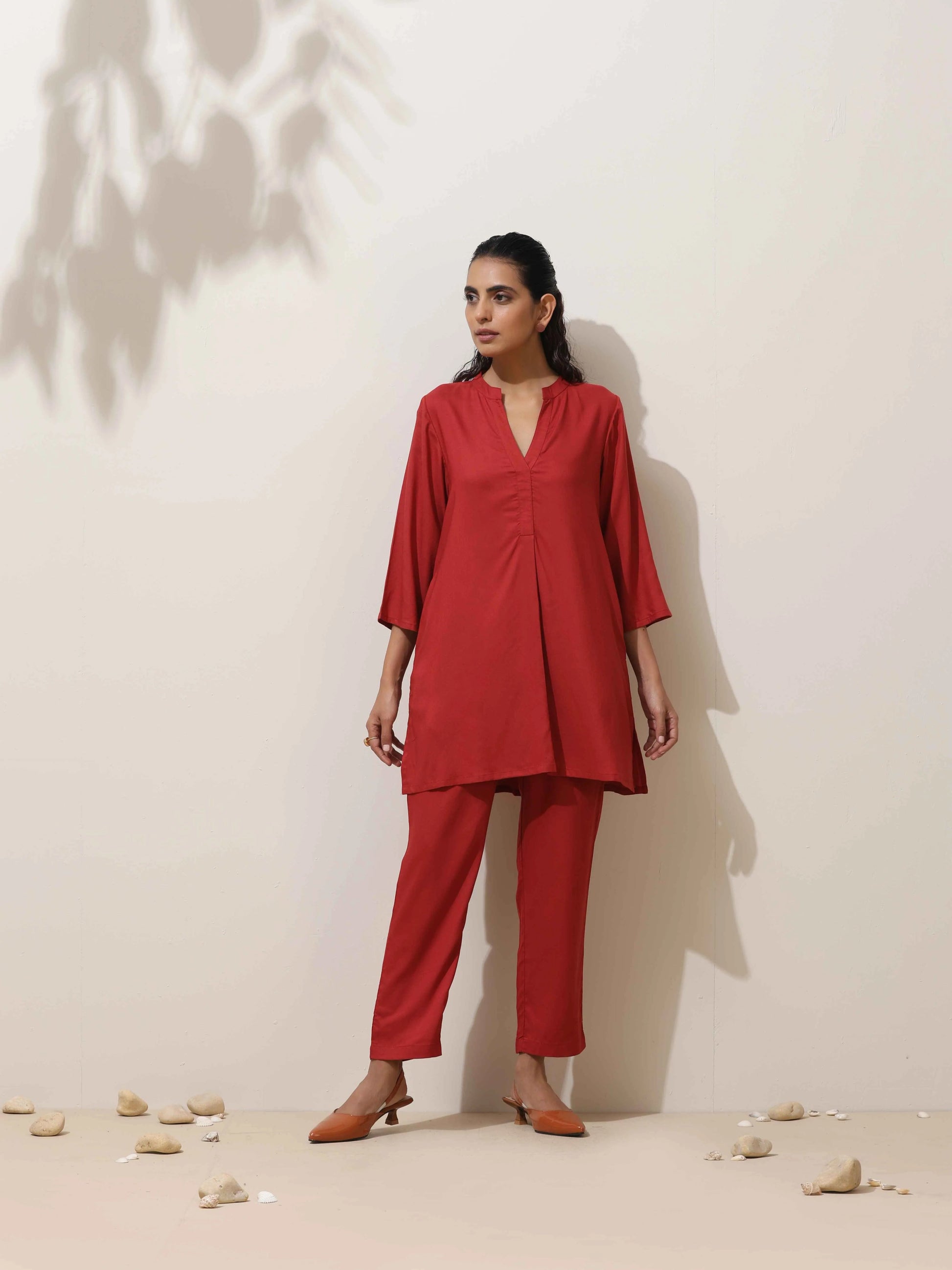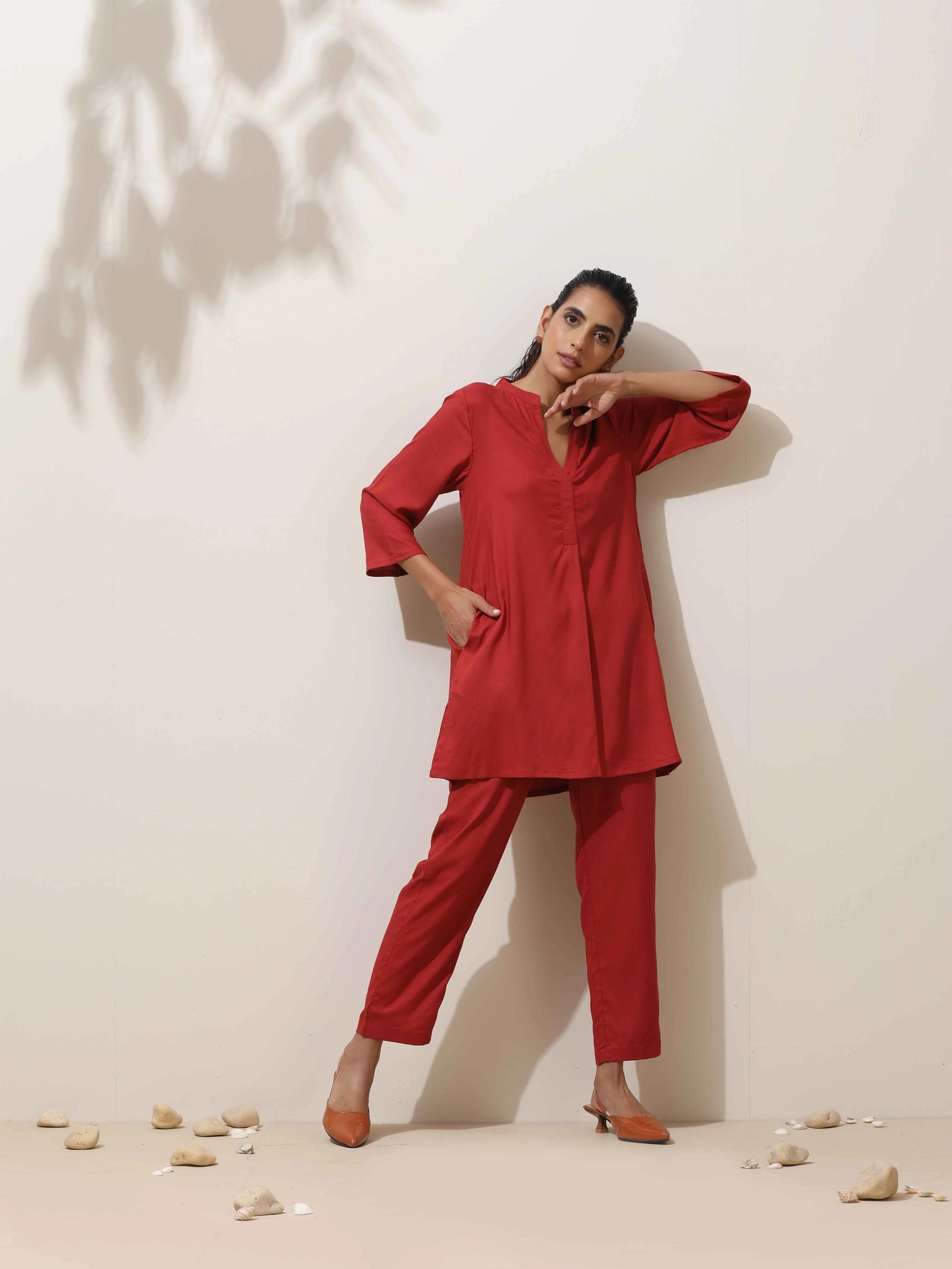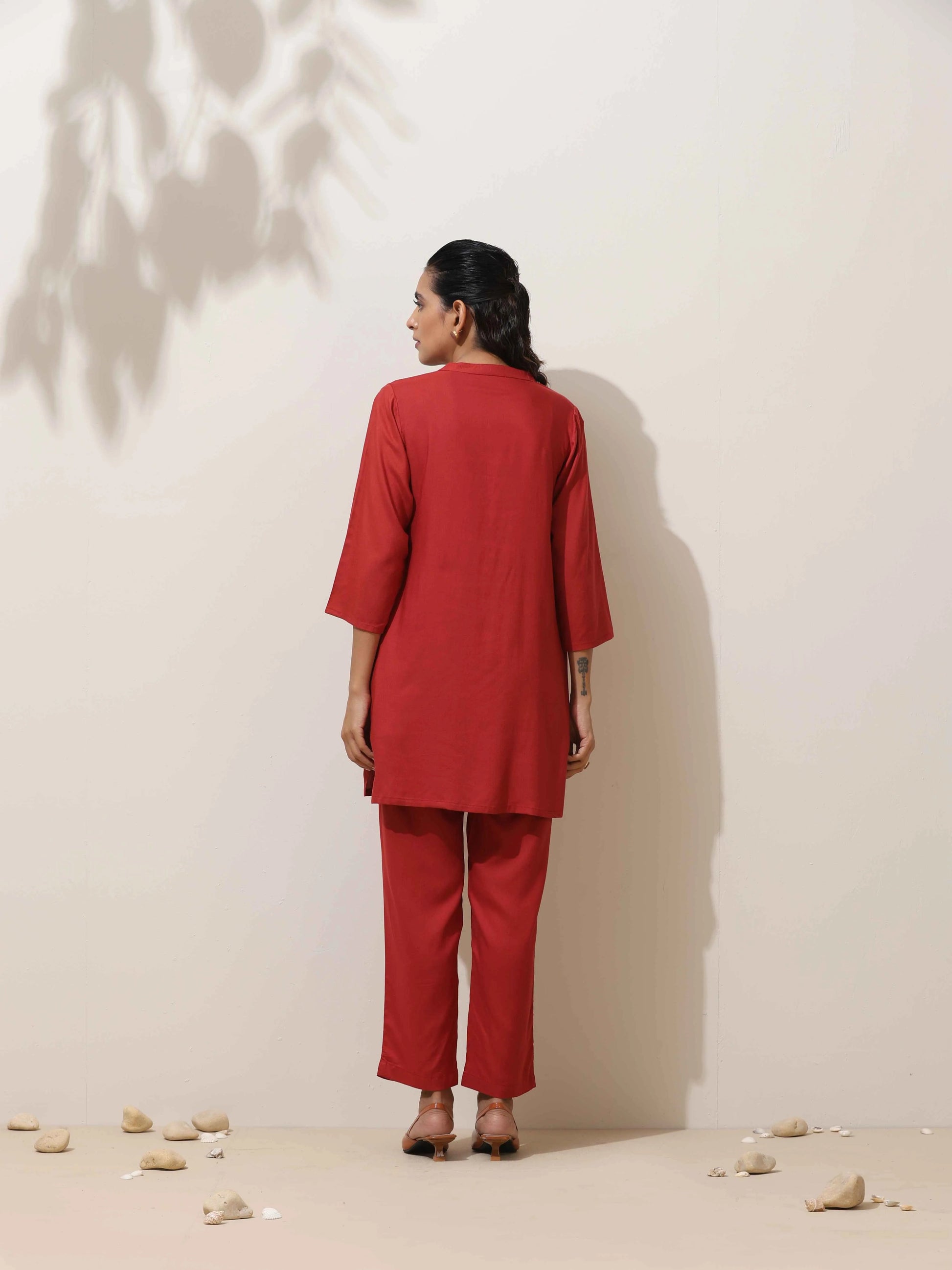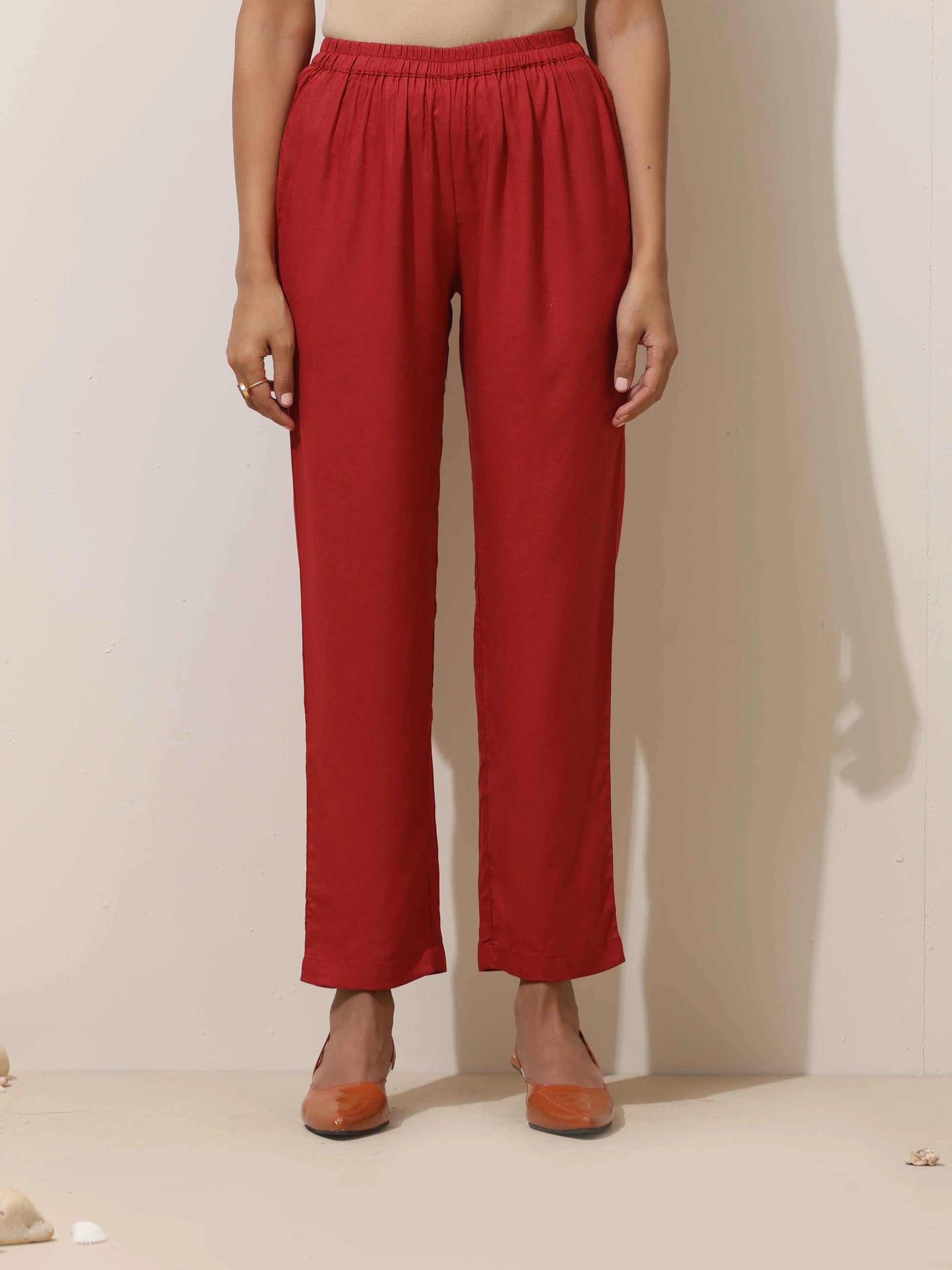 - Elevate your style with this maroon top with maroon pants, it's an ideal blend of elegance and comfort.