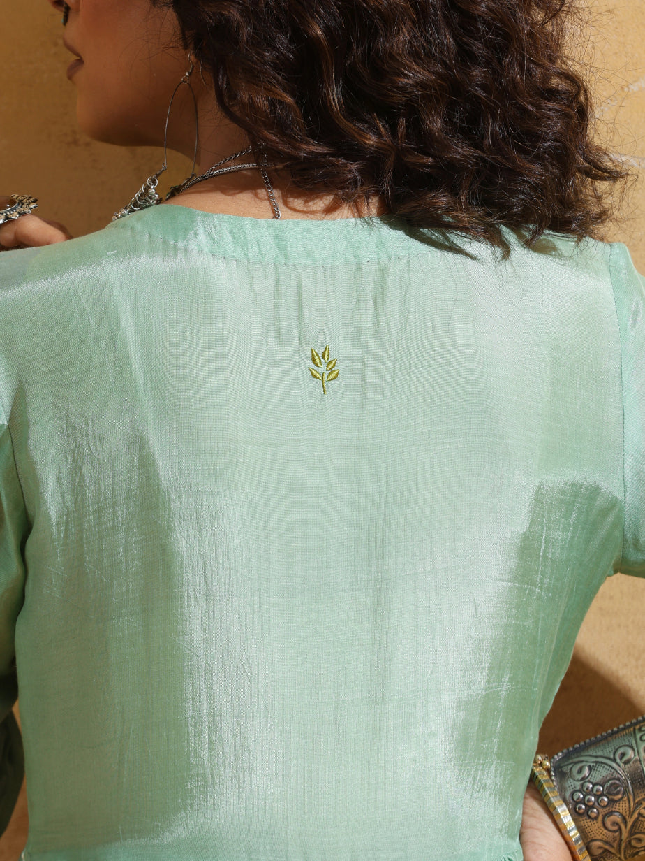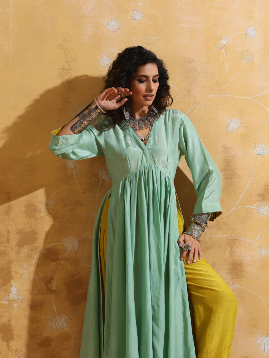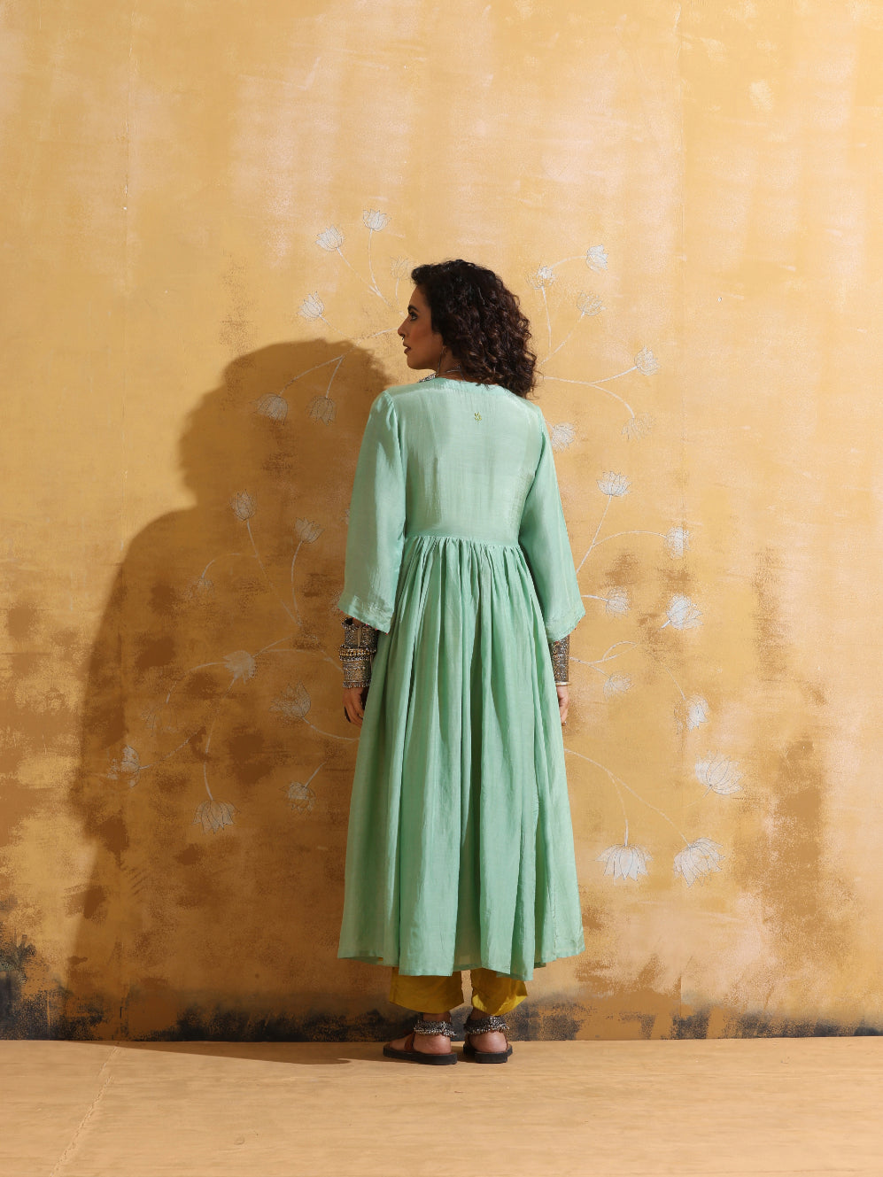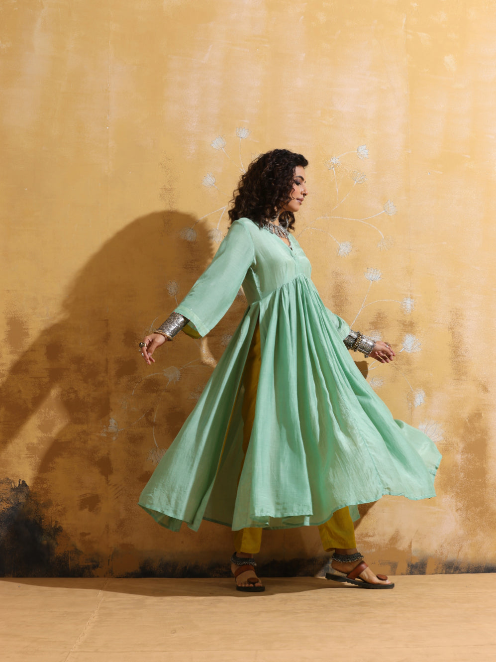 trueBrowns Mint Green Muslin Silk Anarkali Kurta Pant Set