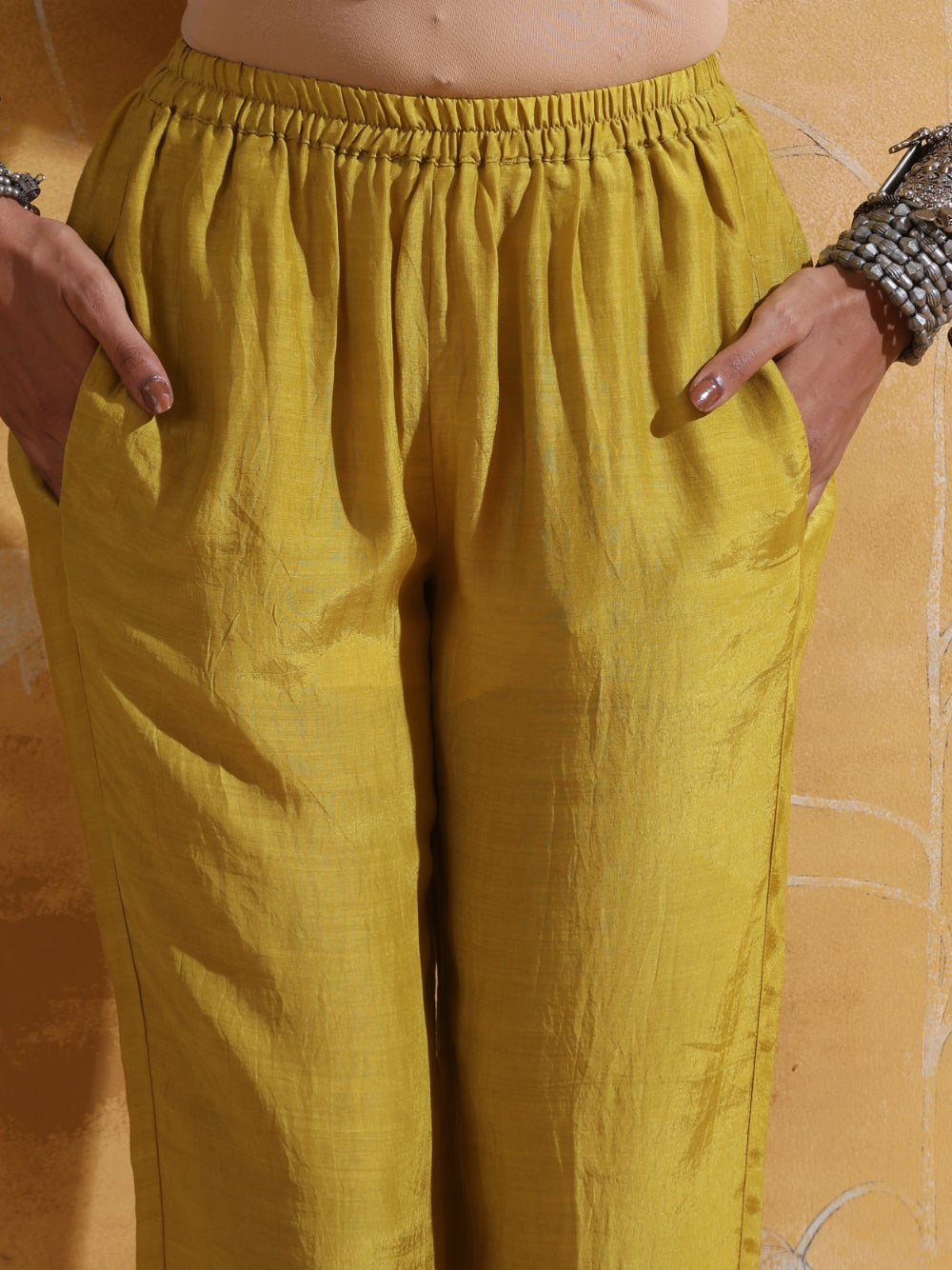 - Elevate your style and step into effortless elegance with this mint green high-slit kurta featuring contrast-color trim and bead details, paired with lime pants. Designed for modern style and comfort, it’s perfect for occasions and gatherings.