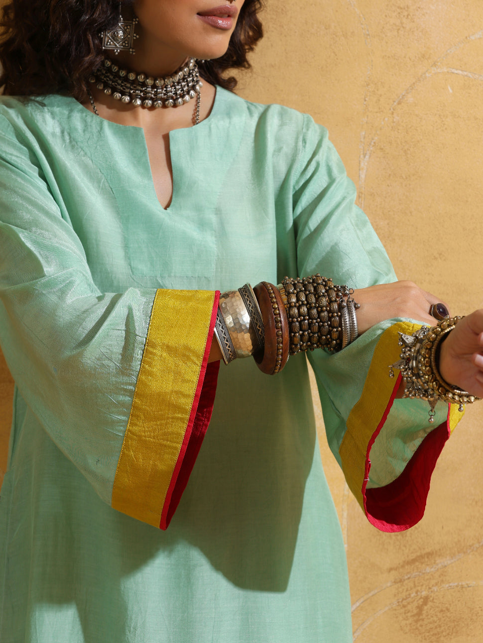 trueBrowns Mint Green Muslin Silk High-Slit Kurta Pant Set