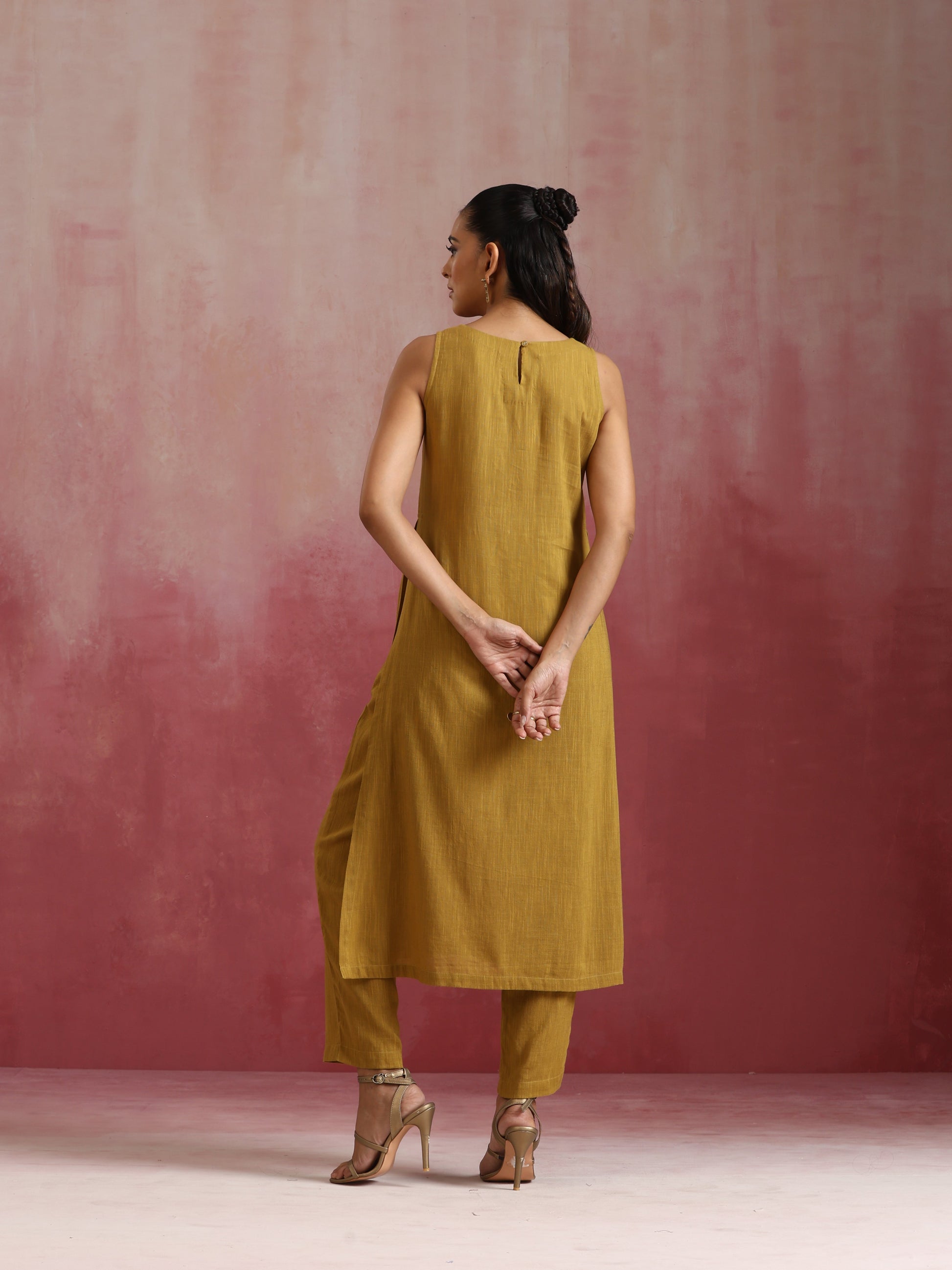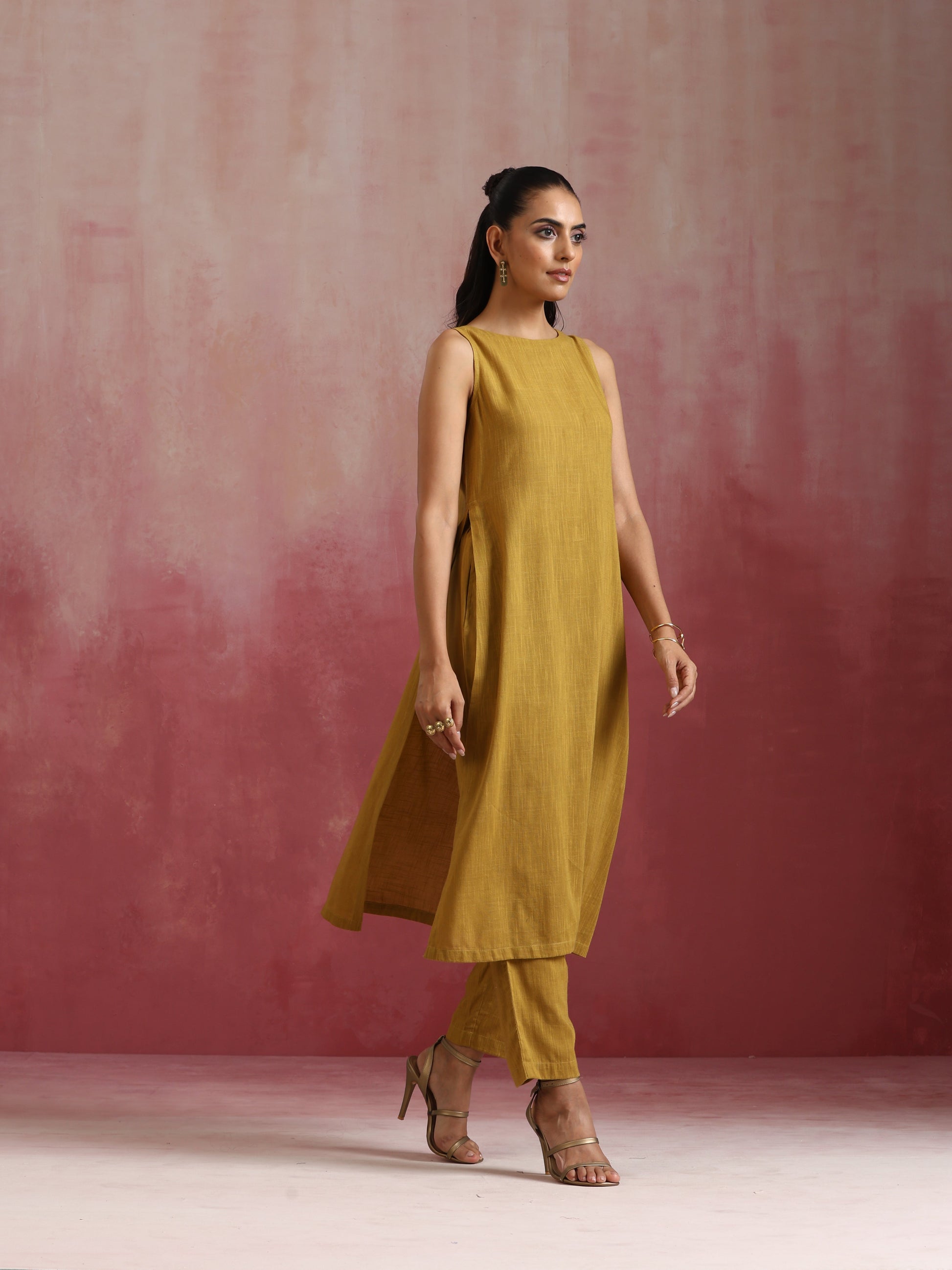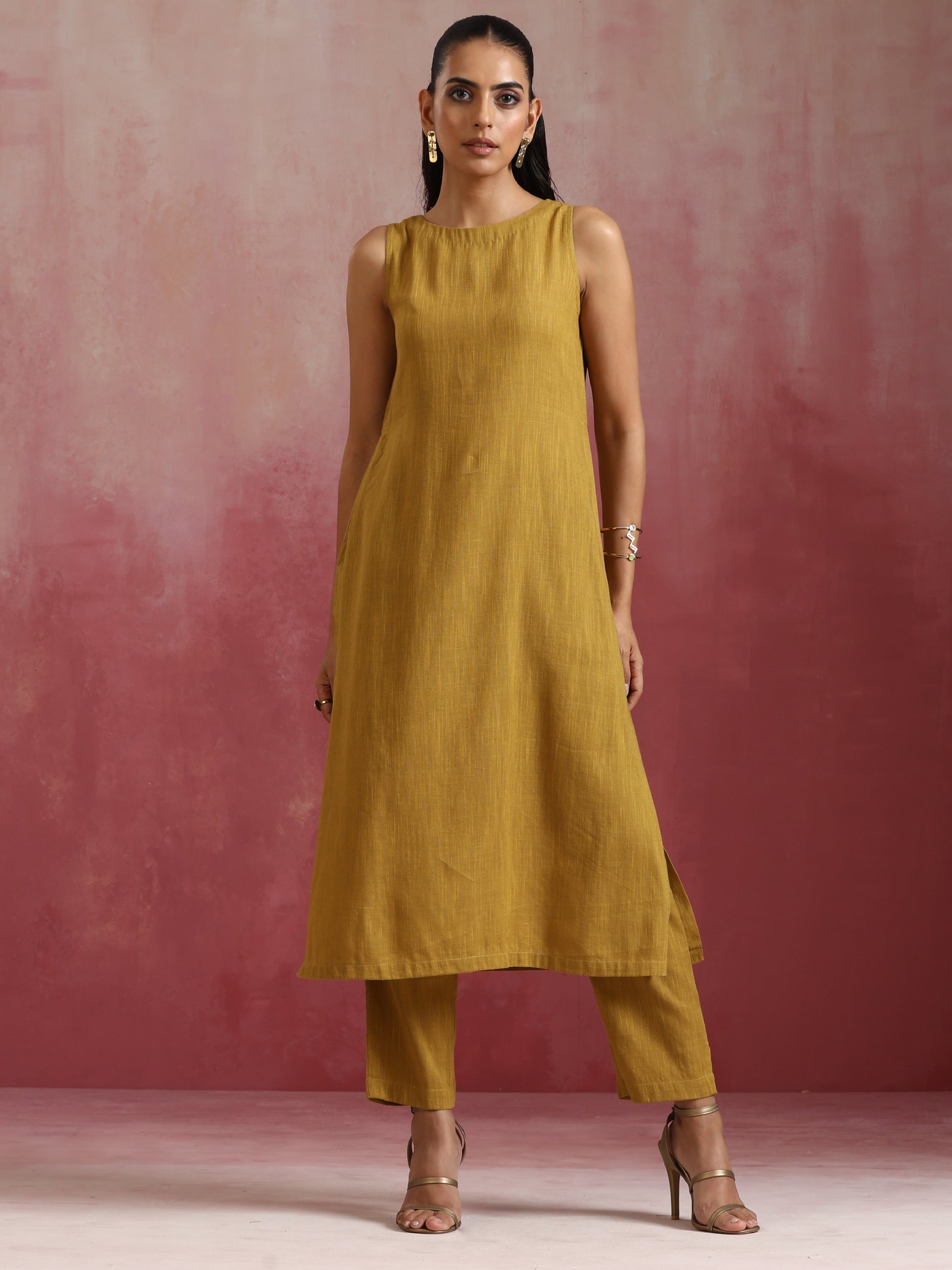 trueBrowns Mustard Cotton Kurta Set
