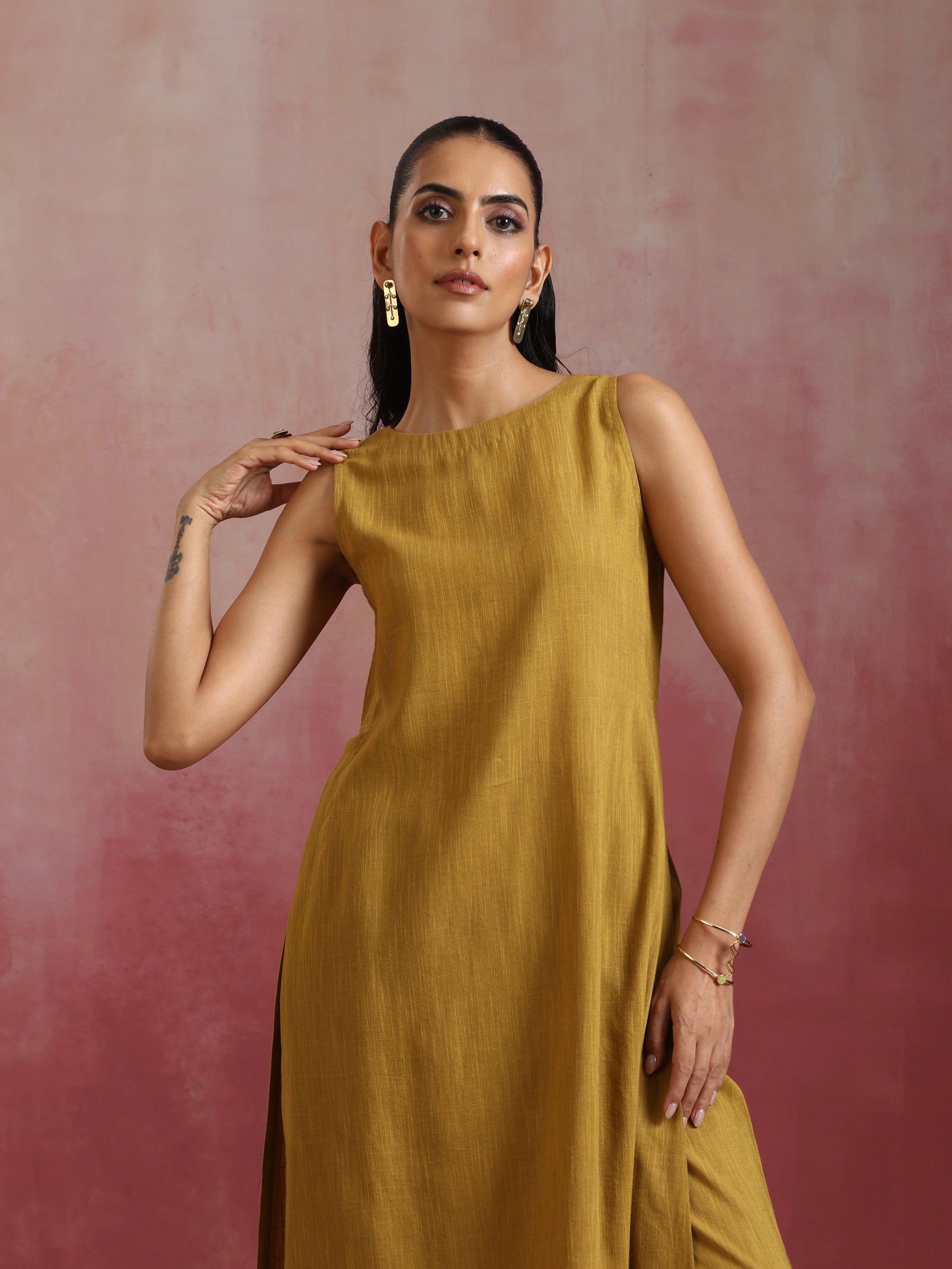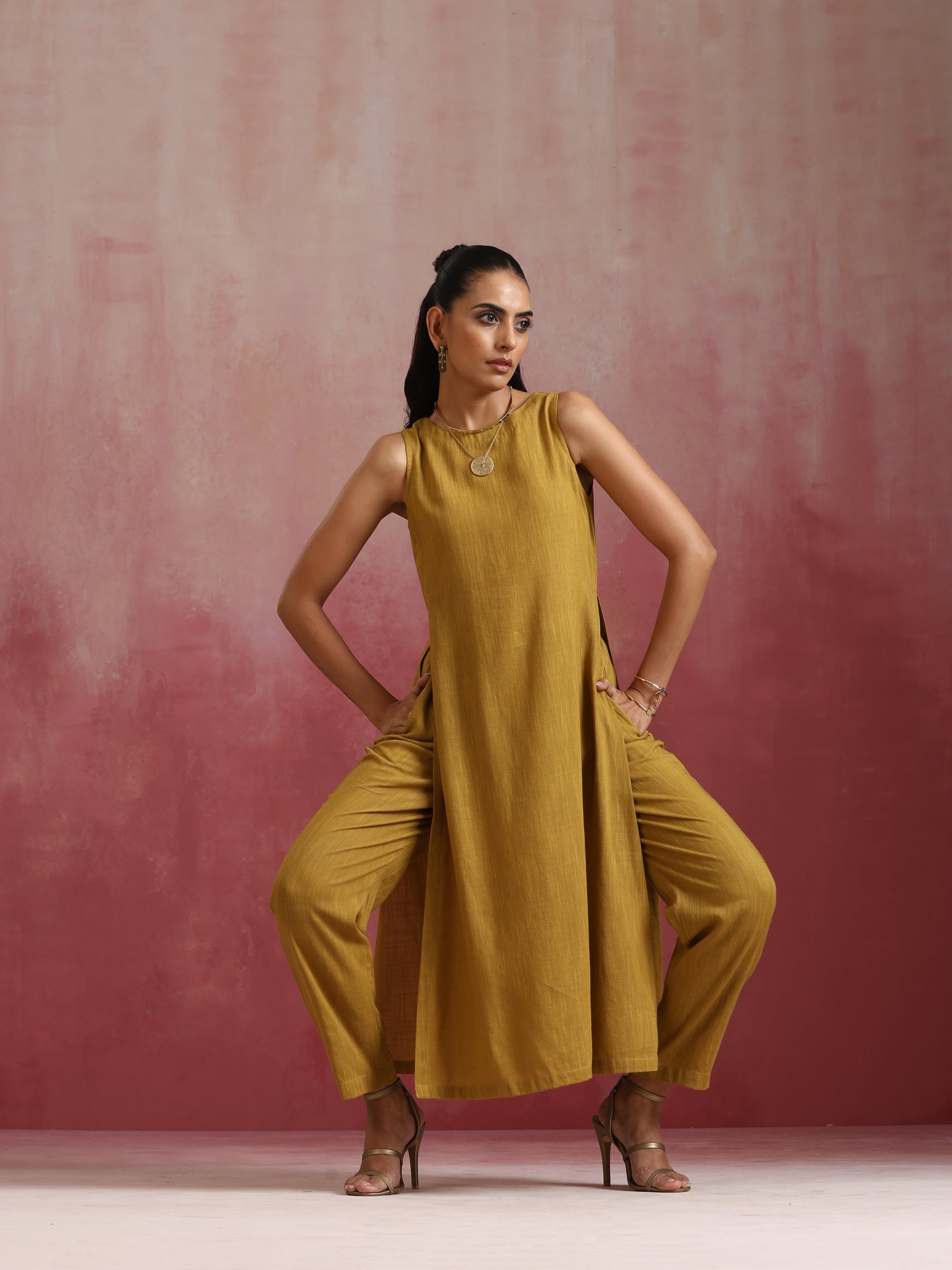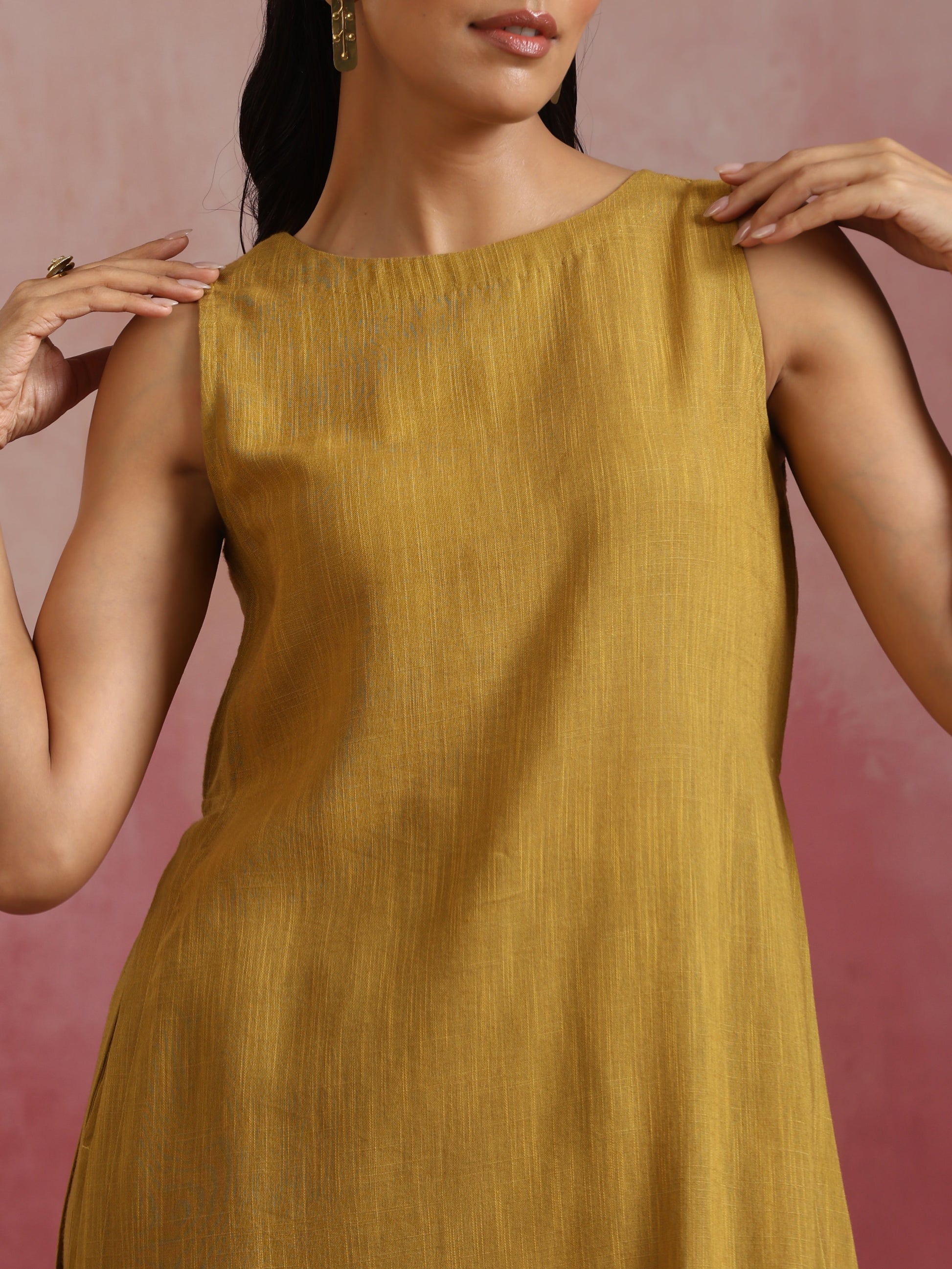 trueBrowns Mustard Cotton Kurta Set