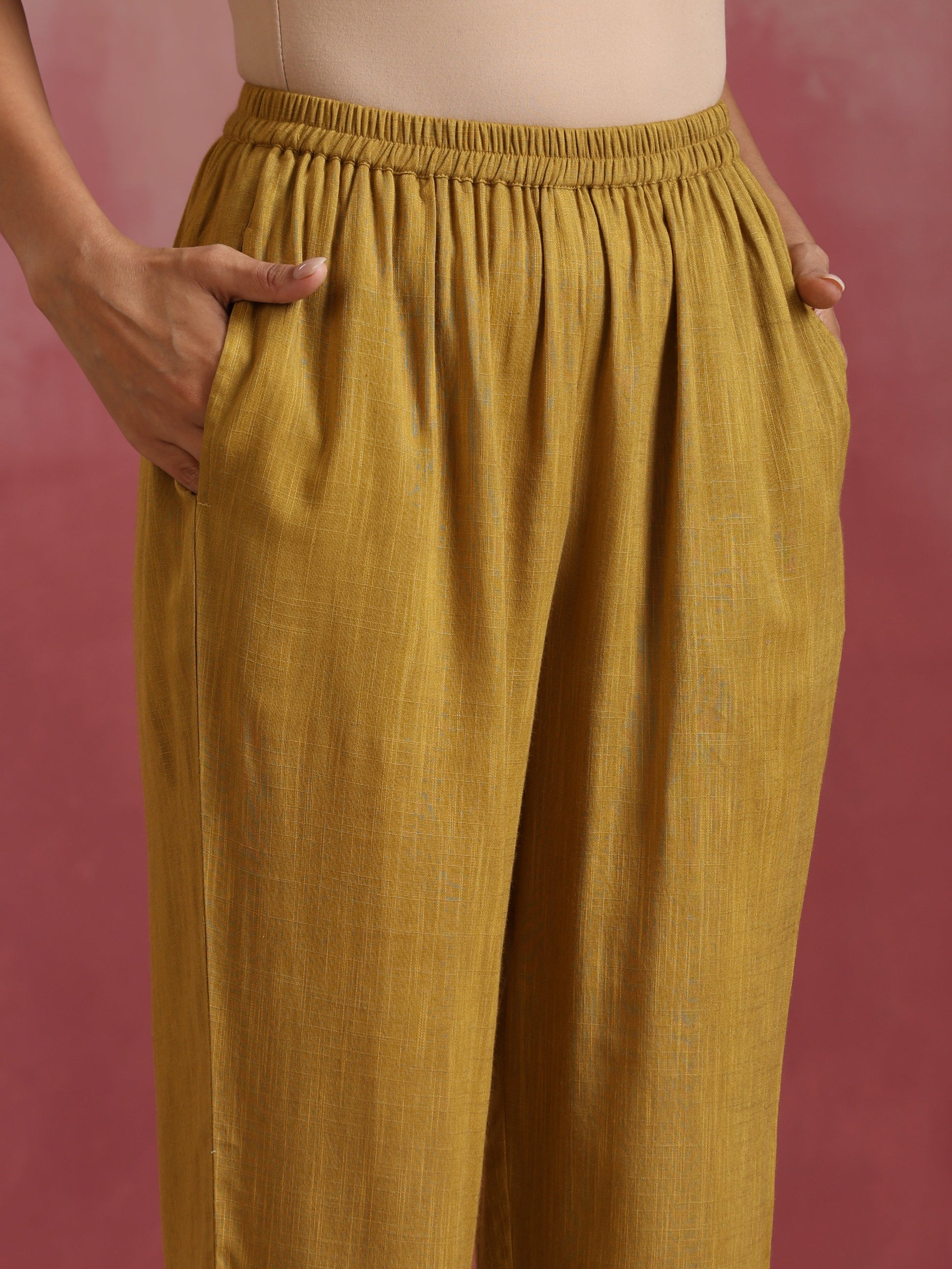 - Elevate your style with this mustard cotton dobby kurta with 3/4th sleeves.