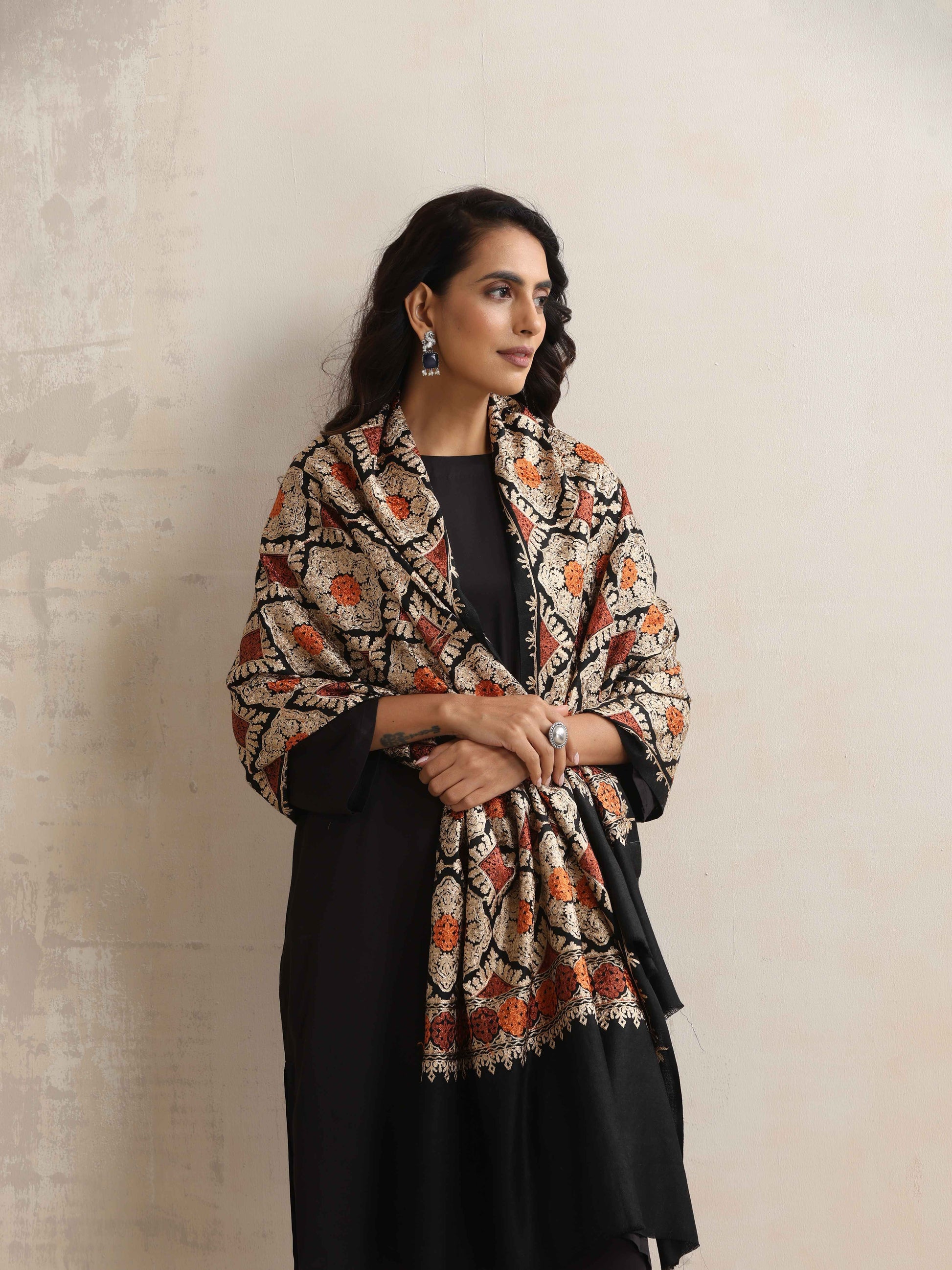 - Elevate your style with this black embroidered stole, it's an ideal blend of elegance and comfort.