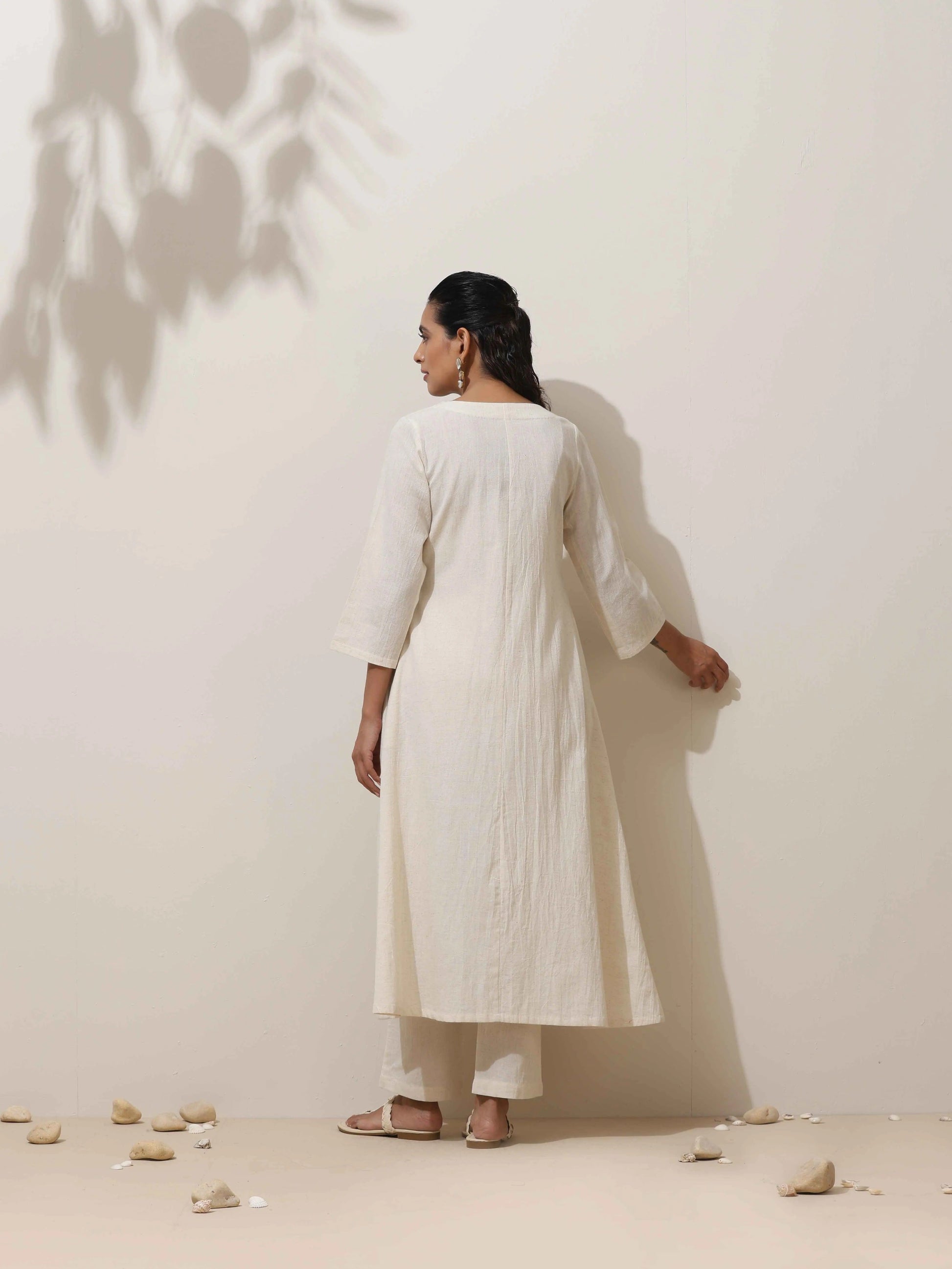 trueBrowns Off White Cotton Angrakha Kurta Pant Set