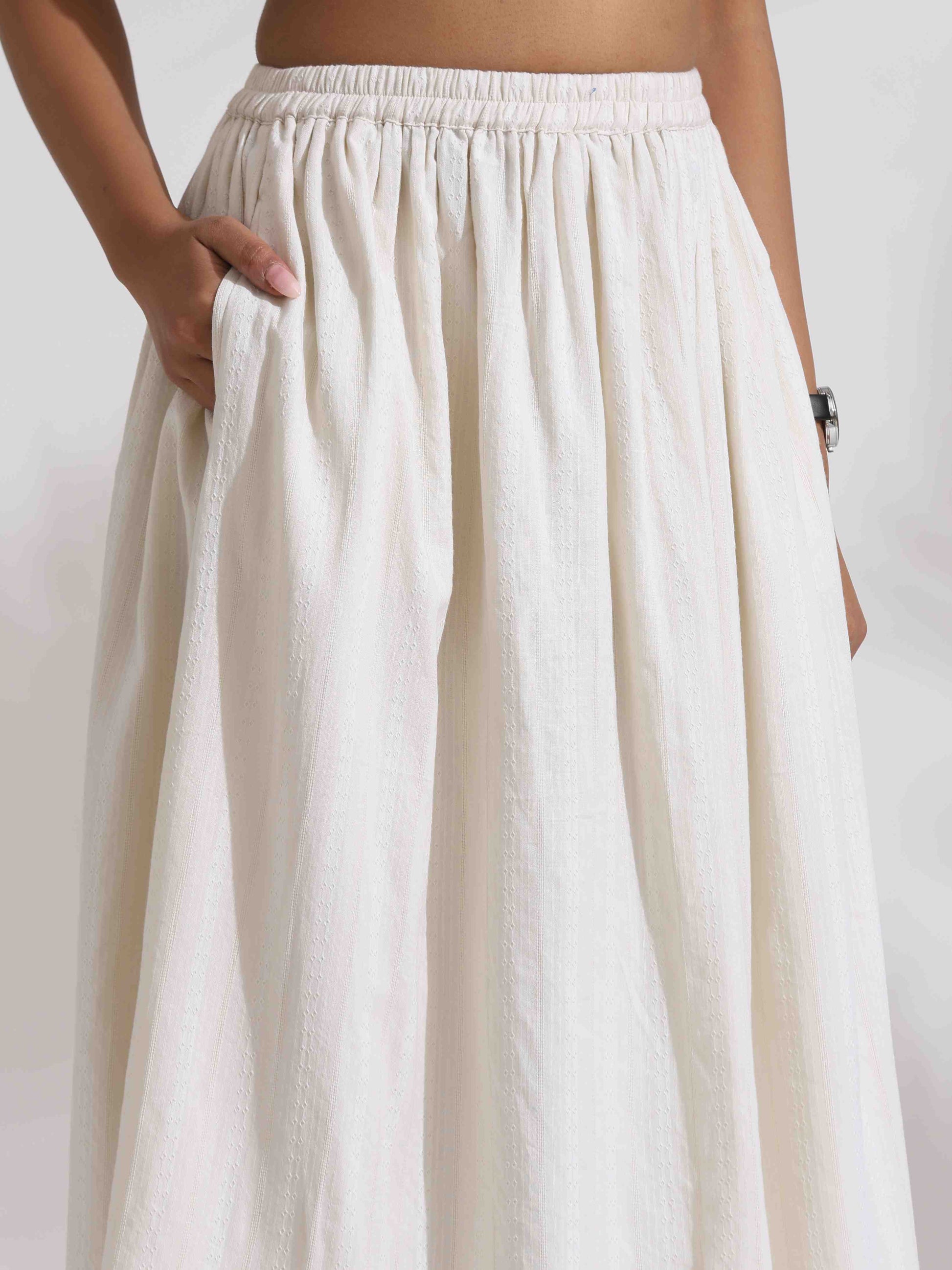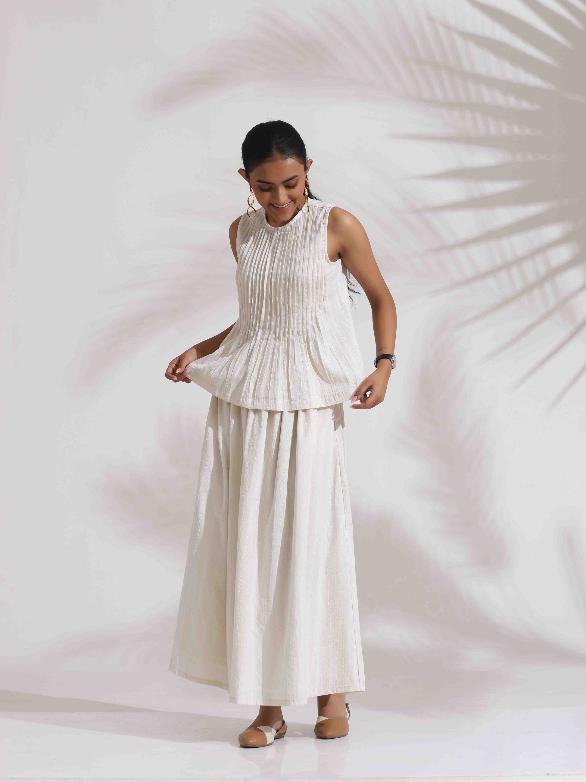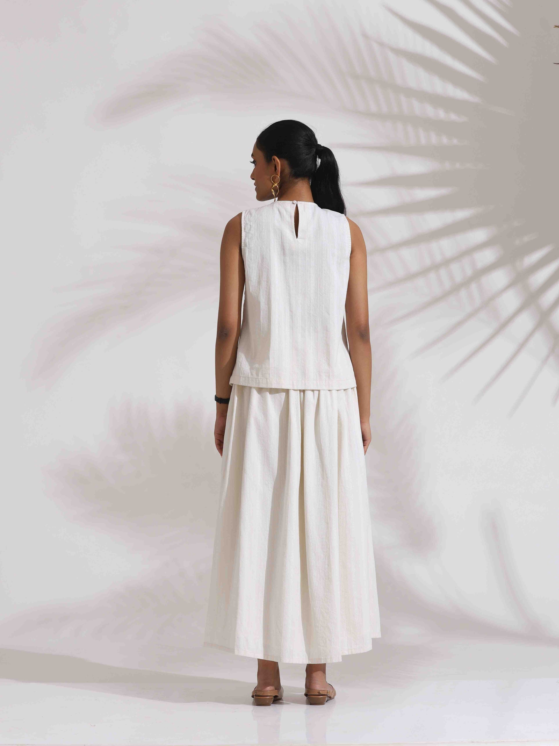trueBrowns Off-white Cotton Skirt Co-ord Set