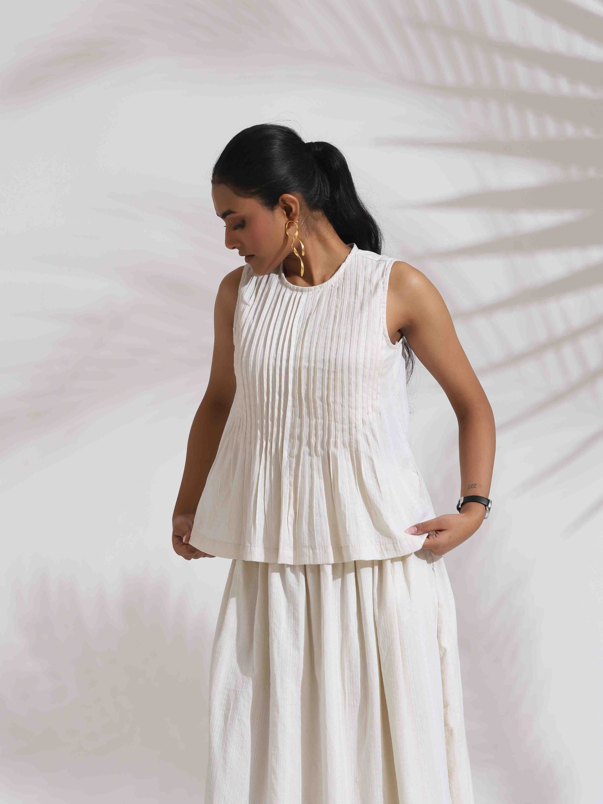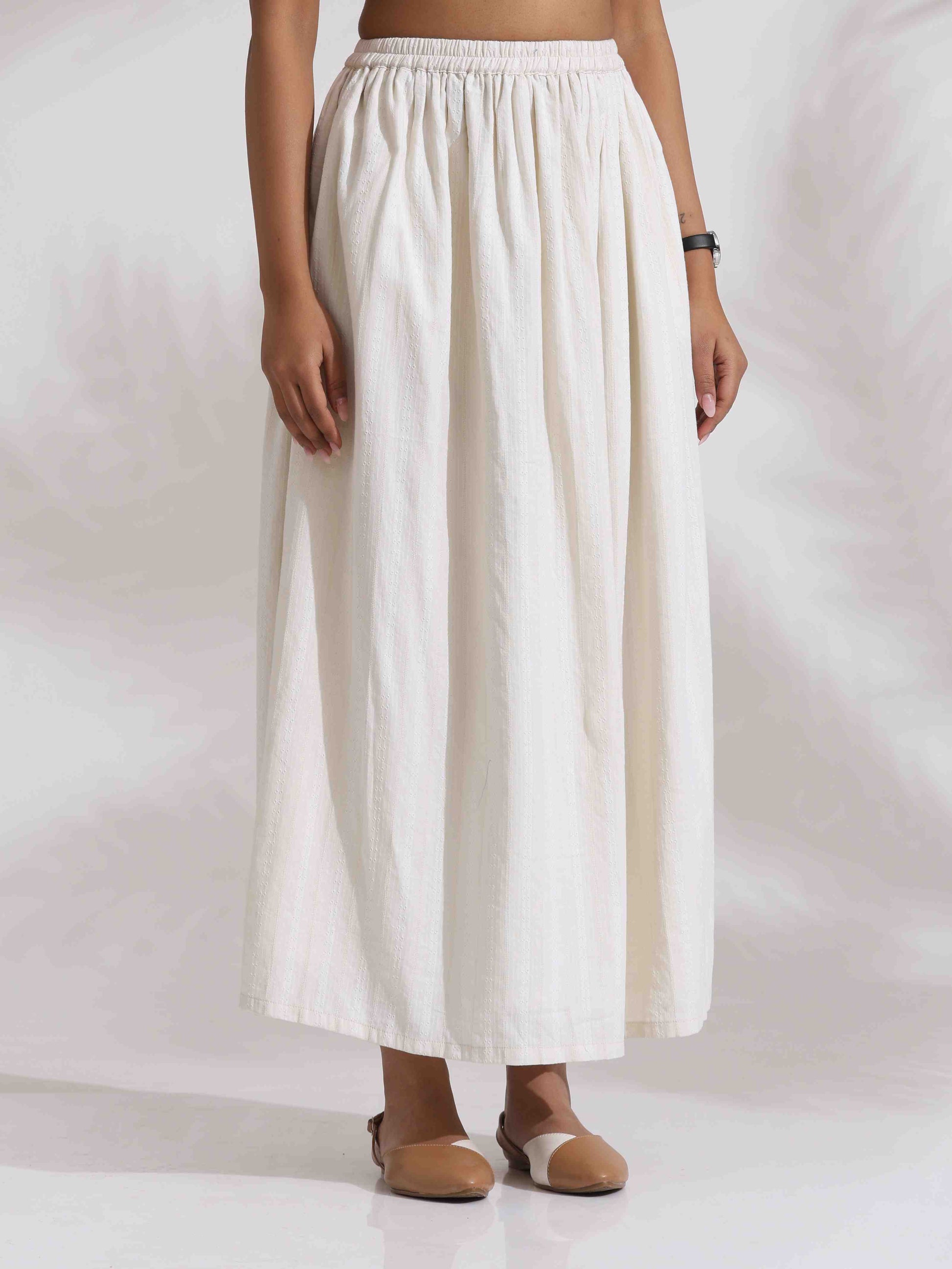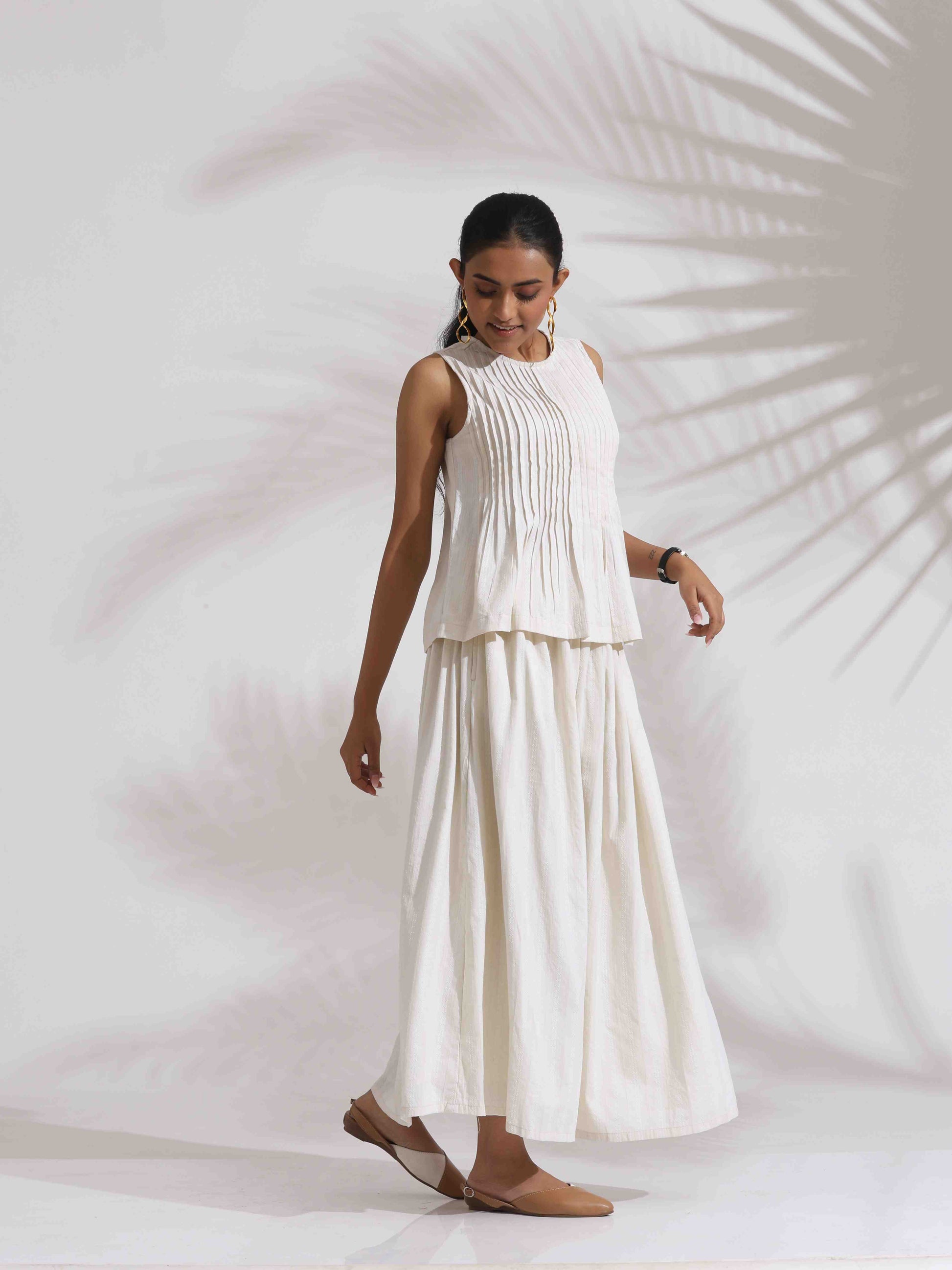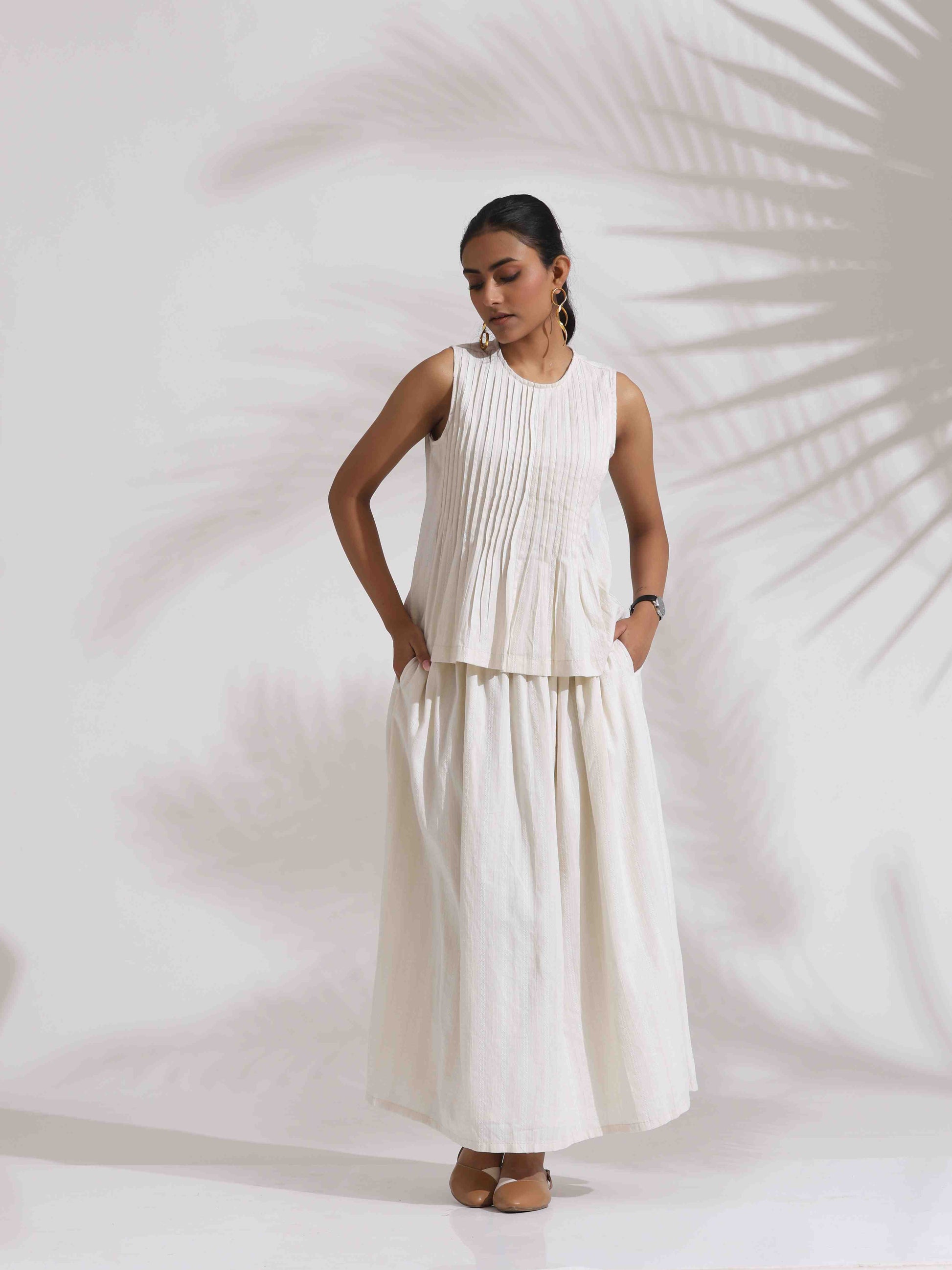 trueBrowns Off-white Cotton Skirt Co-ord Set