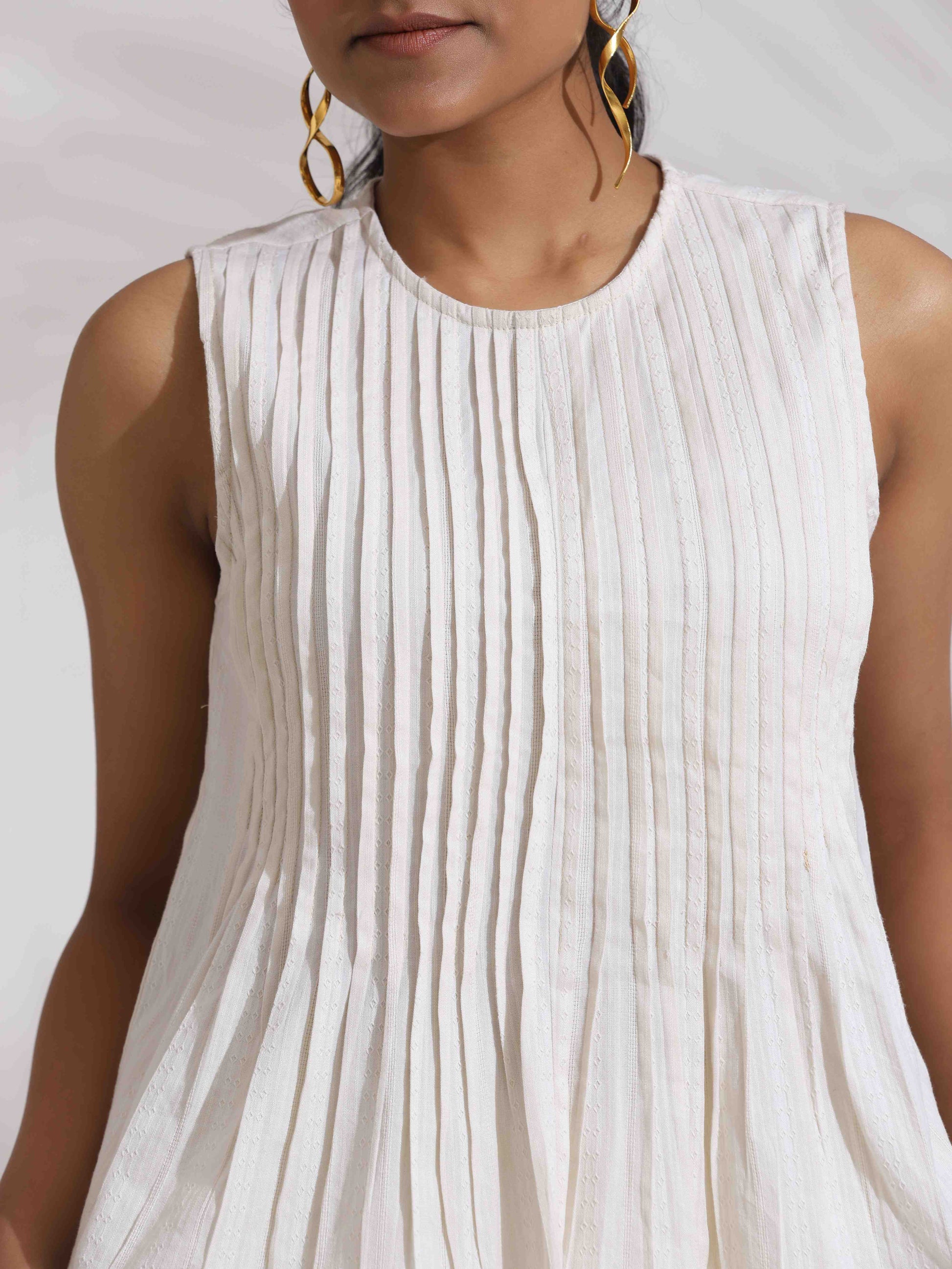 - Elevate your style with this off- white cotton dobby top with front pleats paired with cotton dobby skirt, it's an ideal blend of elegance and comfort.