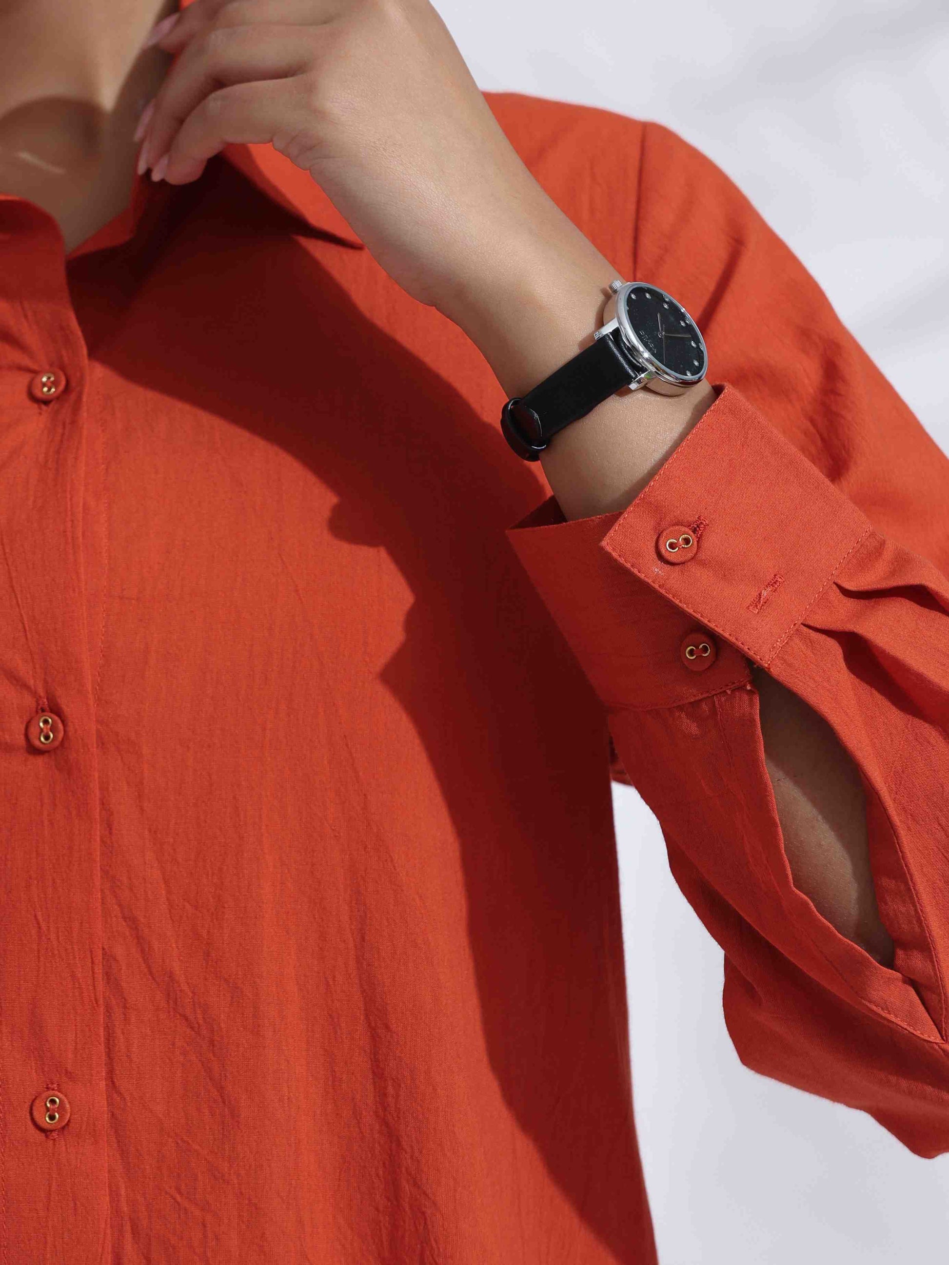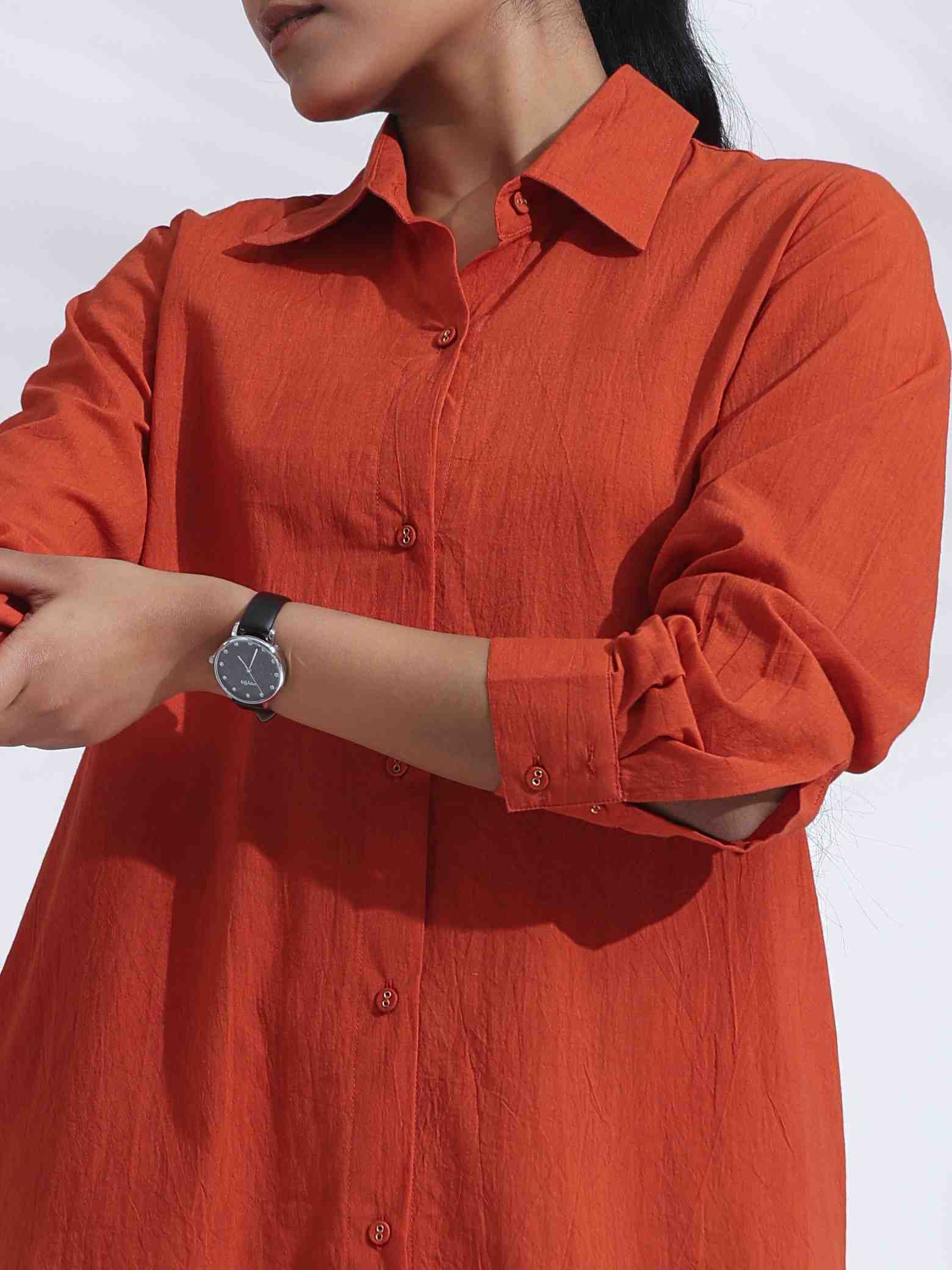 trueBrowns Orange Cotton Solid Shirt Kurta Co-ord Set