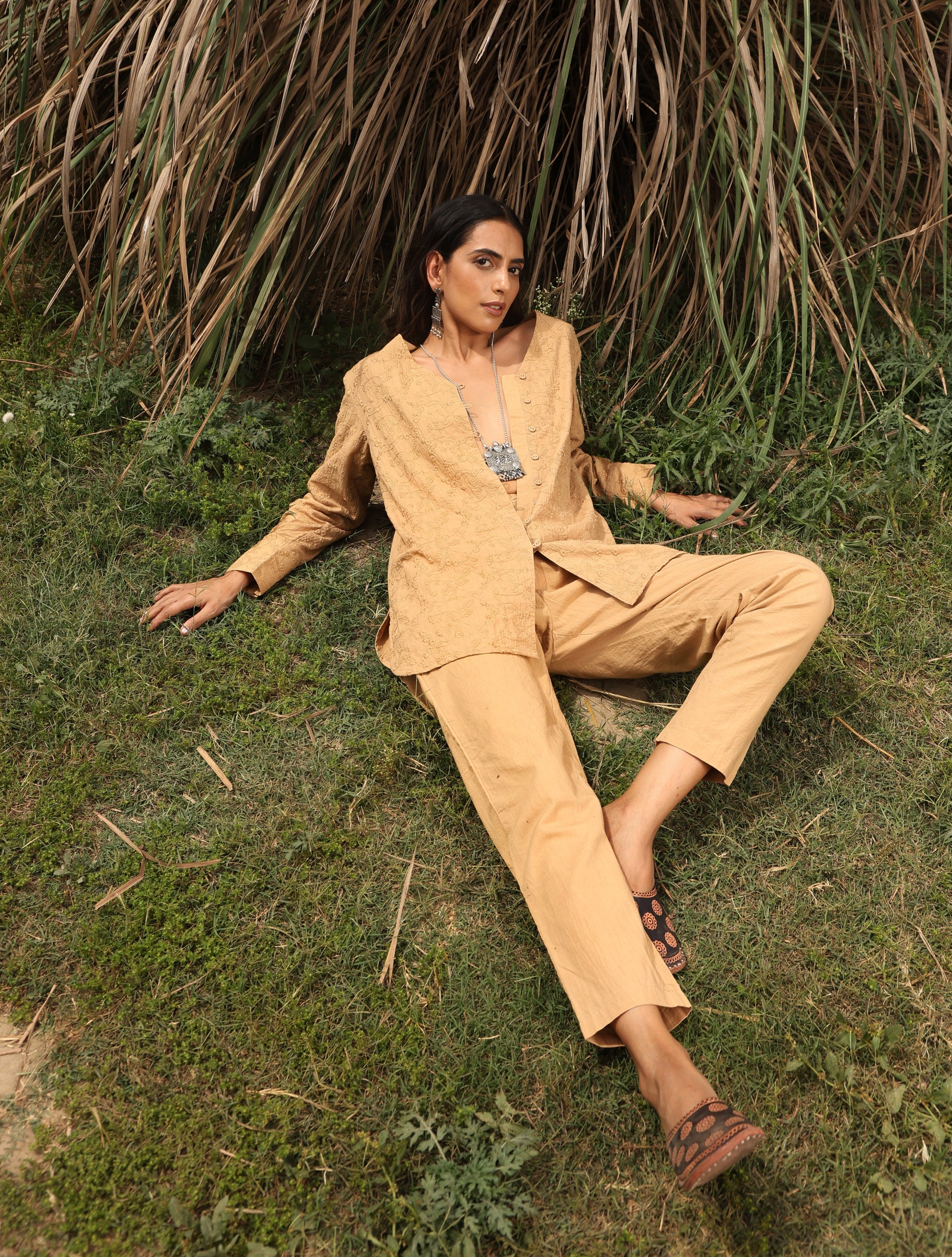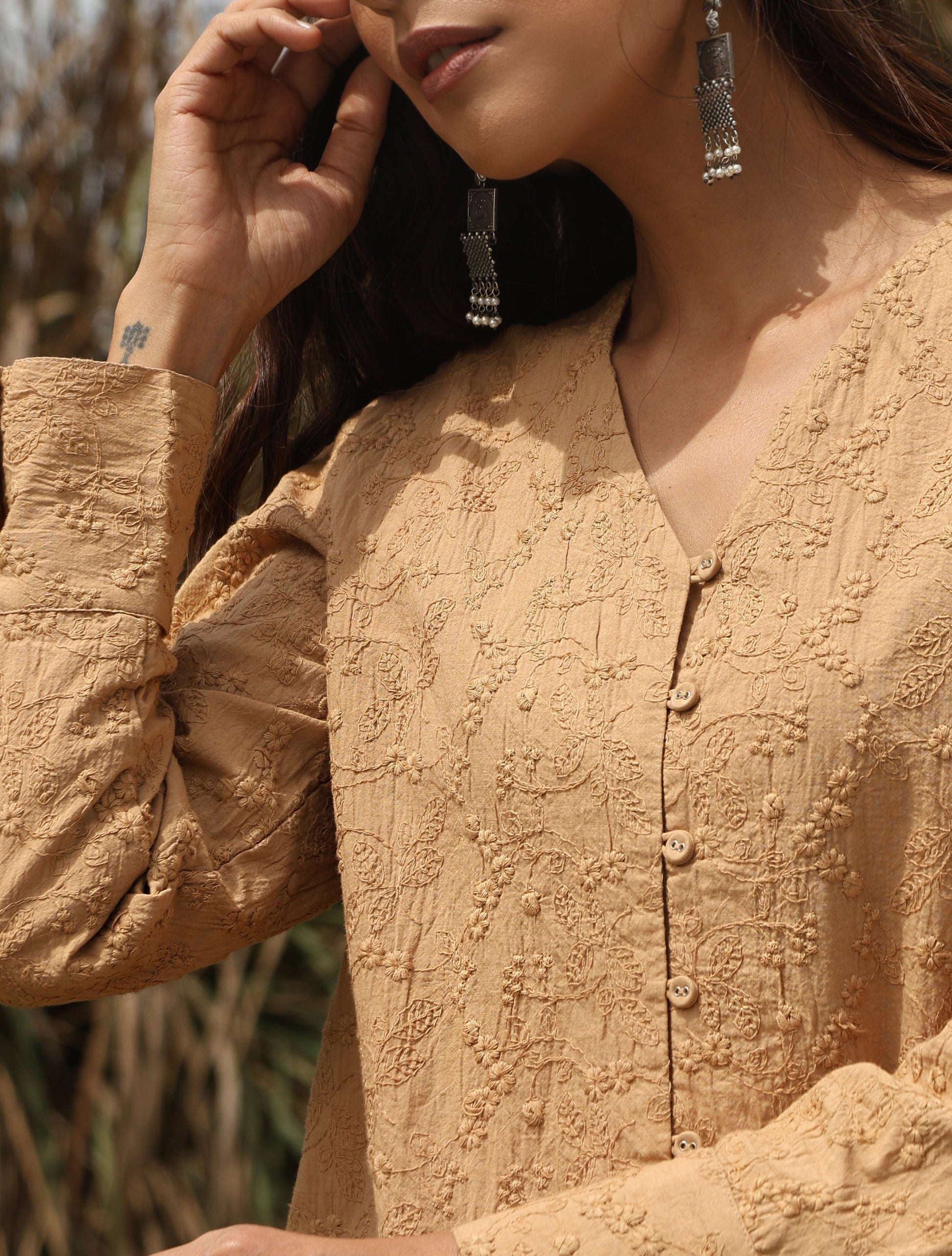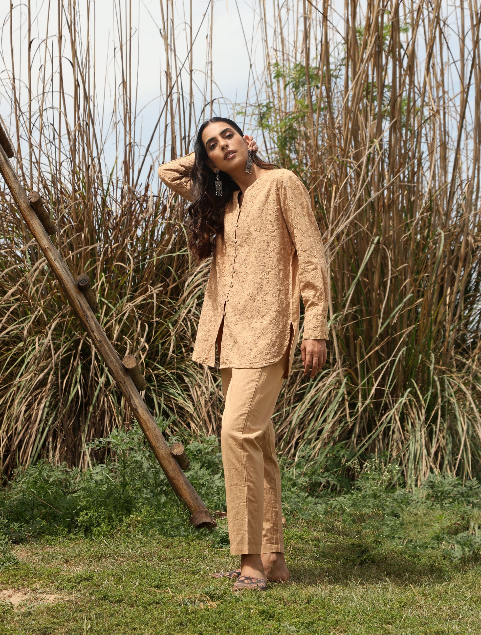 trueBrowns Peach Cotton Embroidered Co-ord Set
