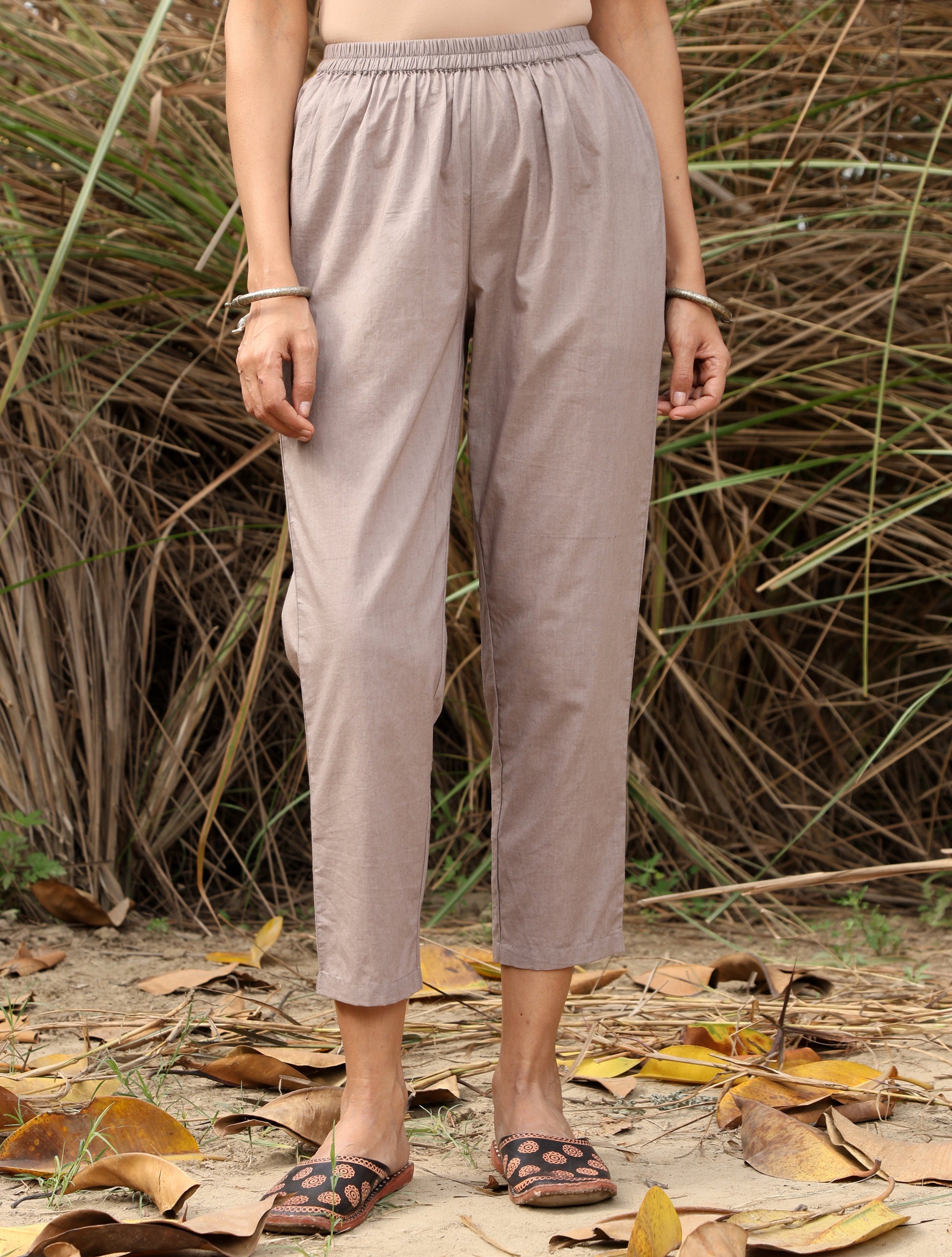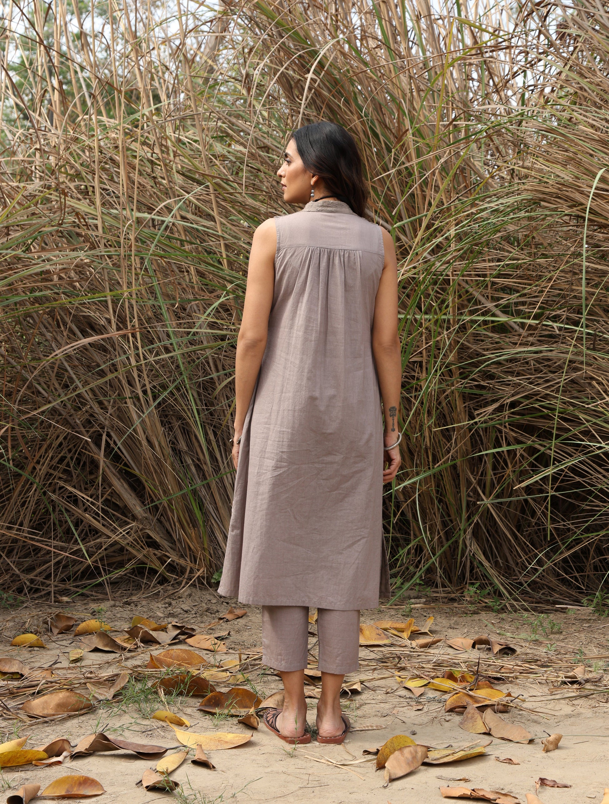 trueBrowns Grey Cotton Embroidered S/L Kurta Set