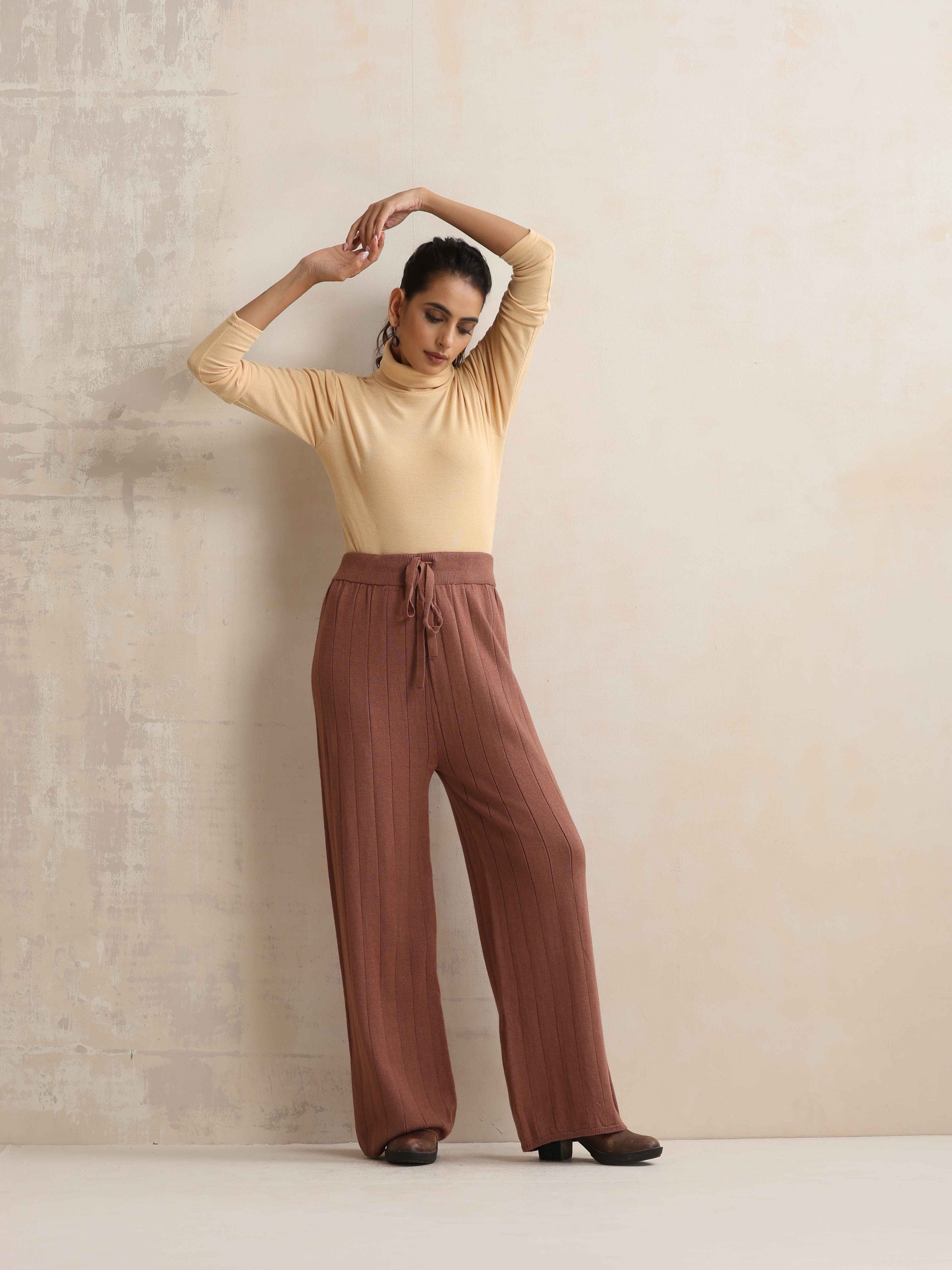 - Elevate your style with this peach woollen flared pants, it's an ideal blend of elegance and comfort.