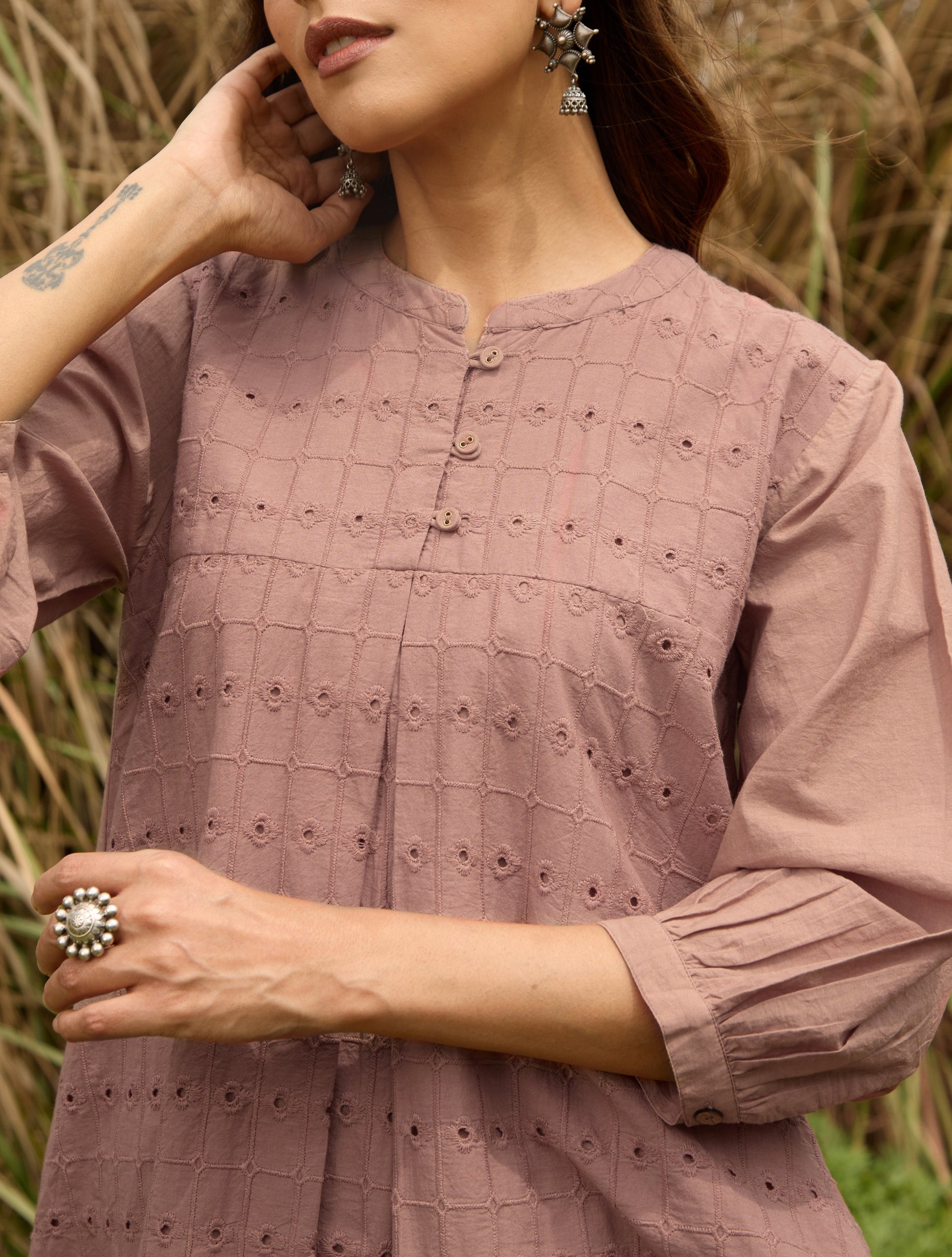trueBrowns Pink Cotton Cutwork Embroidered Co-ord Set