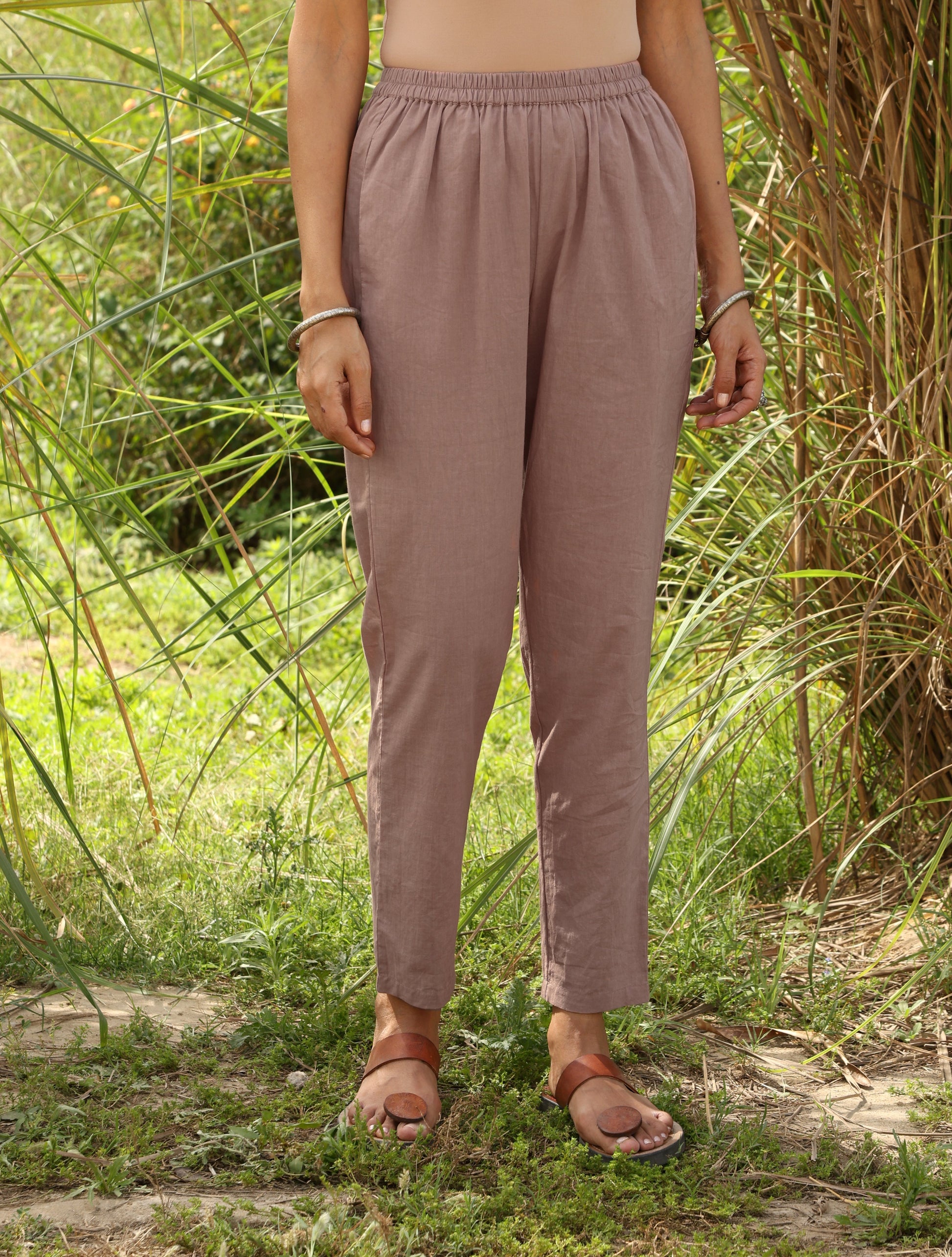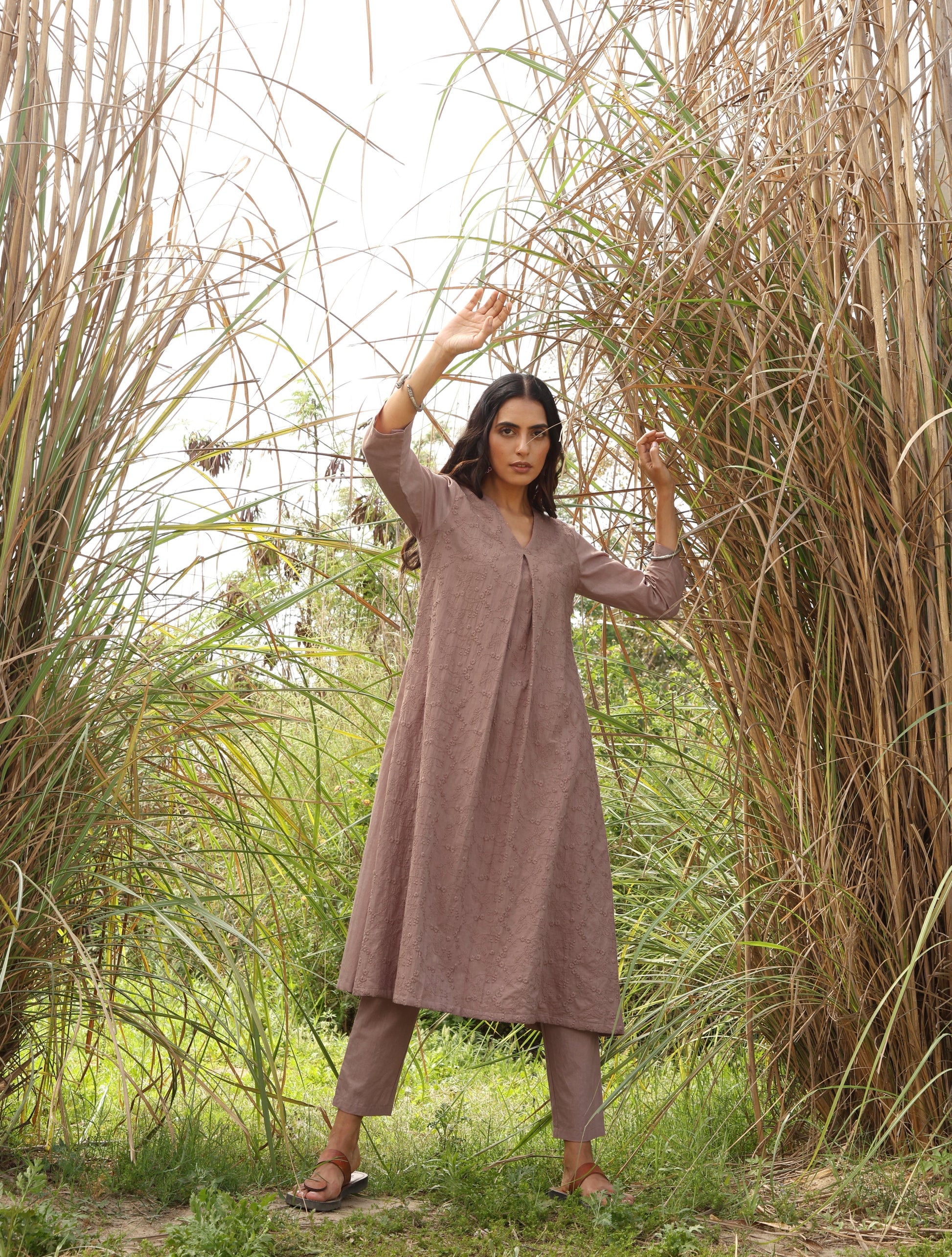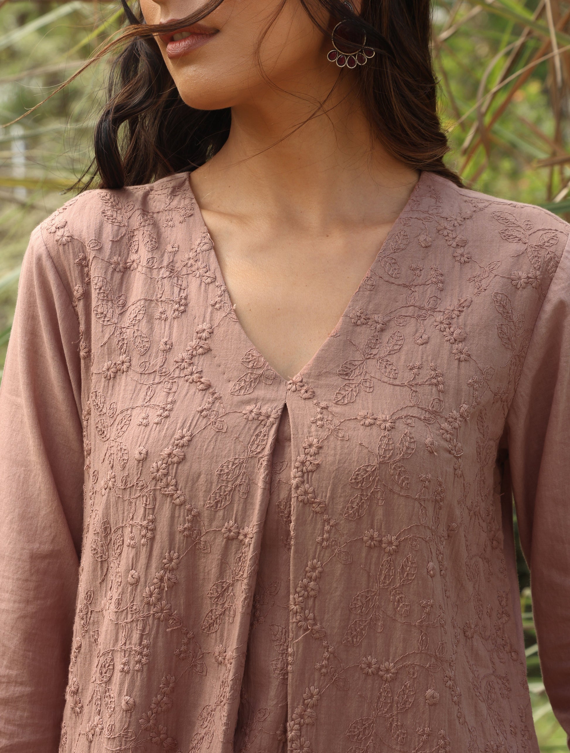 trueBrowns Pink Cotton Embroidered Kurta Set