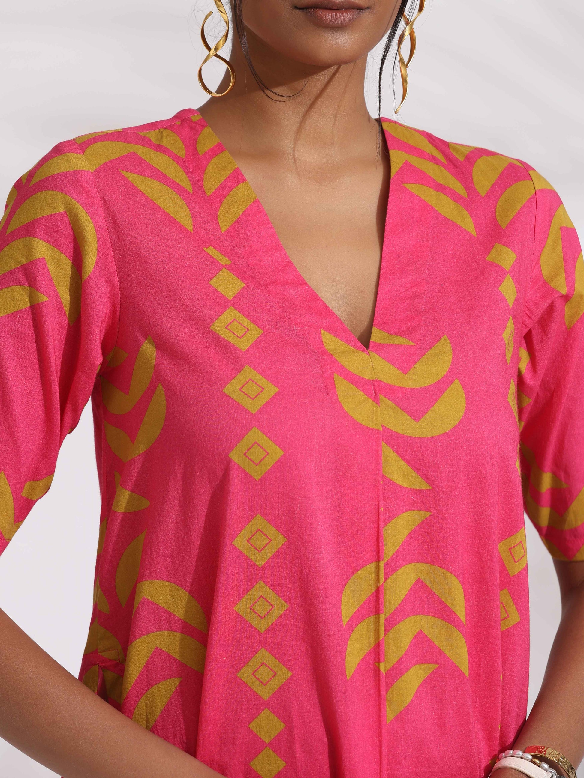 trueBrowns Pink Cotton Print A-line Kurta Set