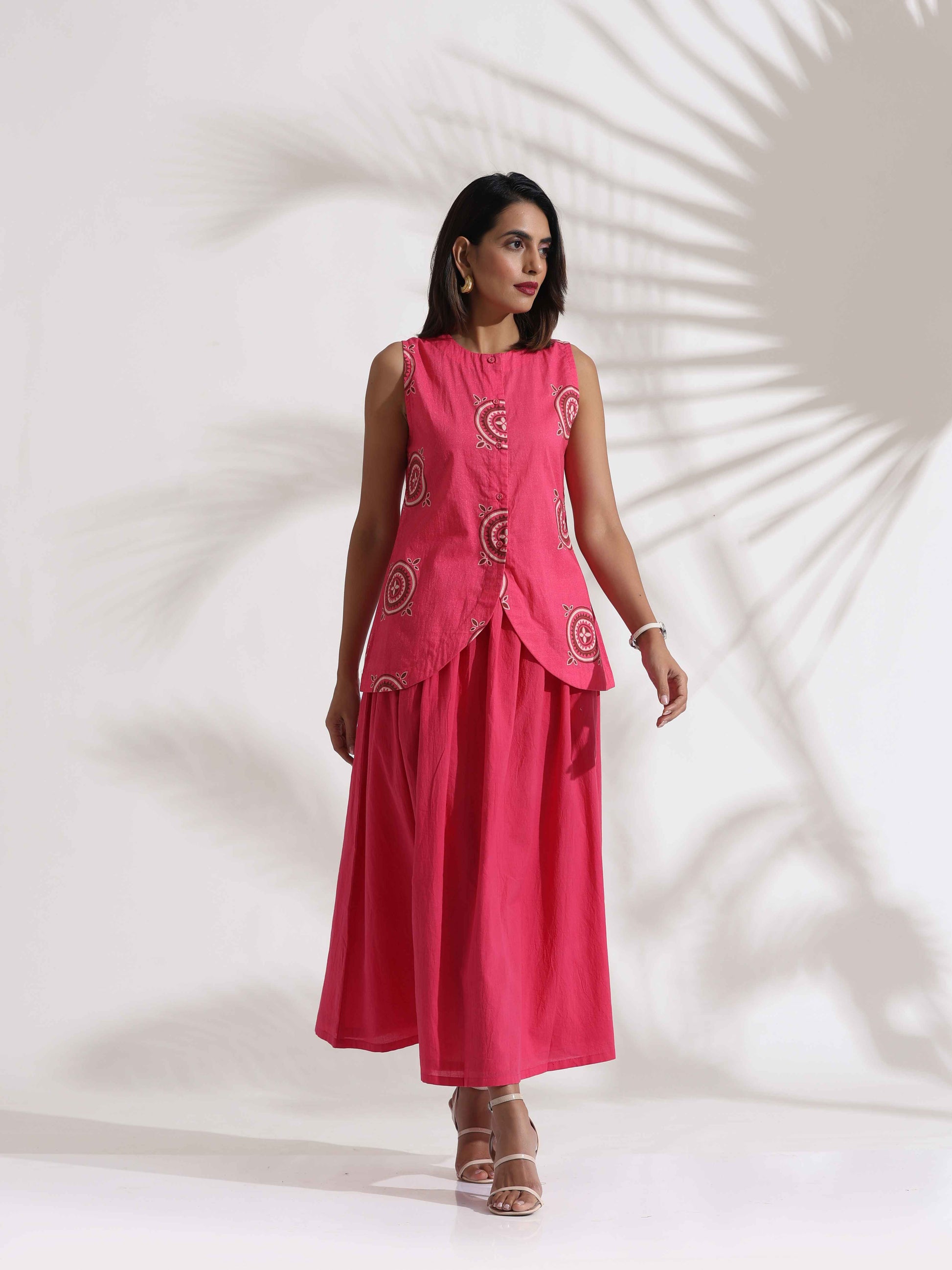 trueBrowns Pink Cotton Skirt Co-ord Set