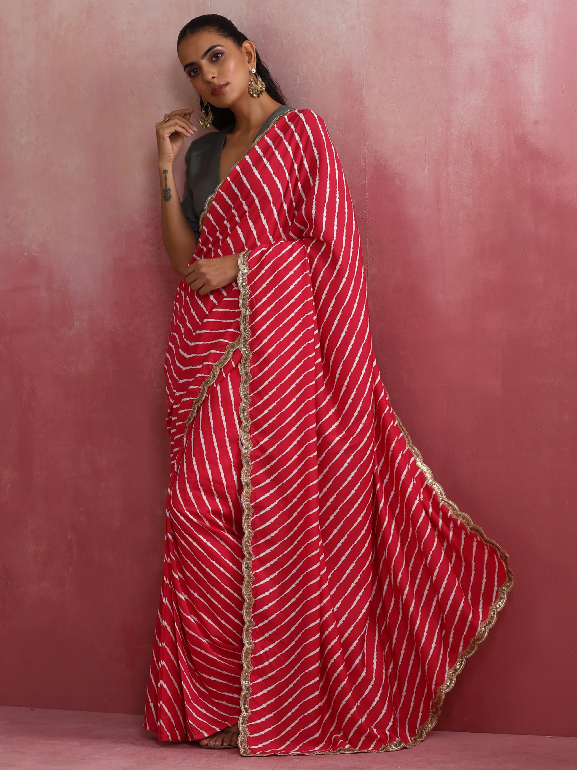 - Elevate your style with this pink leheriya print muslin silk saree.
