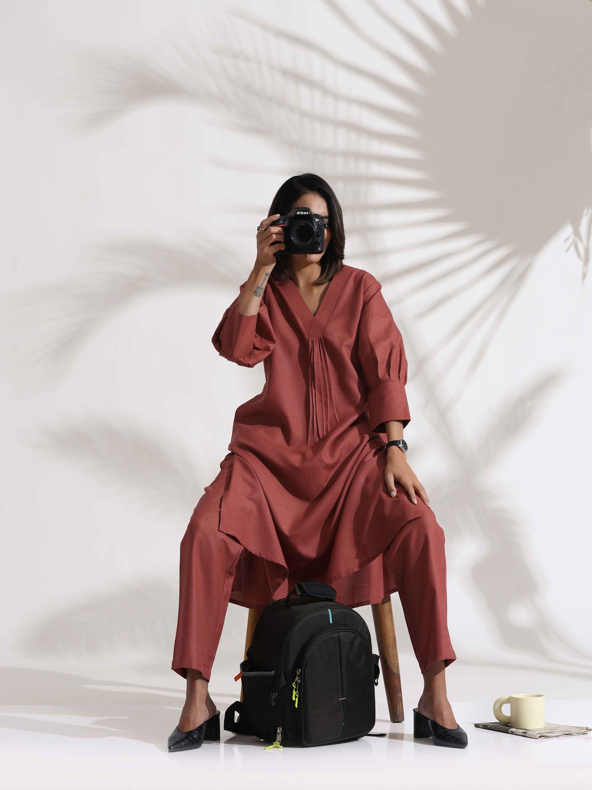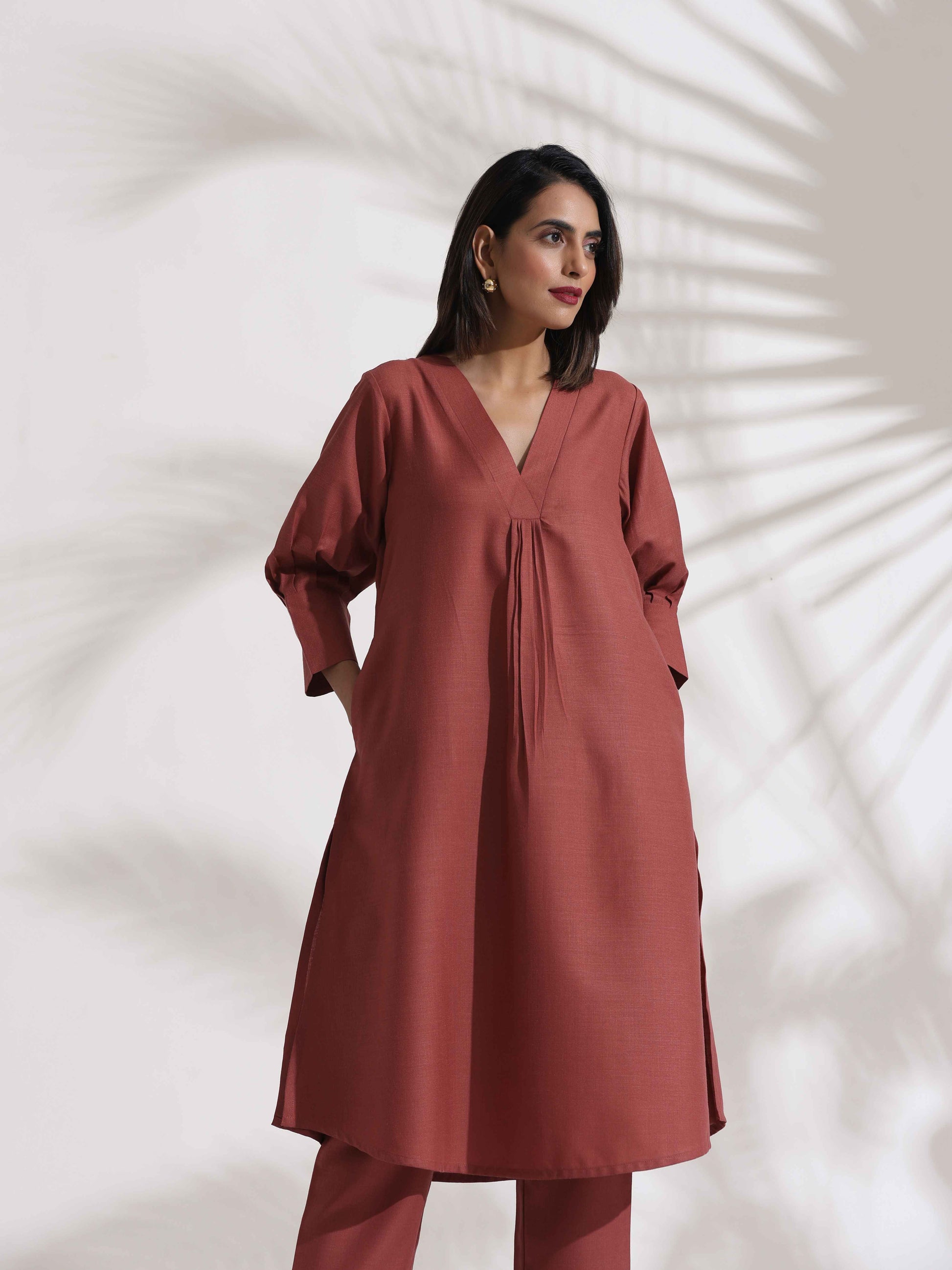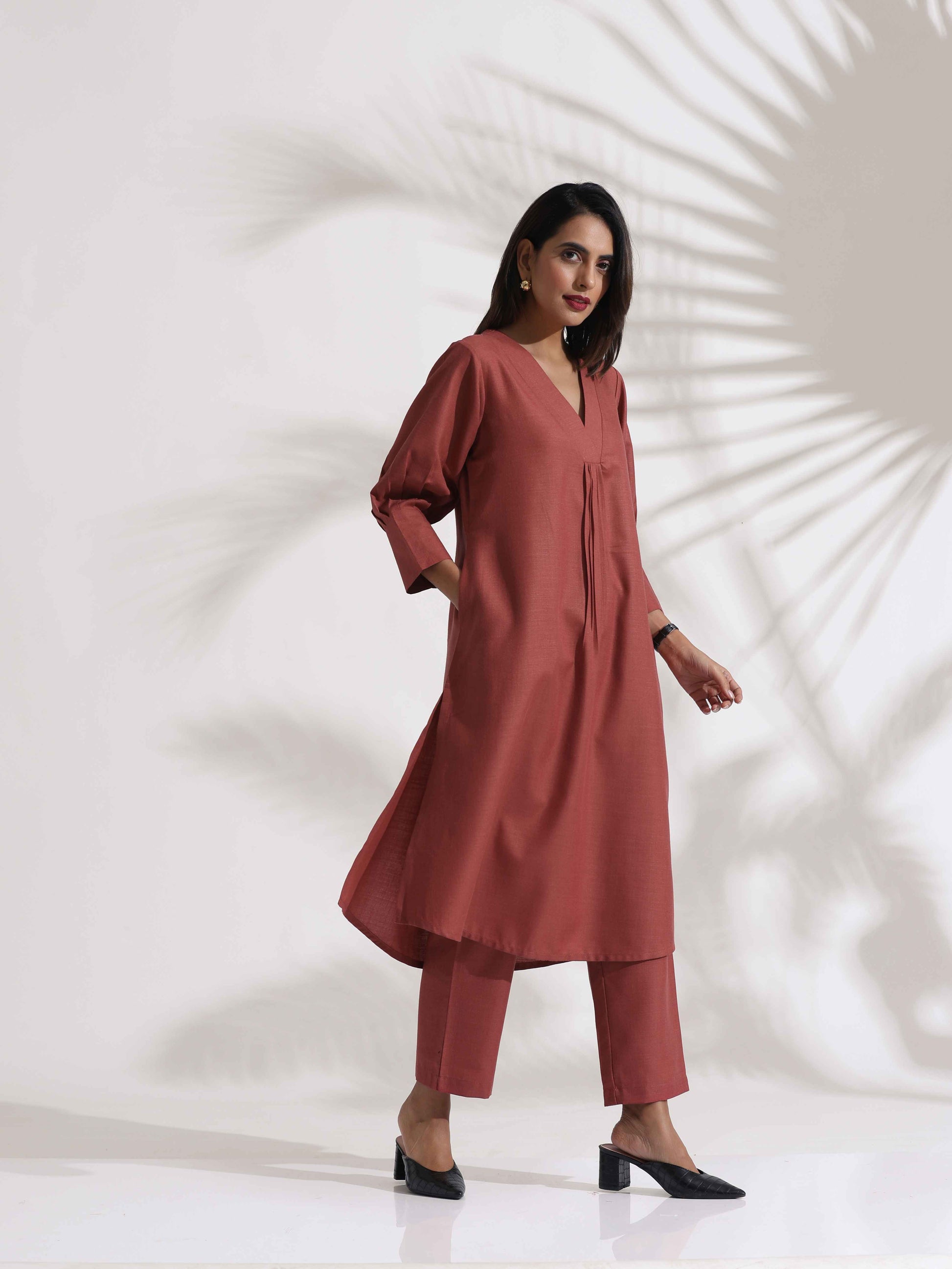 - Elevate your style with this pink straight kurta, paired with pink pants, it's an ideal blend of elegance and comfort.