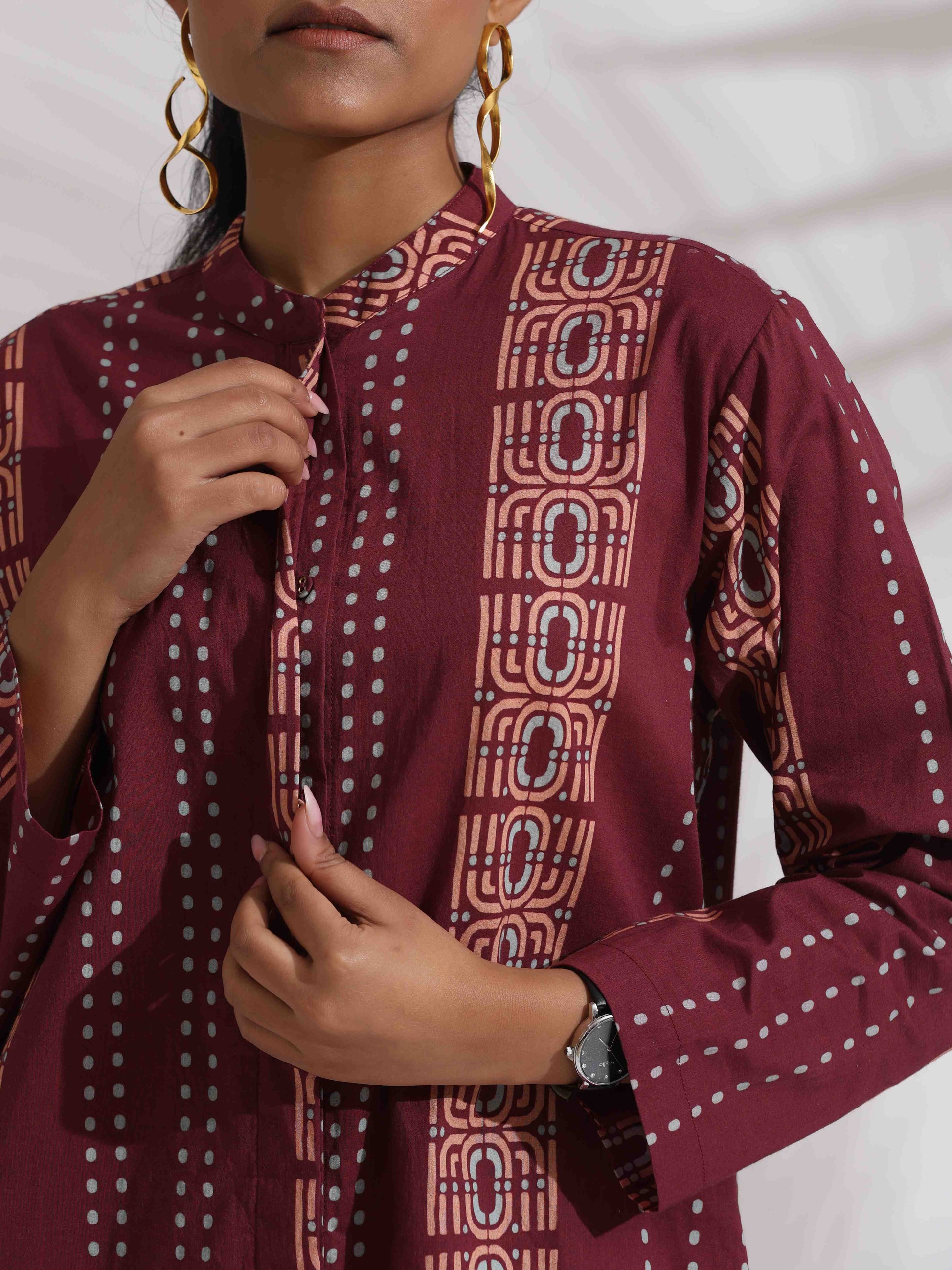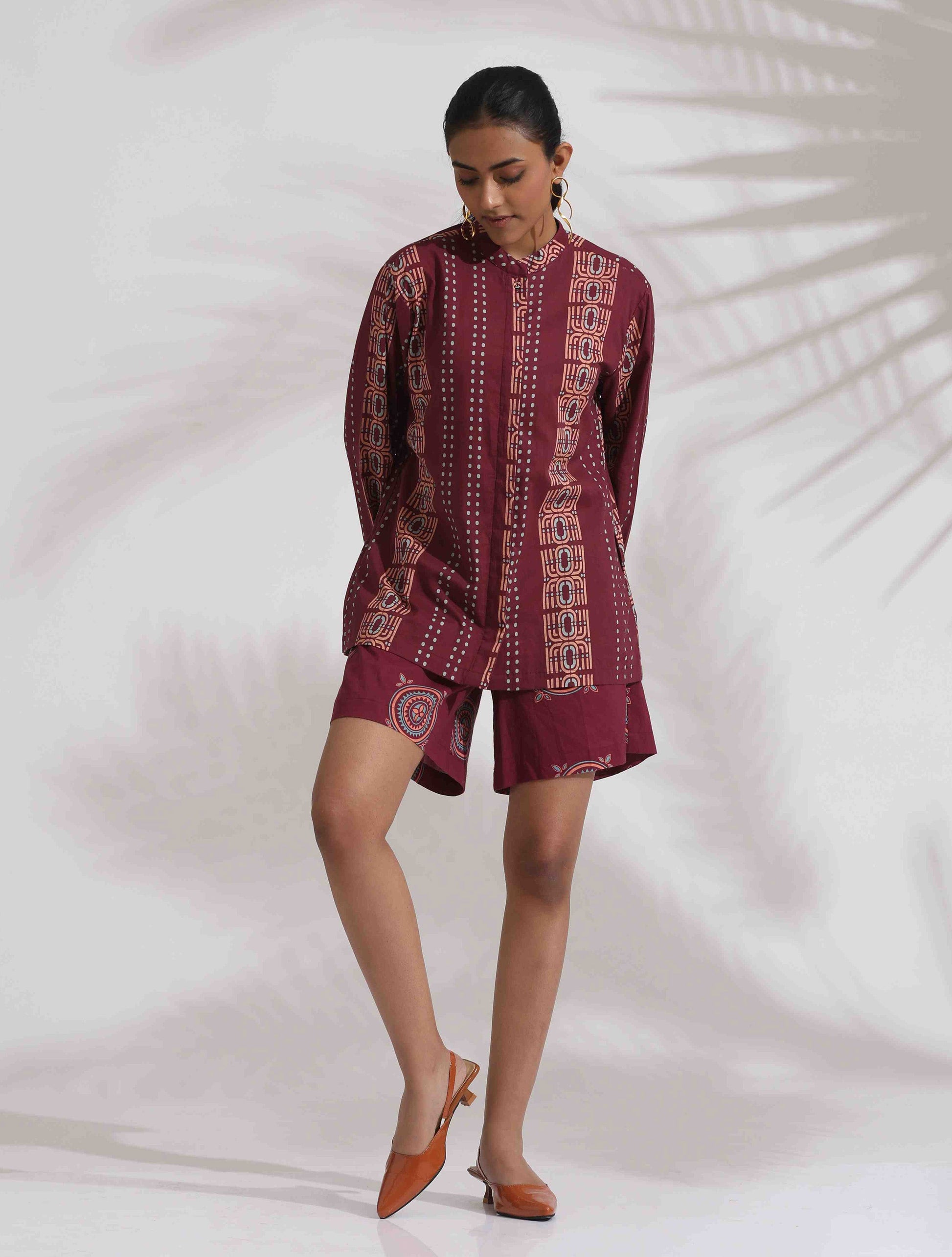 - Elevate your style with this brown cotton printed shirt top with brown printed short, it's an ideal blend of elegance and comfort.