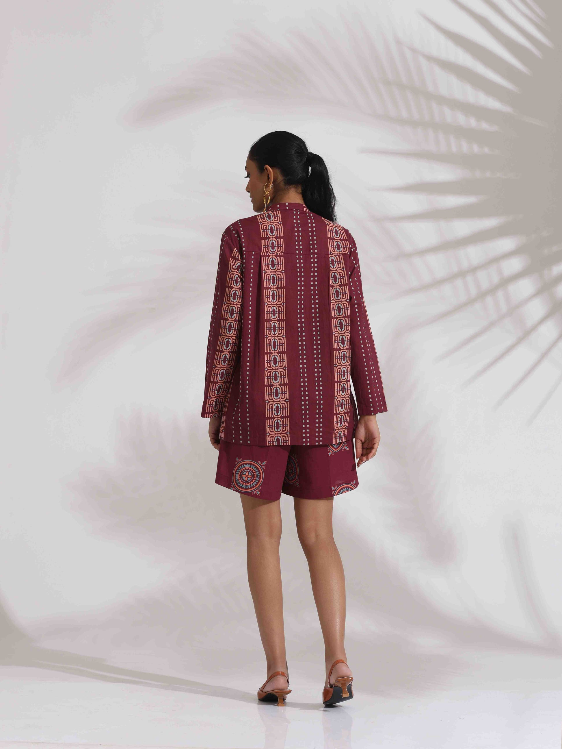 trueBrowns Purple Cotton Print Short Co-ord Set
