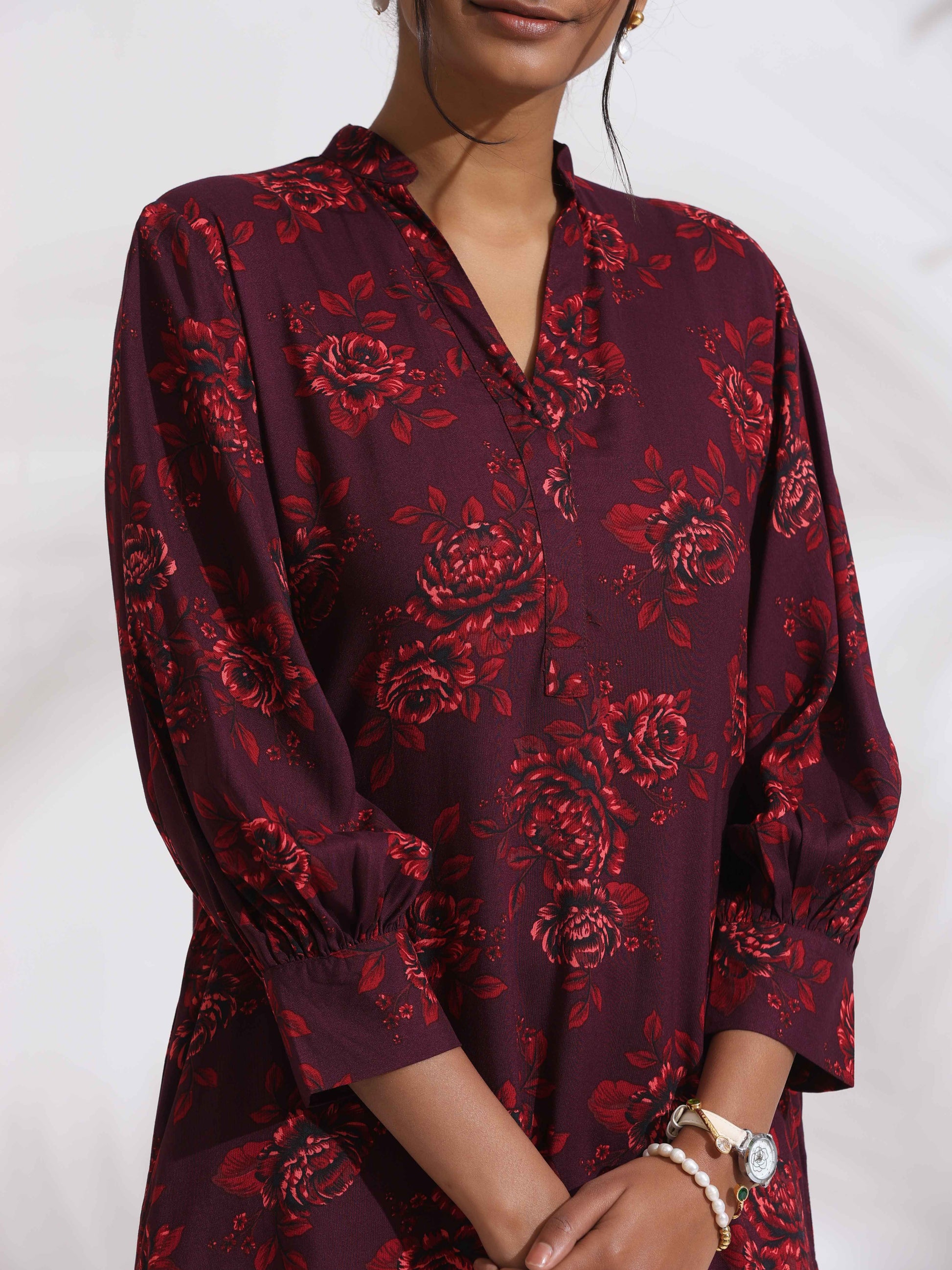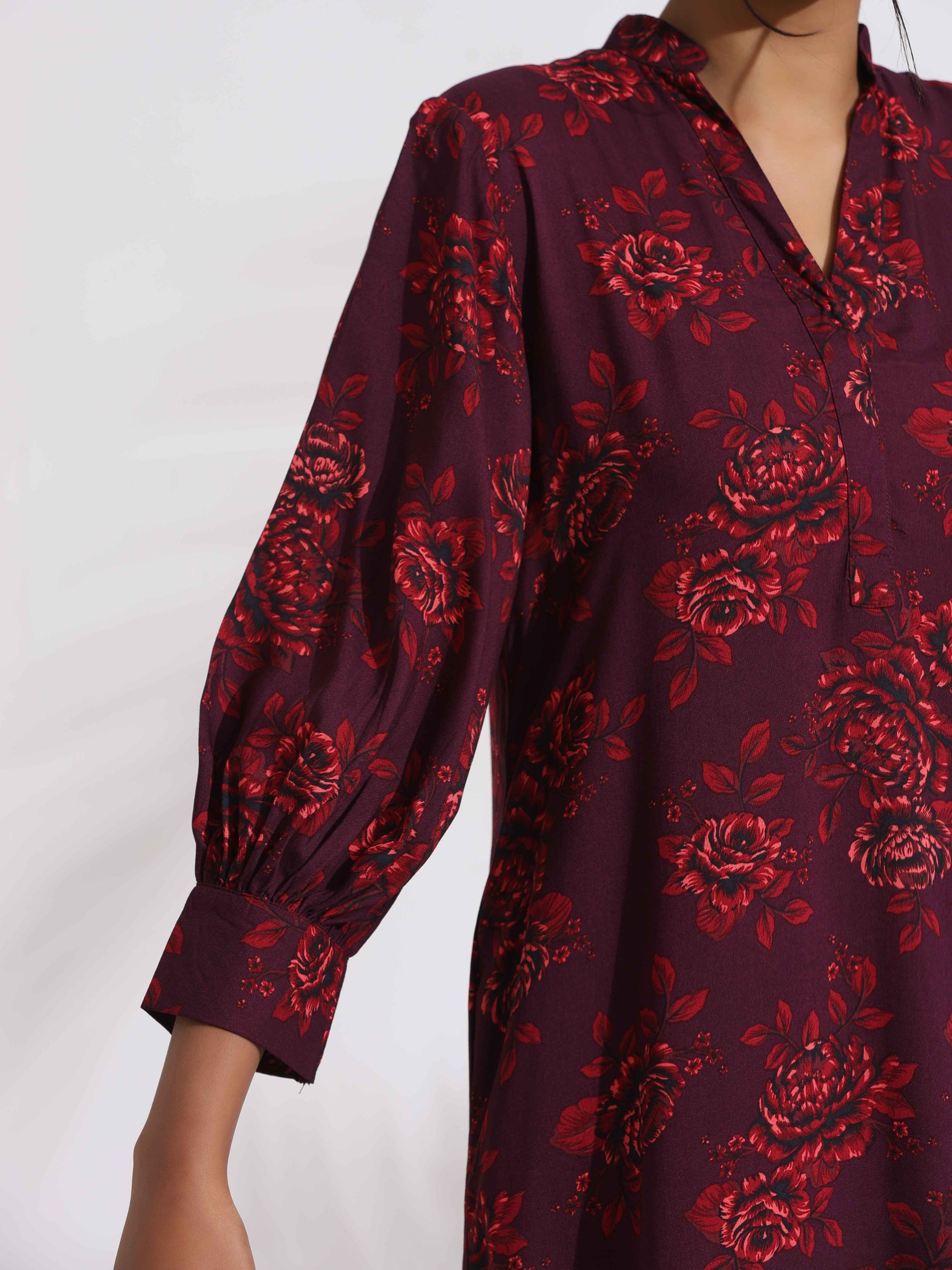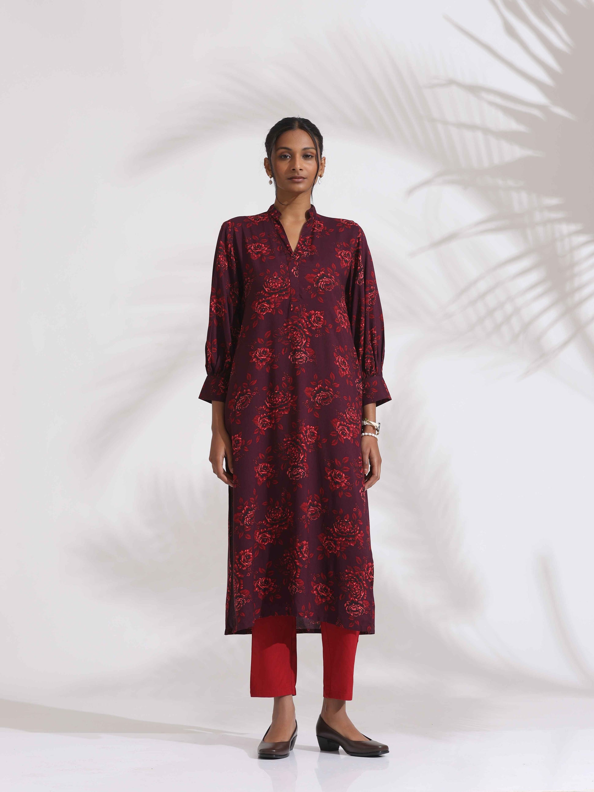 - Elevate your style with this floral printed kurta, paired with red pants, it's an ideal blend of elegance and comfort.
