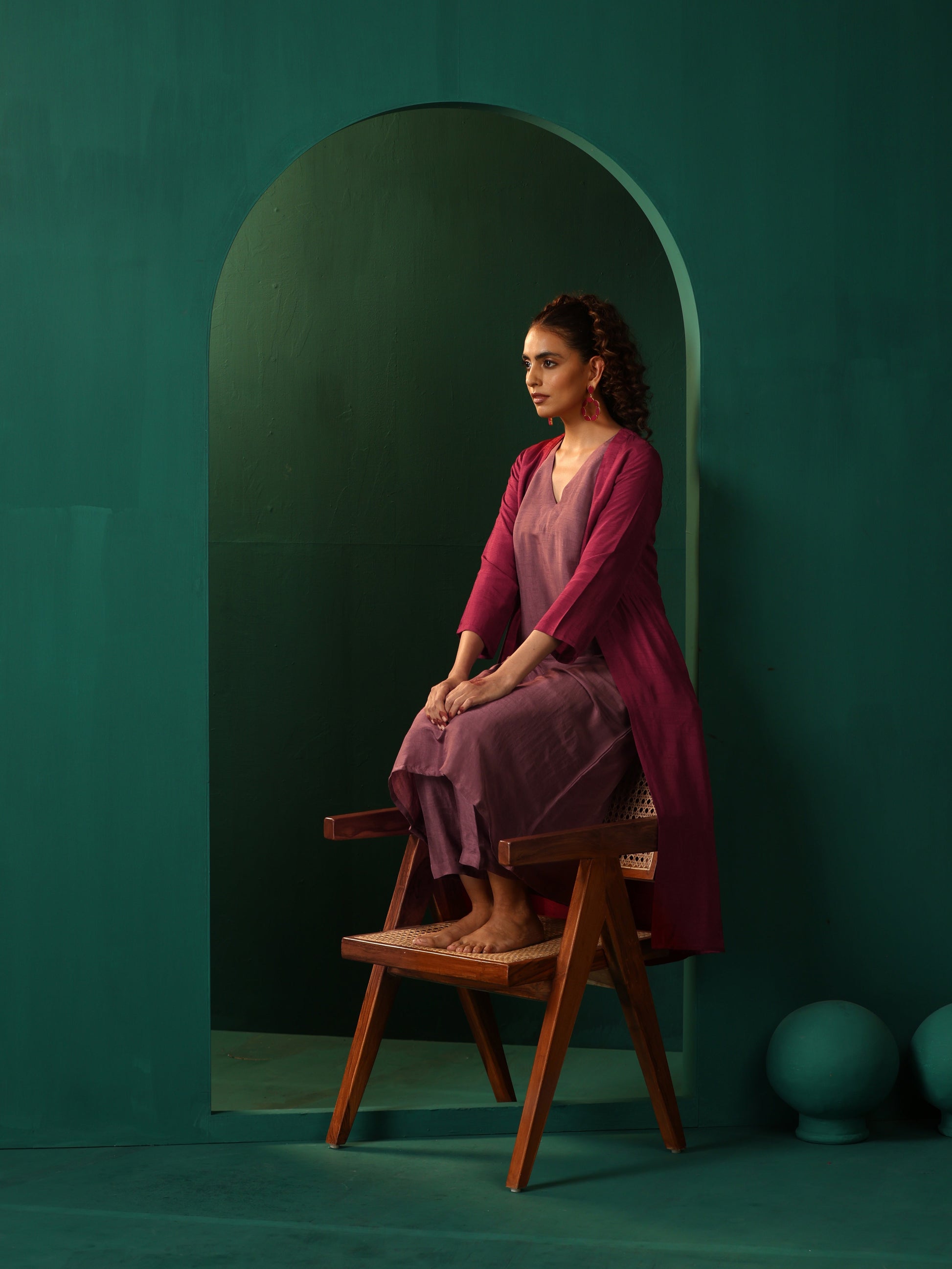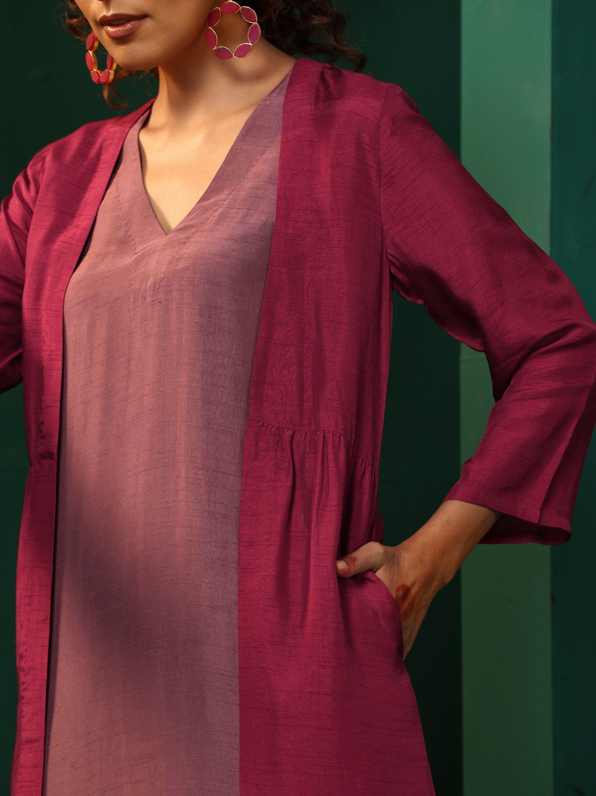 trueBrowns Maroon Light Mauve Silk Jacket Kurta Set