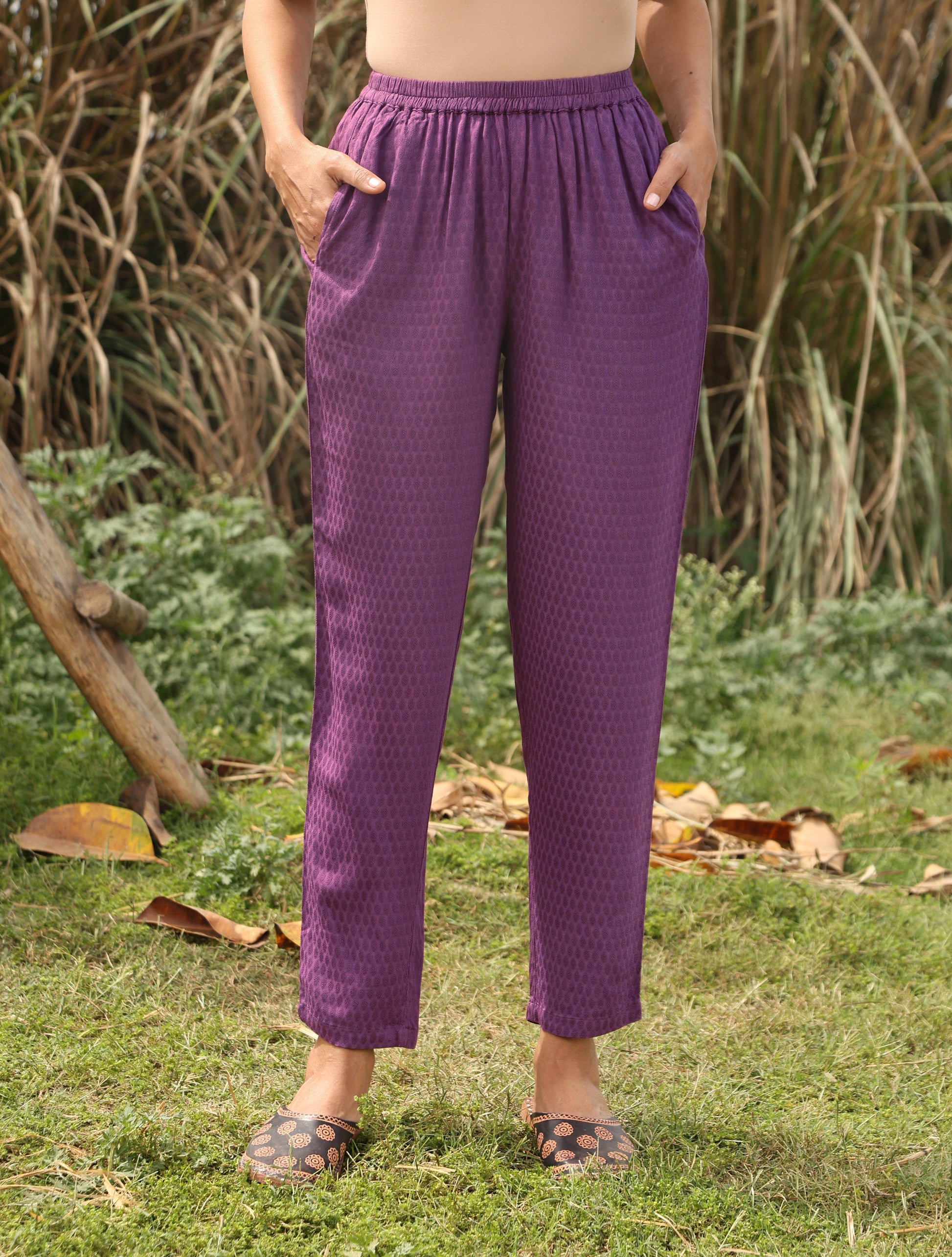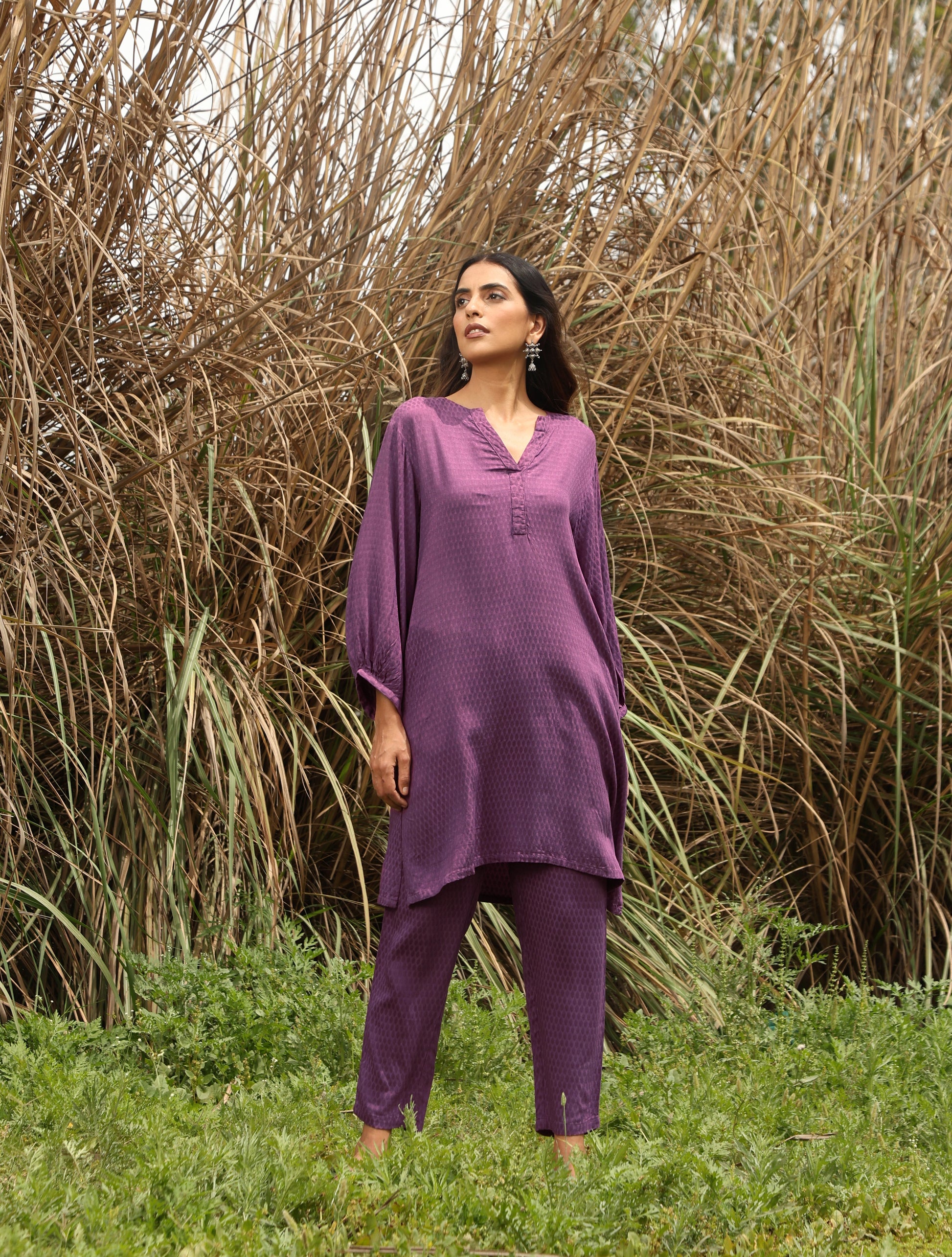 trueBrowns Purple Viscose Dobby Relaxed Co-ord Set