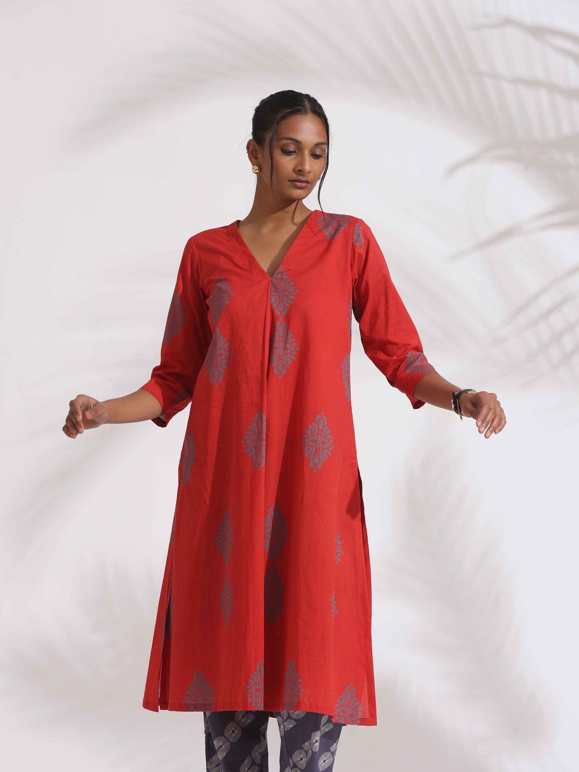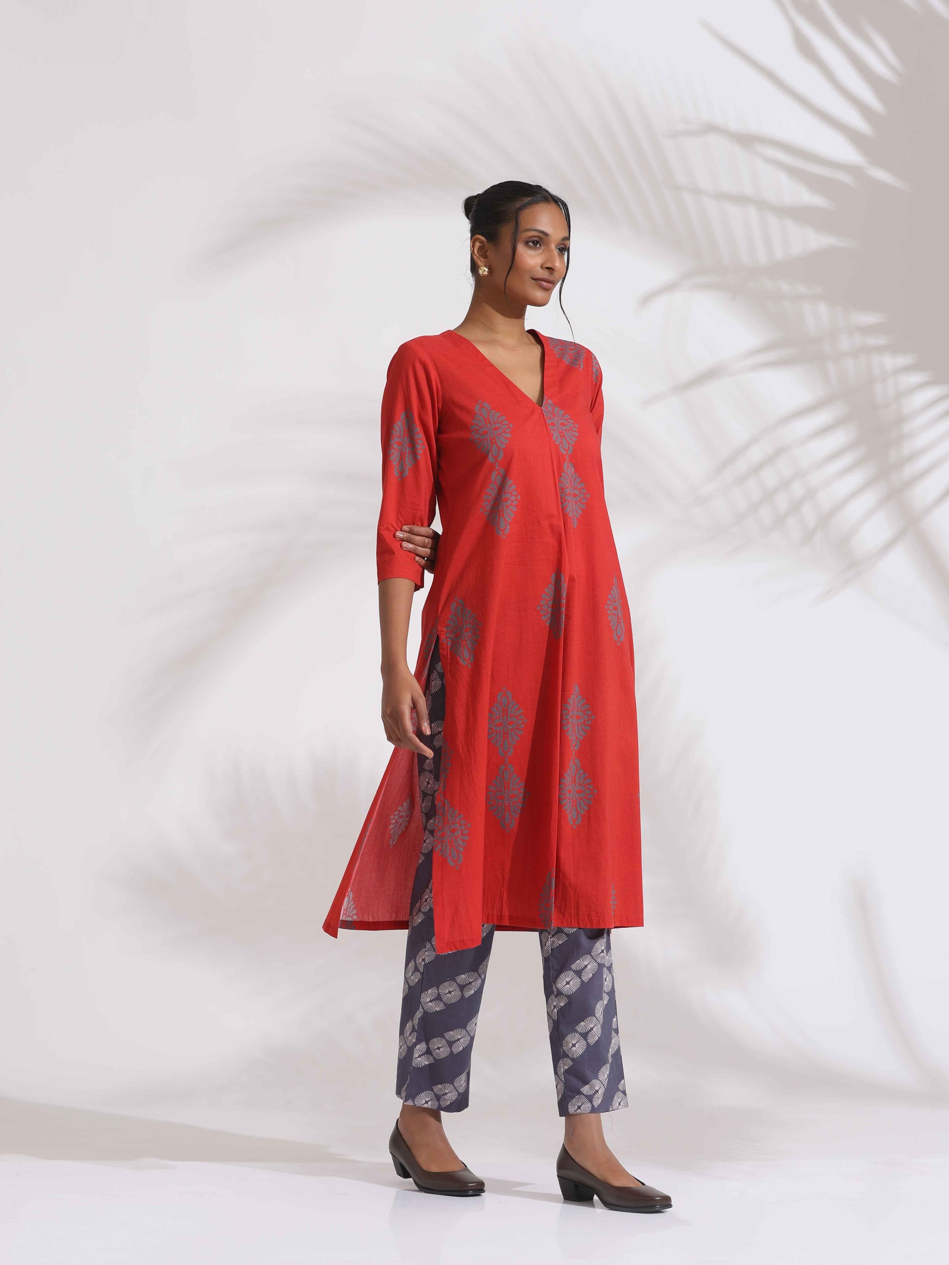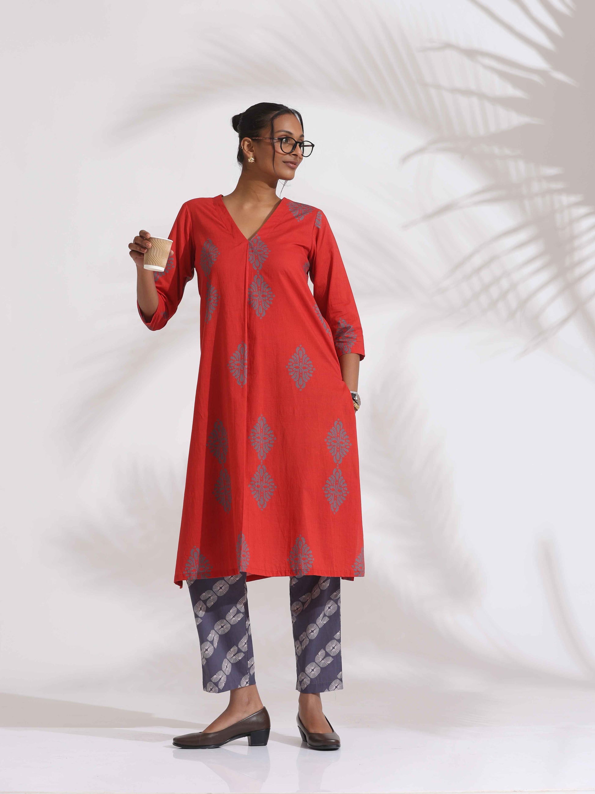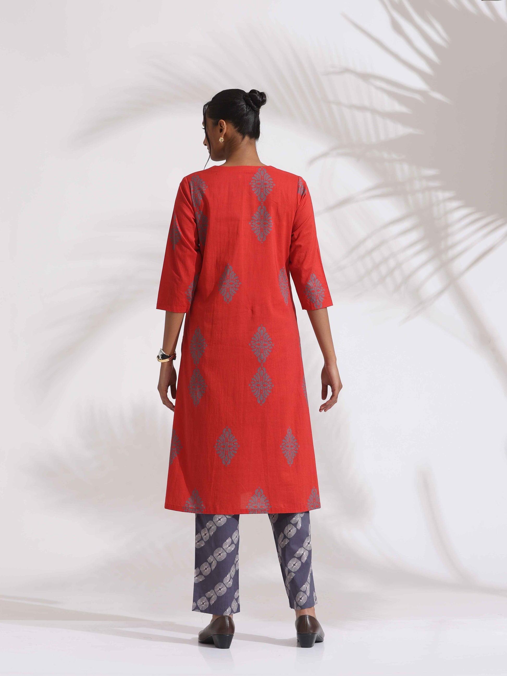 - Elevate your style and transform your wardrobe with this red cotton geometric print kurta set, a sophisticated fusion of timeless design and contemporary comfort, this outfit is perfect for any occasion, from casual gatherings to festive celebrations making it versatile.