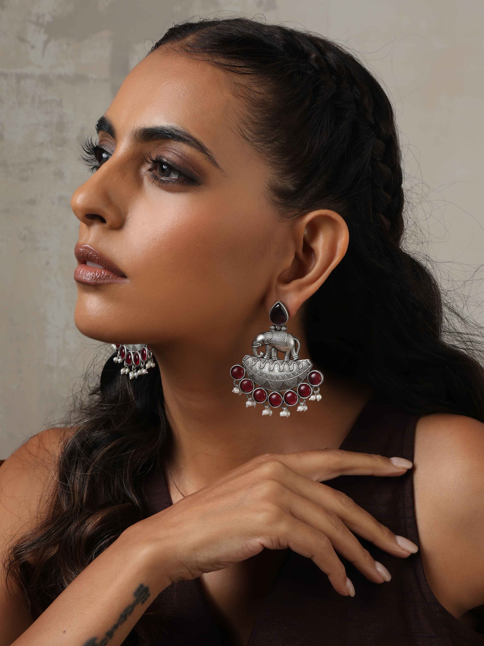 trueBrowns Silver Tone Elephant Dangle Earrings