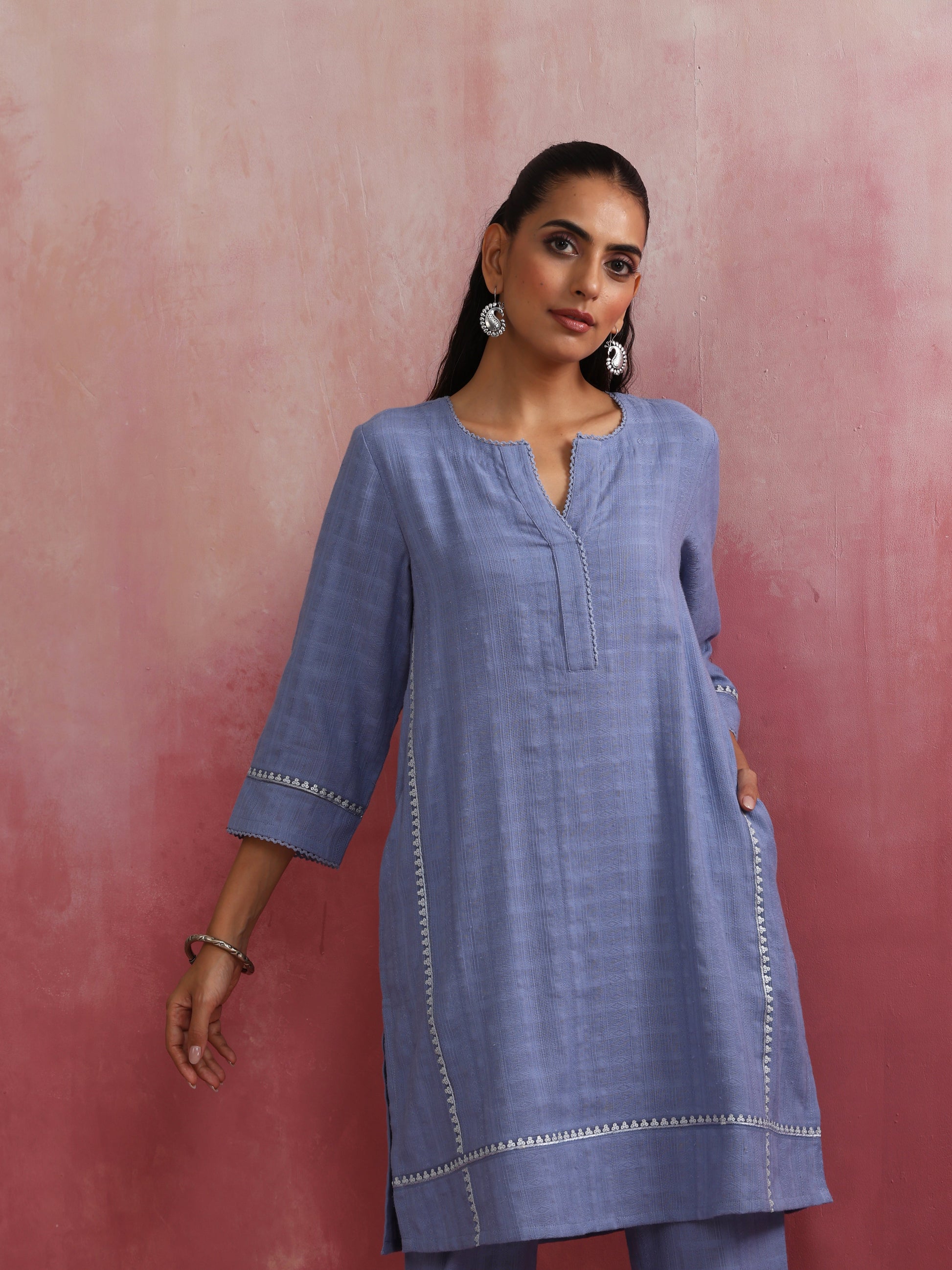 trueBrowns Sky BLue Cotton Kurta Co-ord set