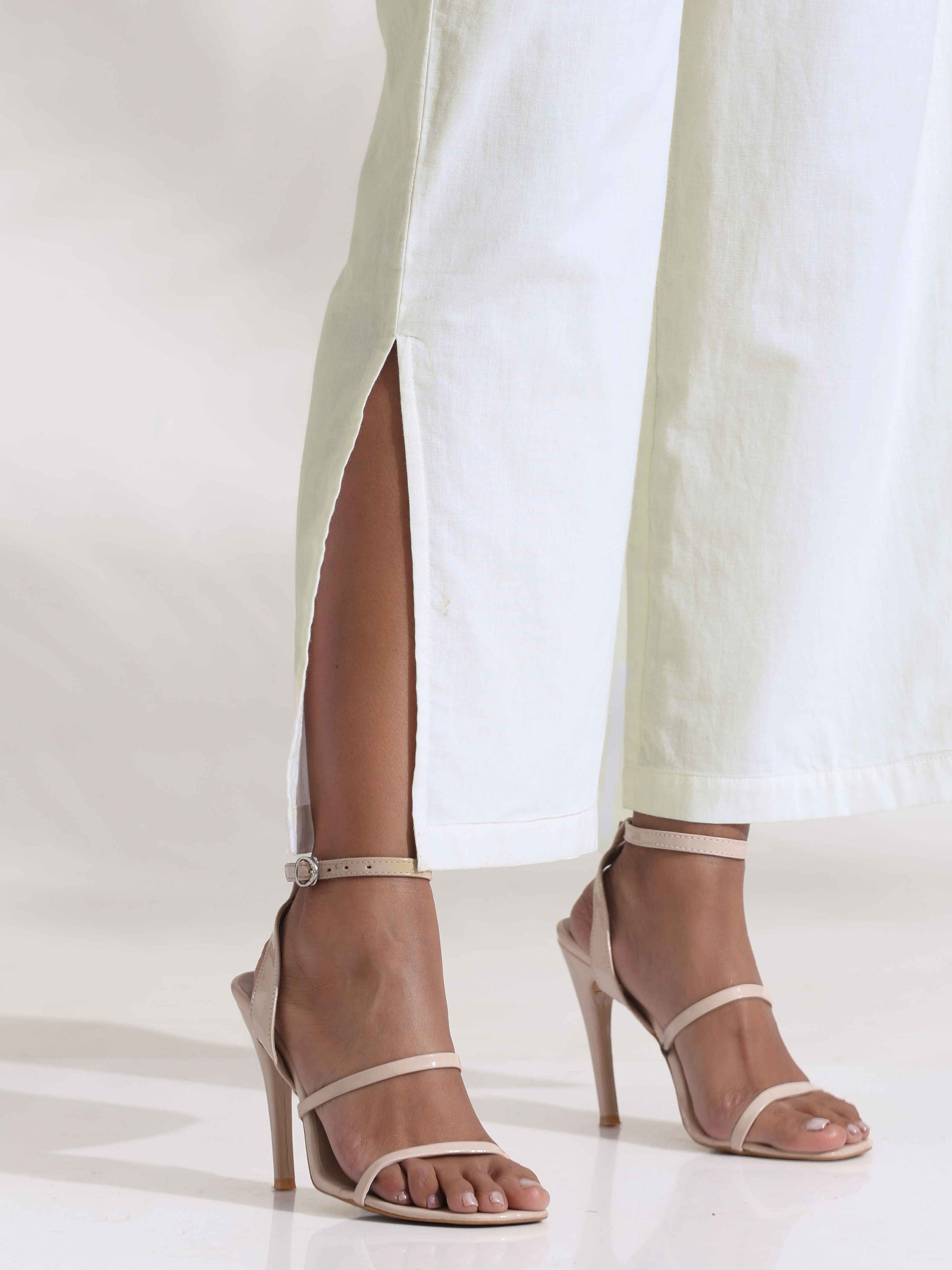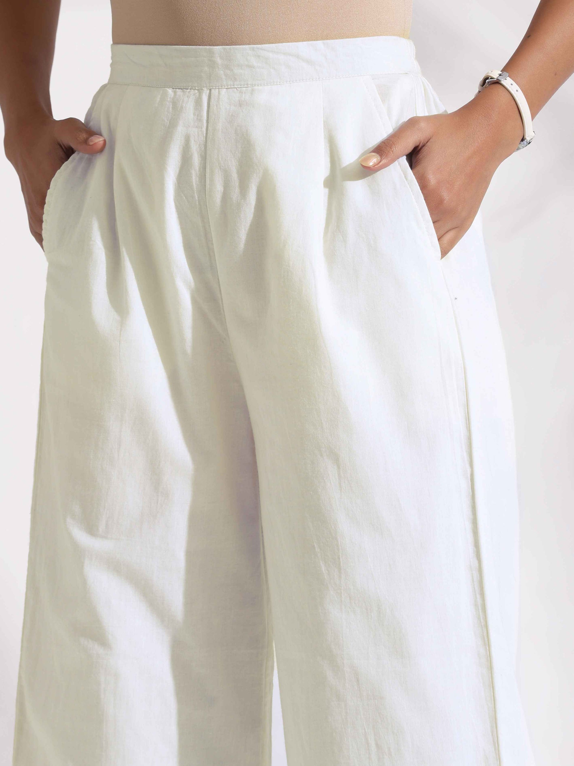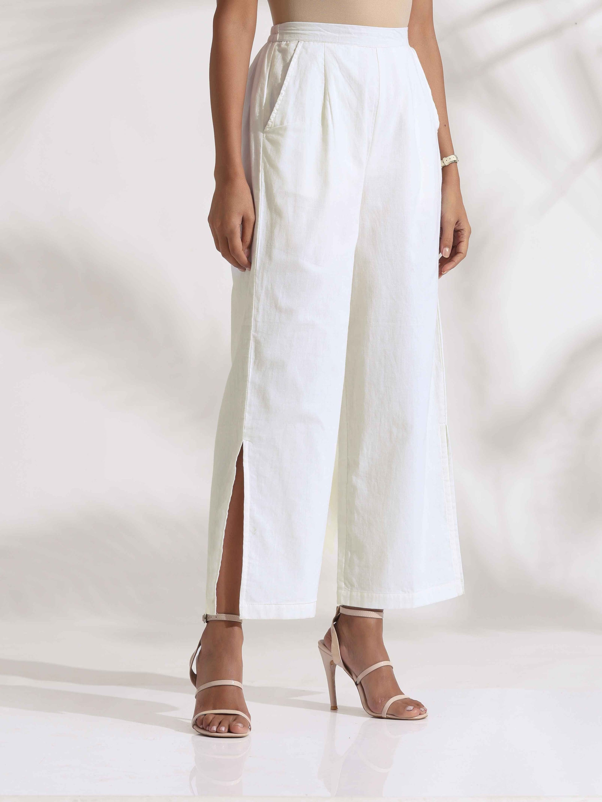 - Elevate your style with this white cotton dobby shirt top paired with pants which has side slit for add on detail. The top has curved hem along with back yoke and box pleat for ease.