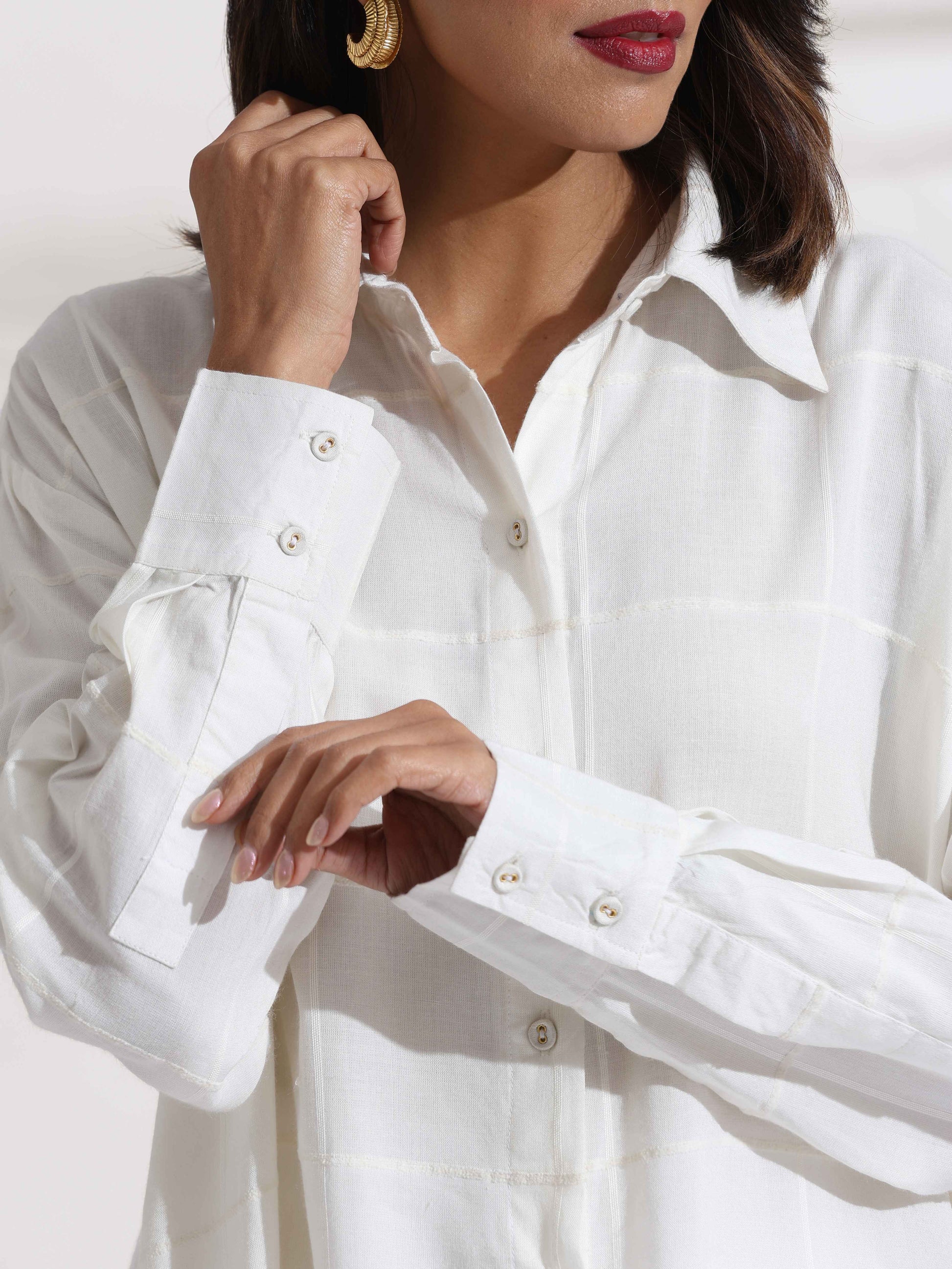 trueBrowns White Cotton Check Shirt Co-ord Set