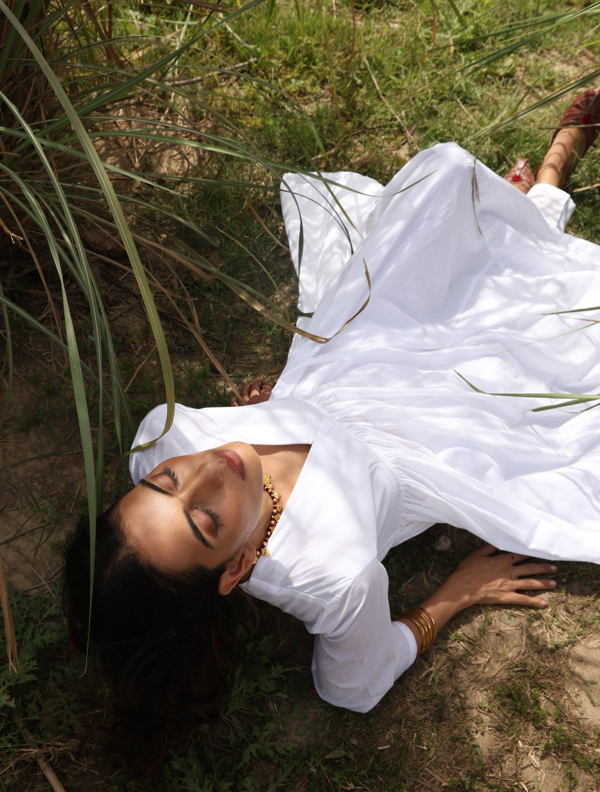 trueBrowns White Cotton Embroidered Anarkali Kurta Set