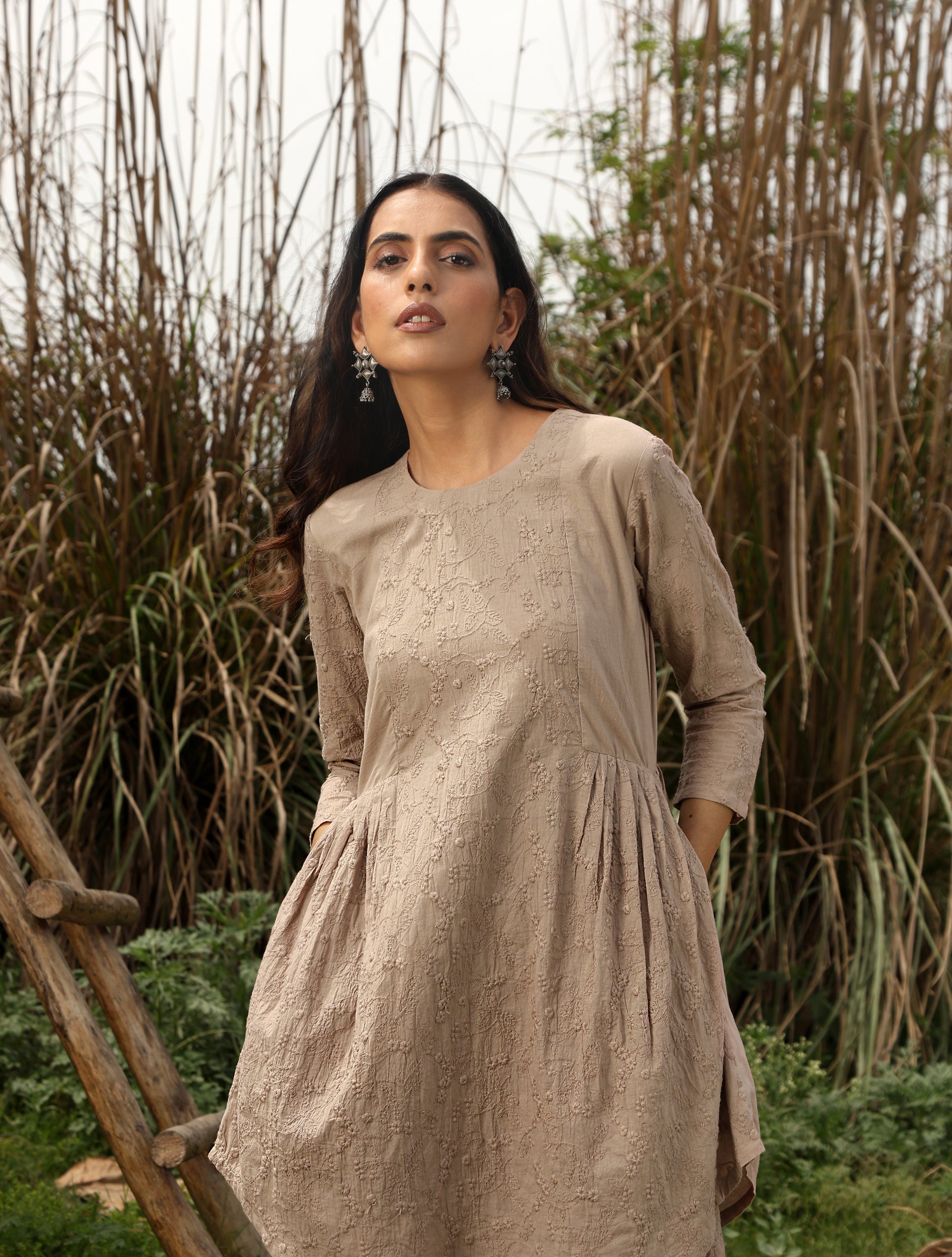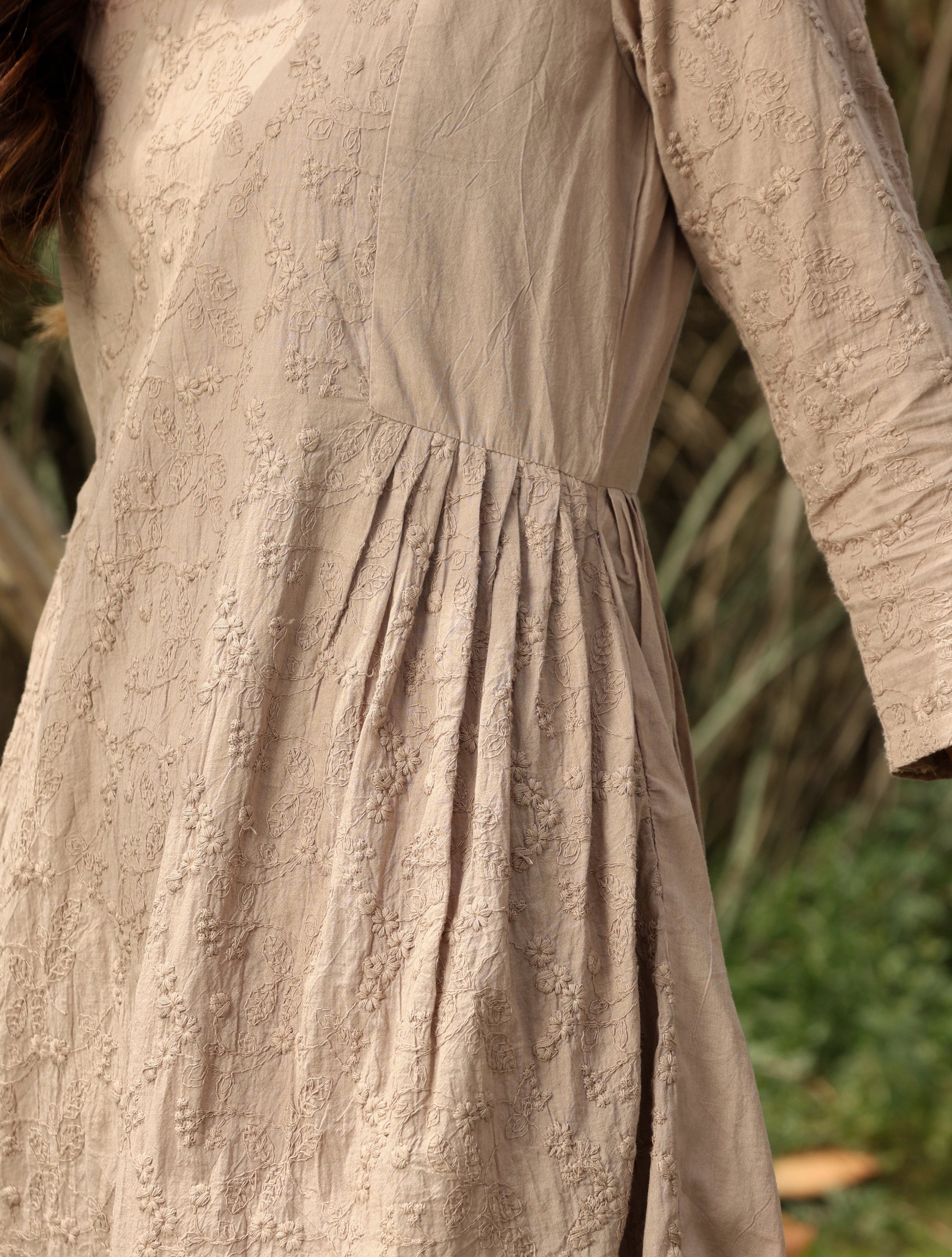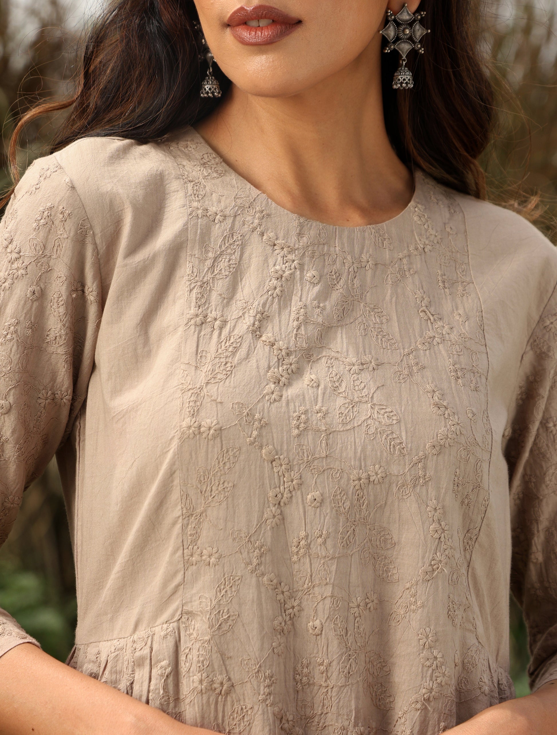trueBrowns Khaki Cotton Embroidered Co-ord Set