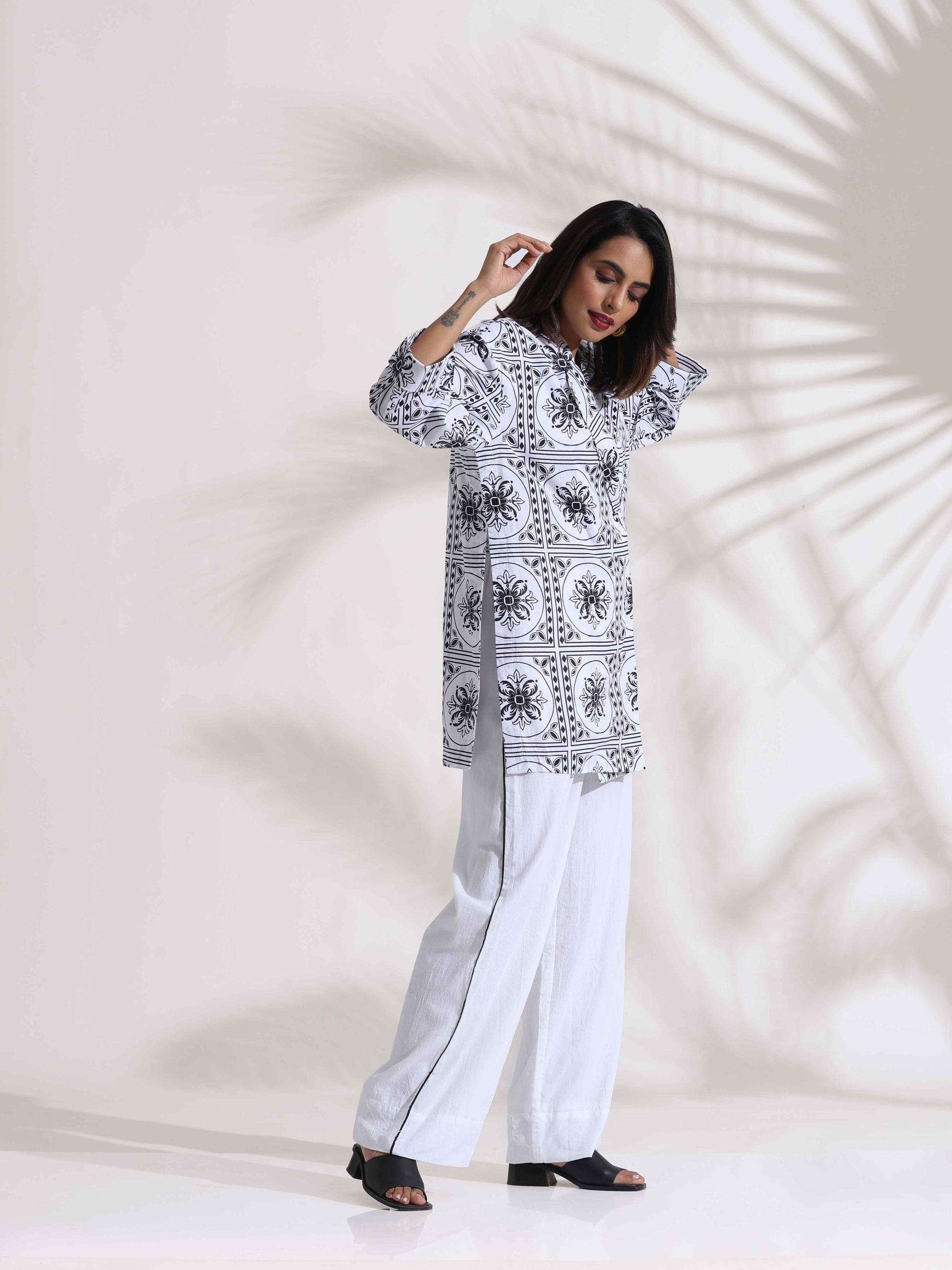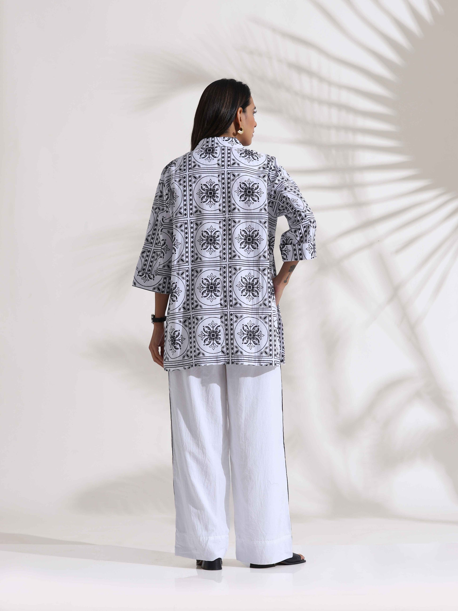 trueBrowns White Cotton Print Jacket Co-ord Set