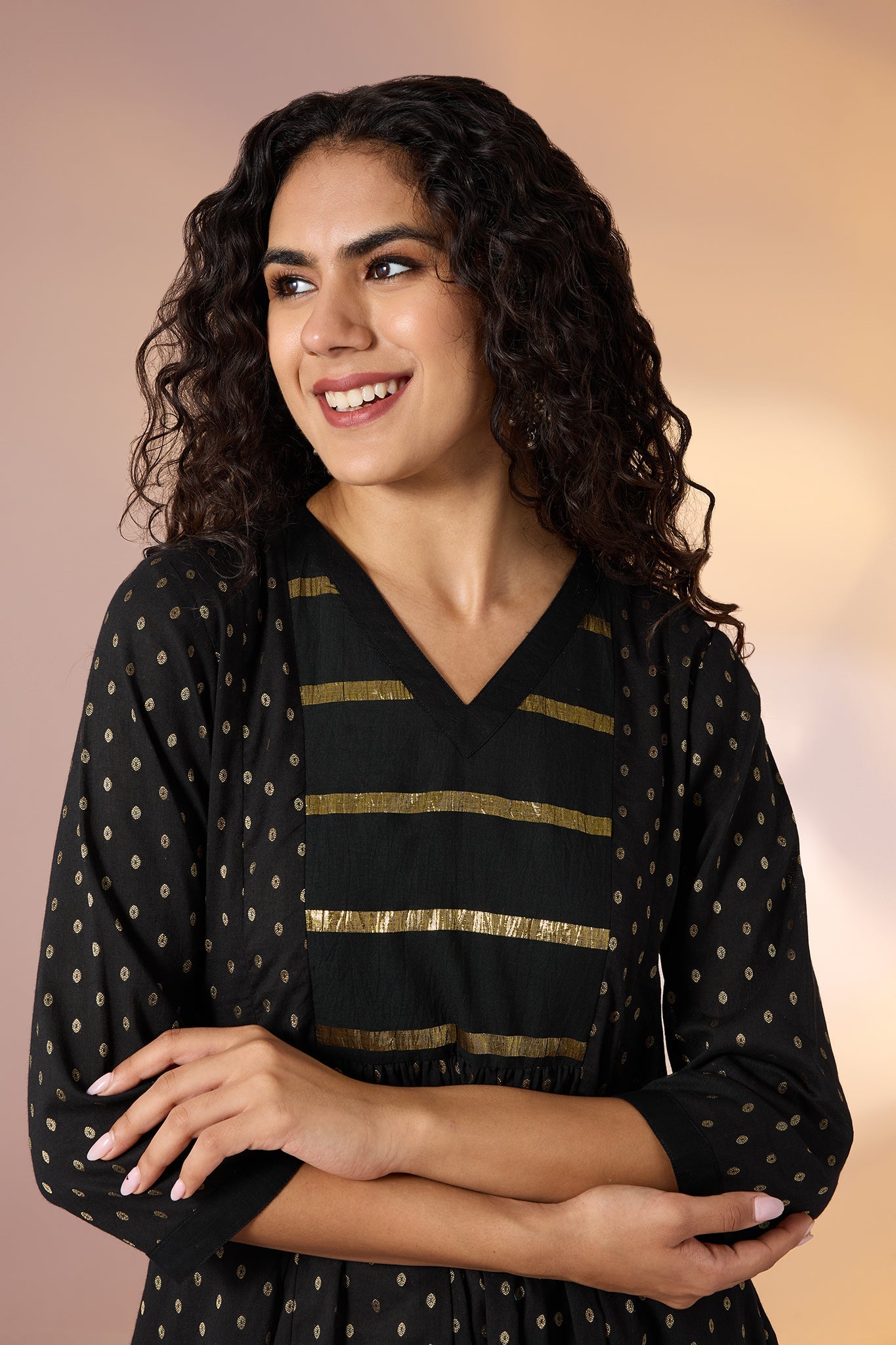 Maati Craft Gulabi Twilight Gold Cotton V-Neck Anarkali