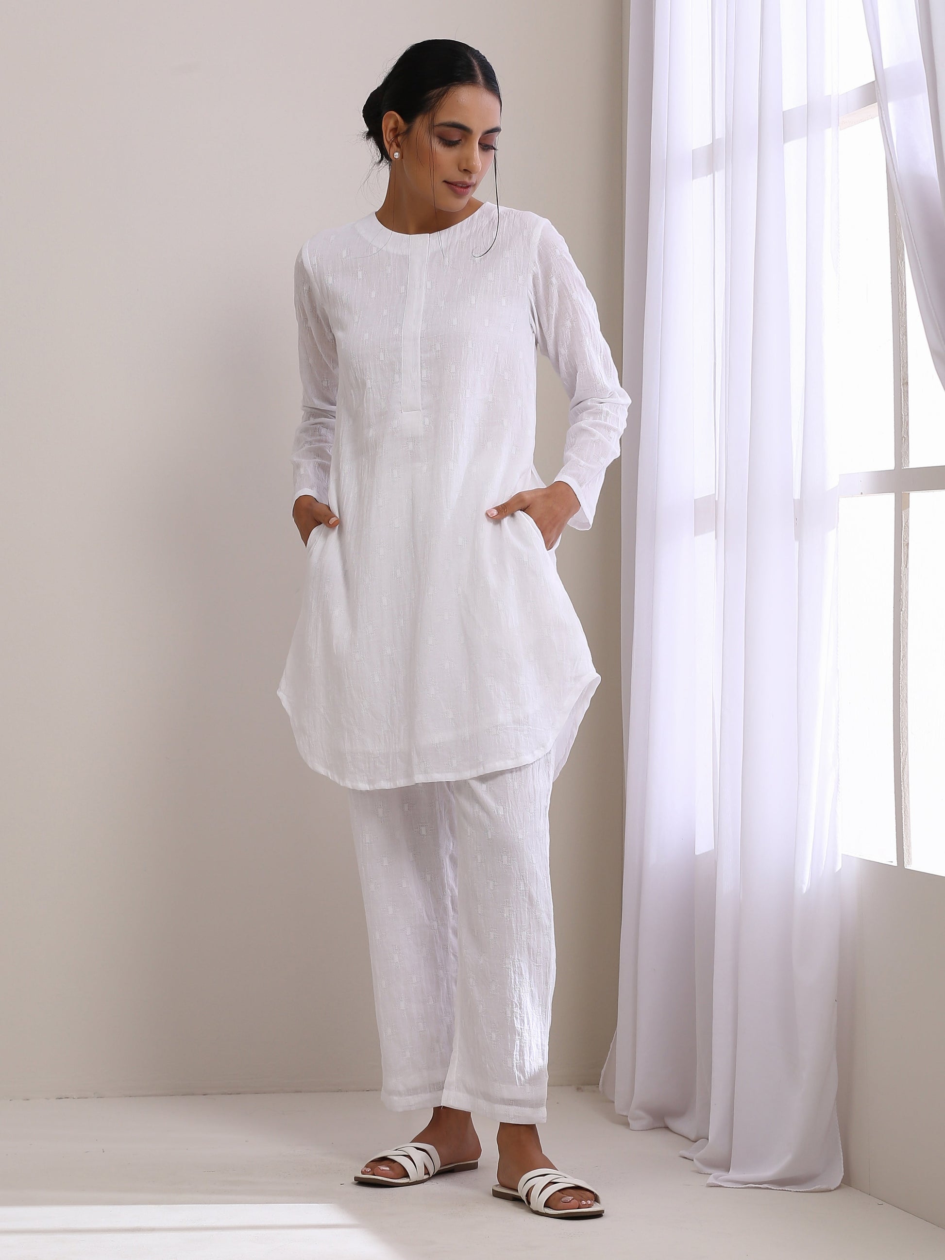 - Style with minimal earings, clutch and pair of mules to complete the look.