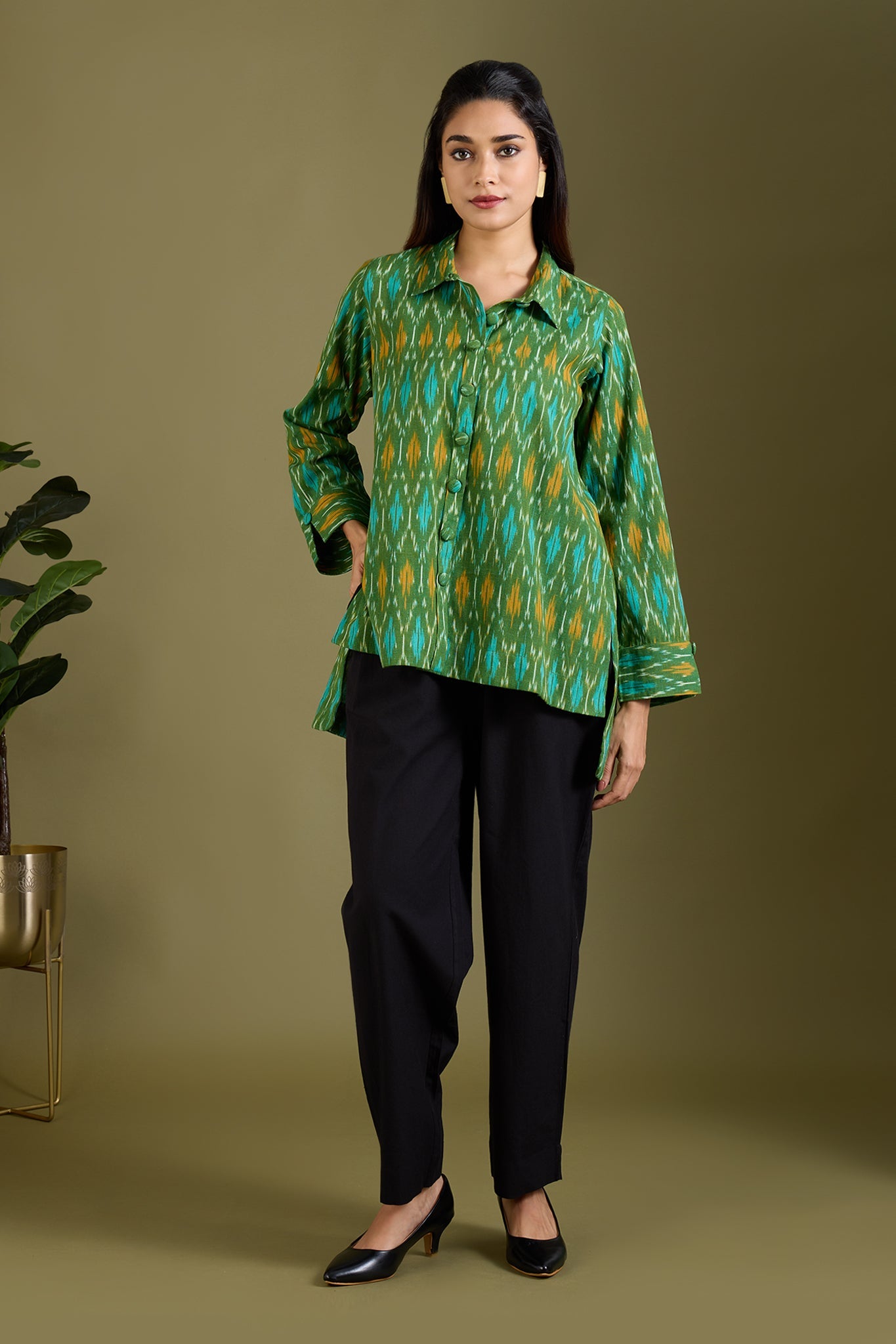 Maati Craft Wildflower Speckle High Low Hem Cotton Shirt